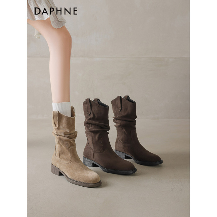 達芙妮美拉德堆堆靴子女款2026新款春季旅遊西部牛仔靴短靴中筒靴