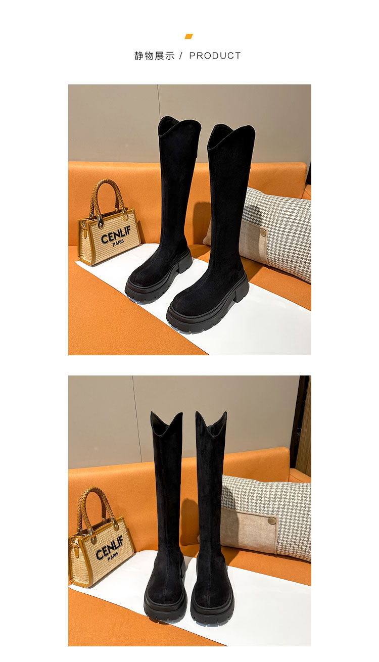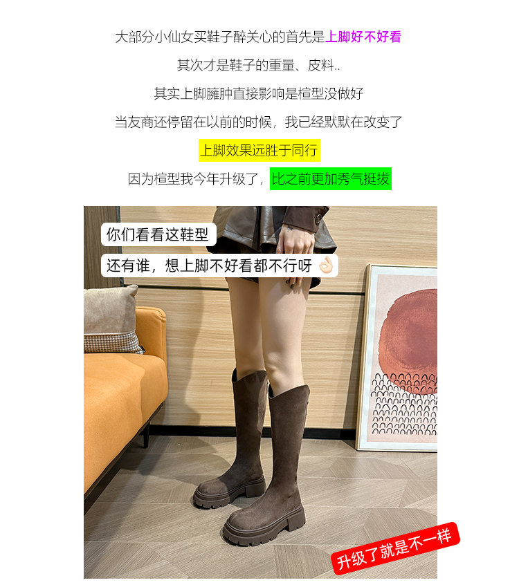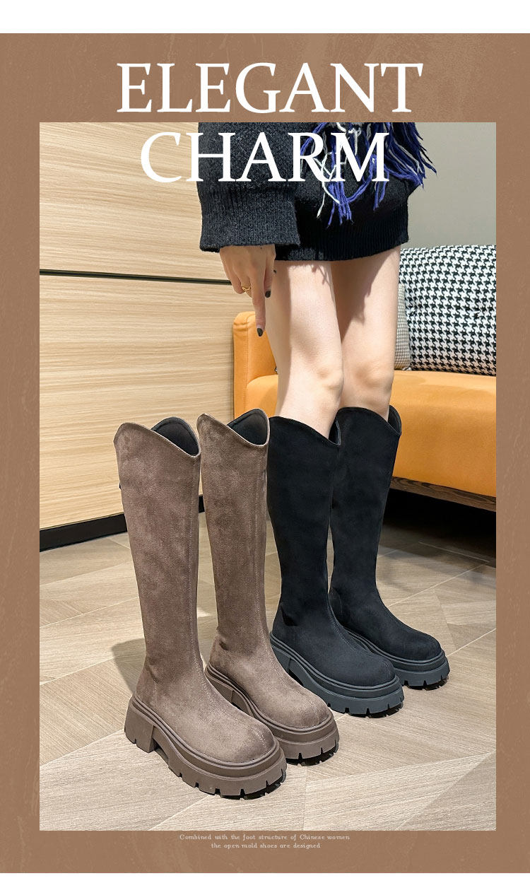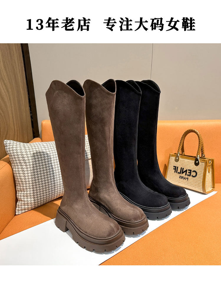 長筒靴女粗腿大筒圍胖mm厚底秋冬靴子v口高筒靴2025新款大碼女靴