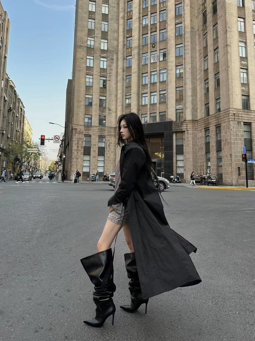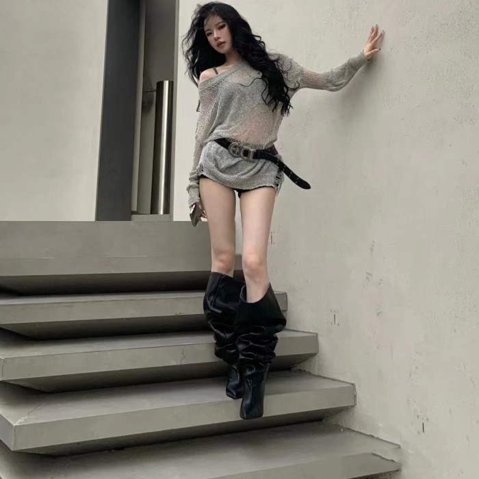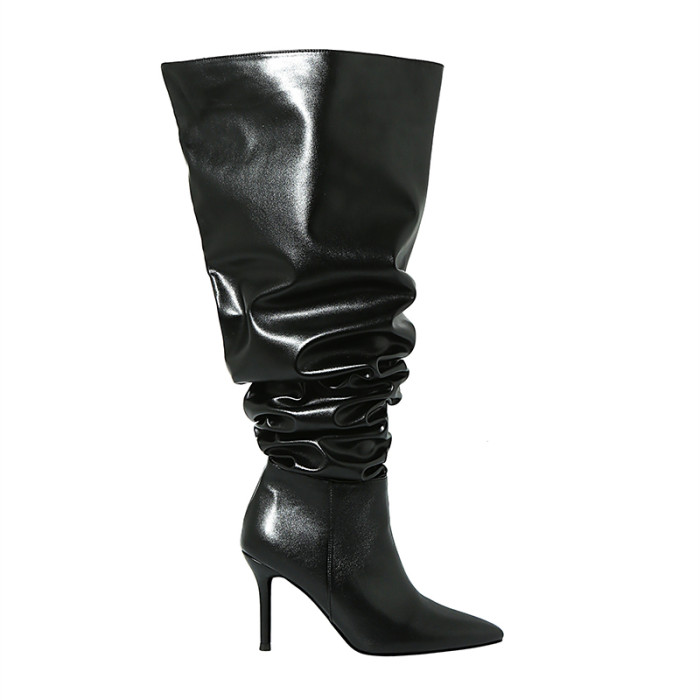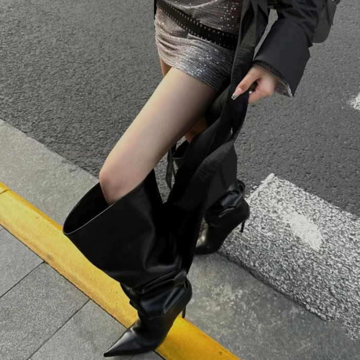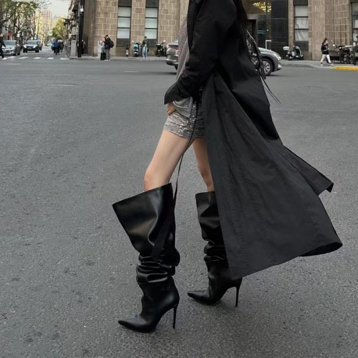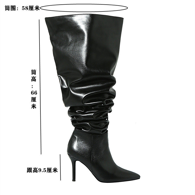 長靴女大筒圍黑色高跟歐美風高筒靴子2025年冬尖頭細跟騎士堆堆靴