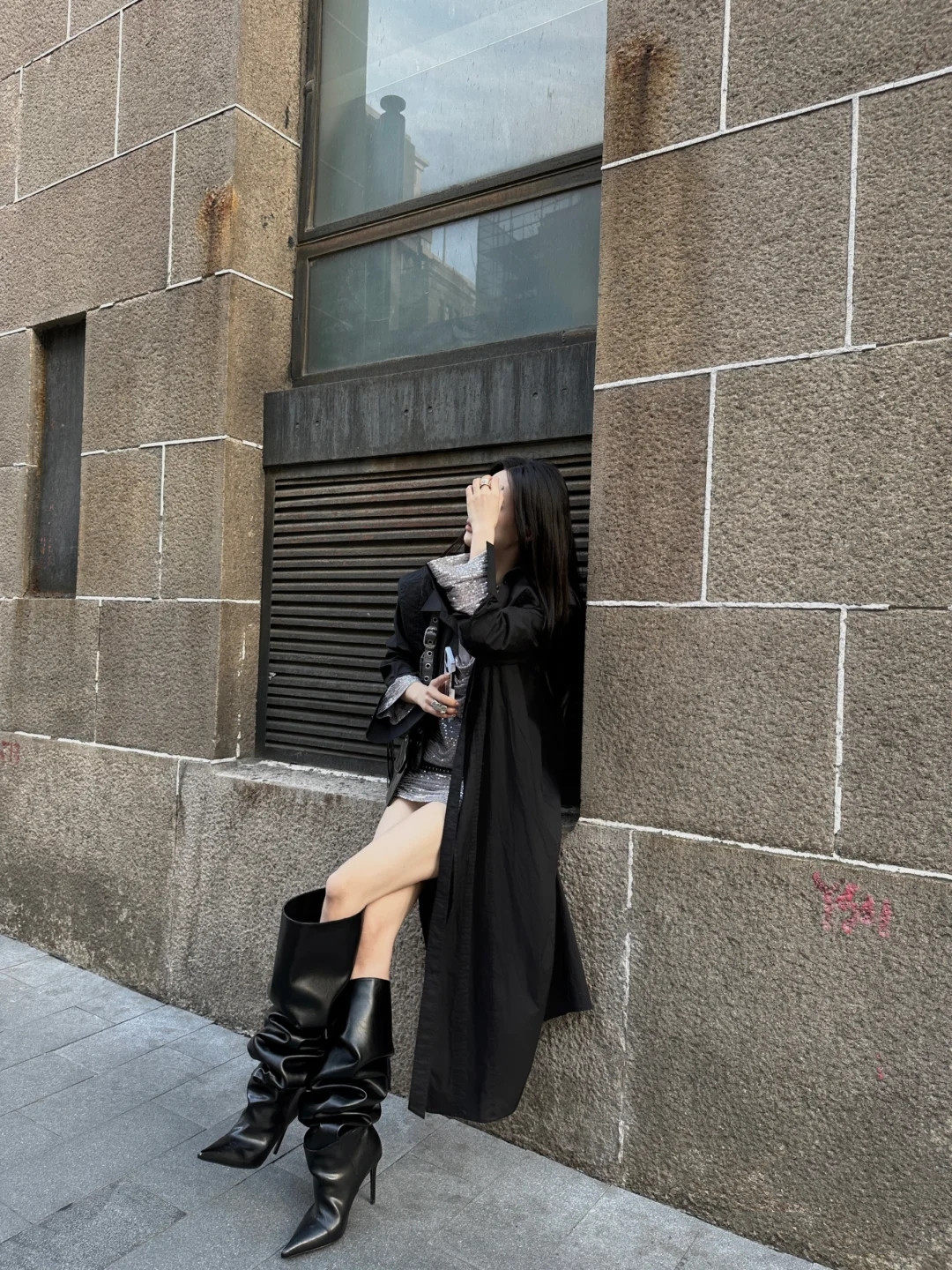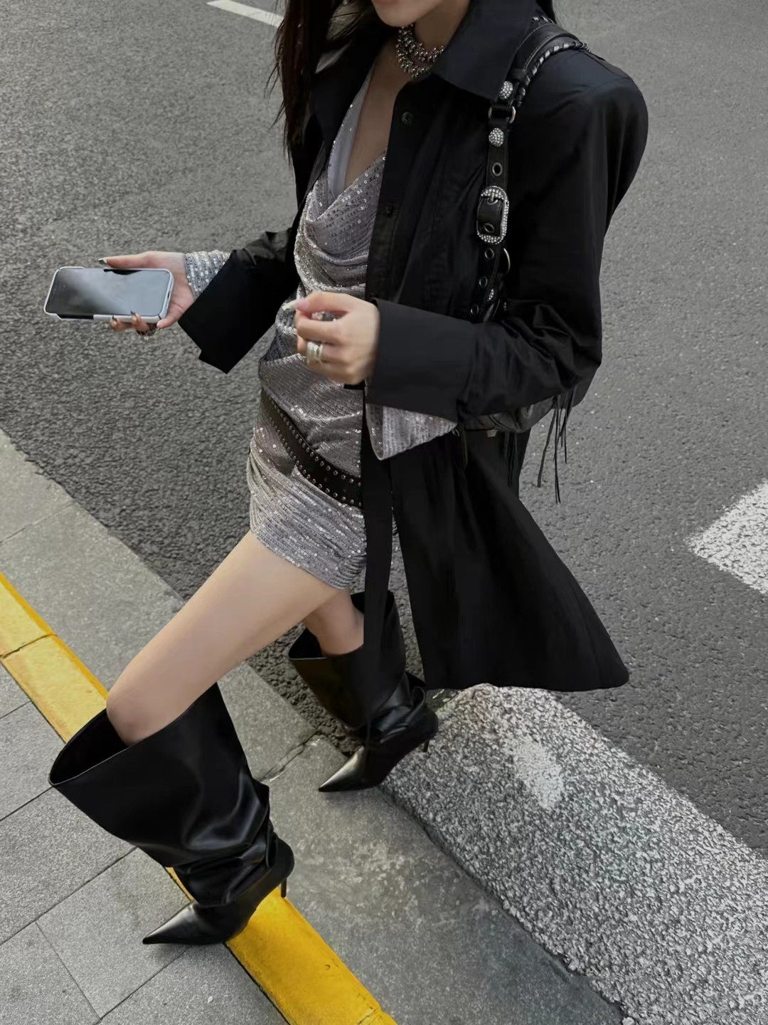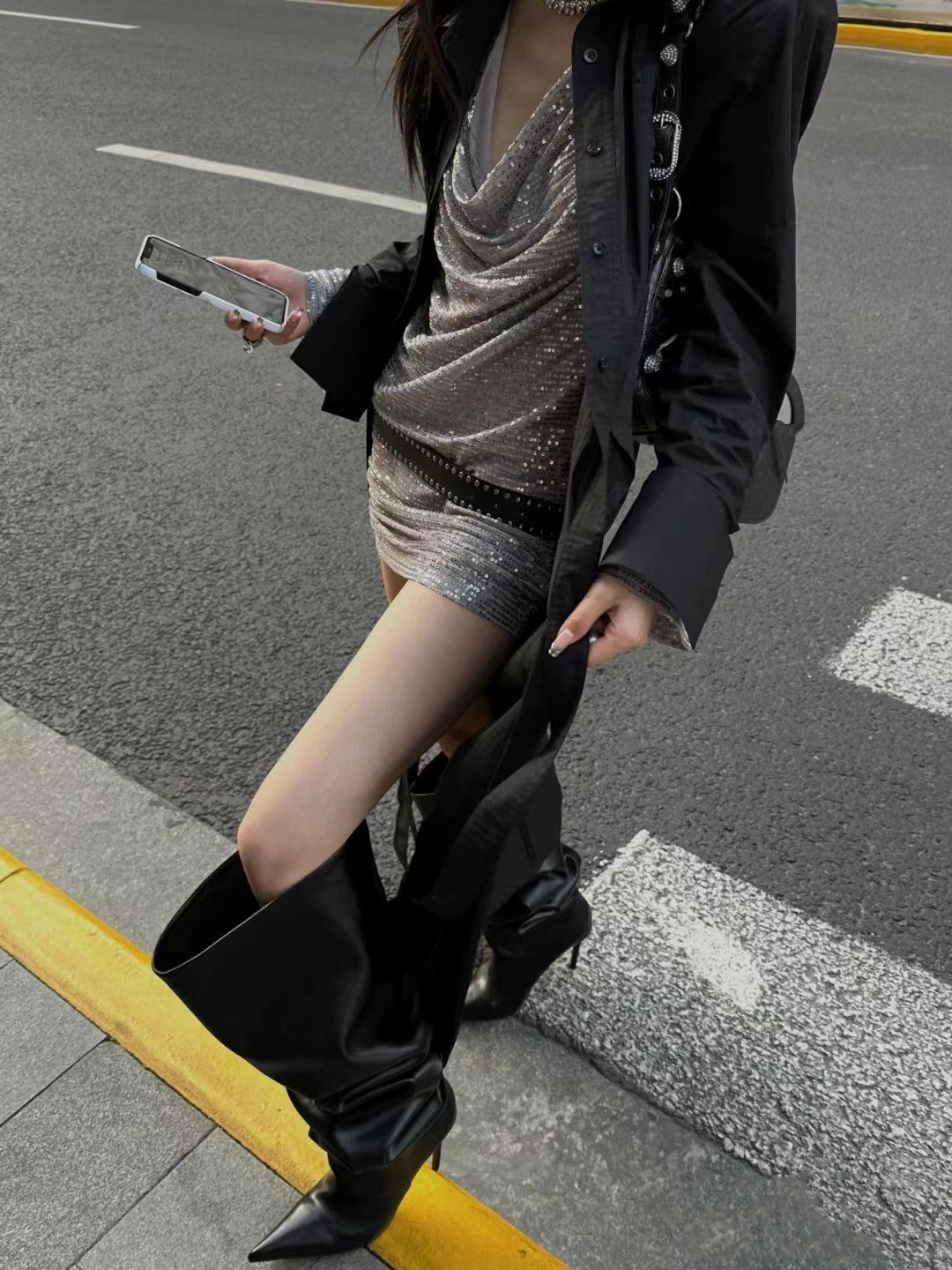 長靴女大筒圍黑色高跟歐美風高筒靴子2025年冬尖頭細跟騎士堆堆靴