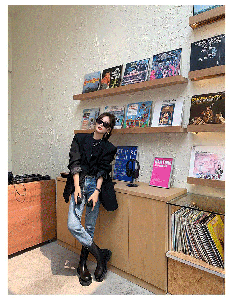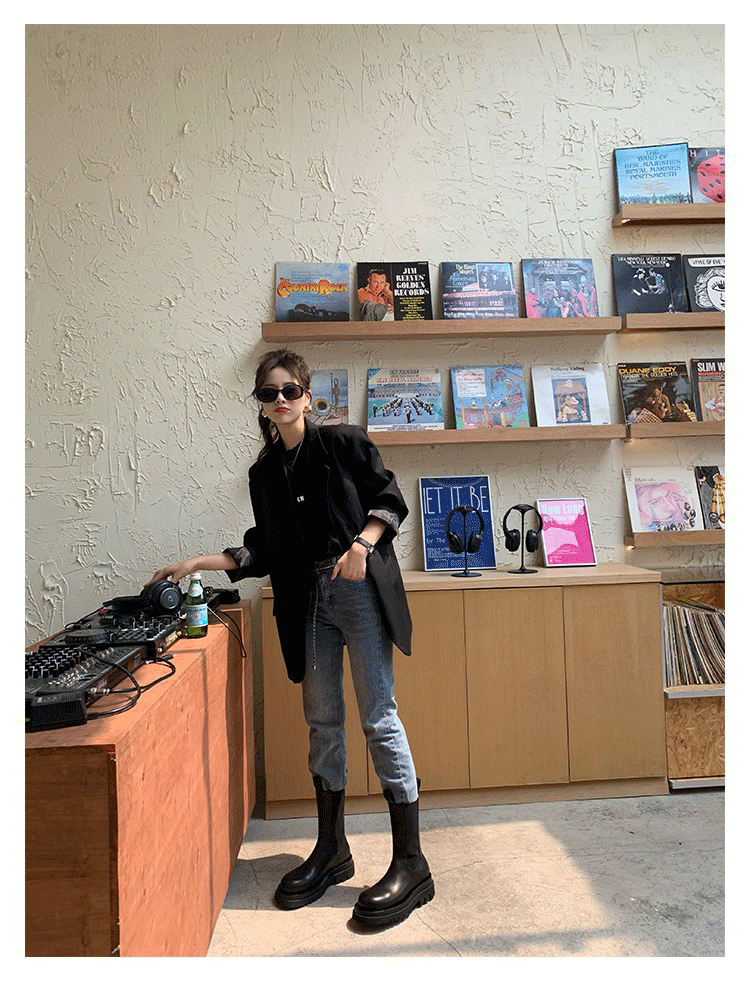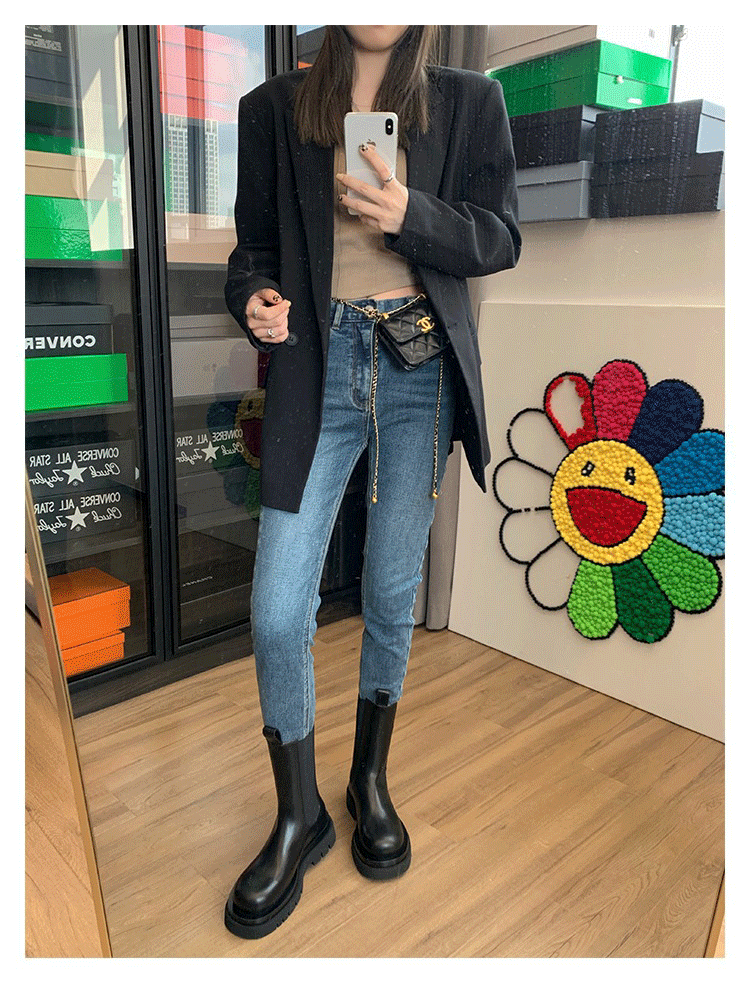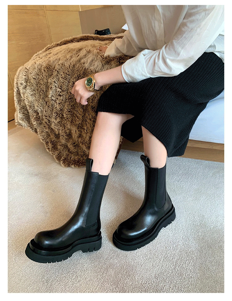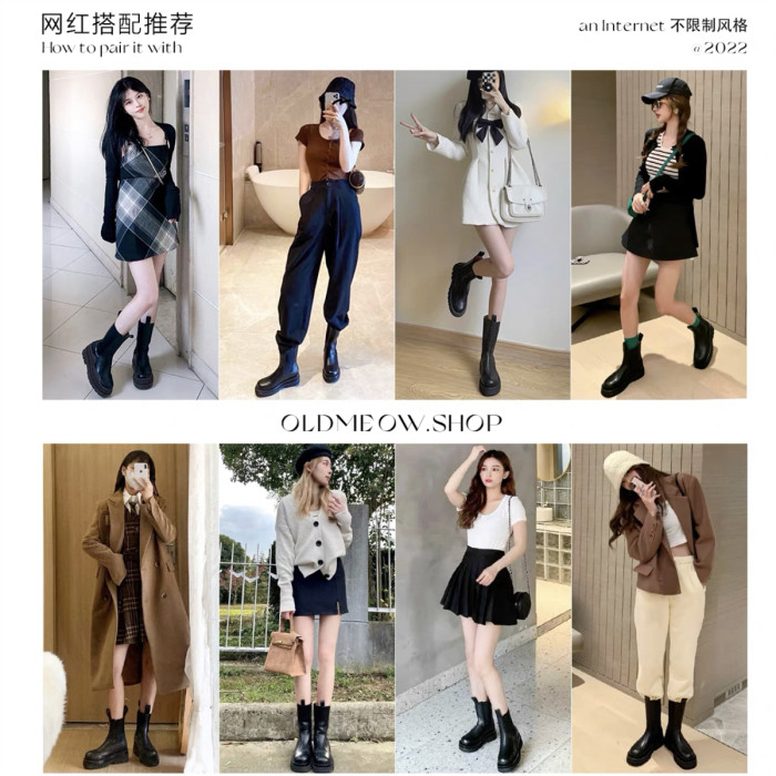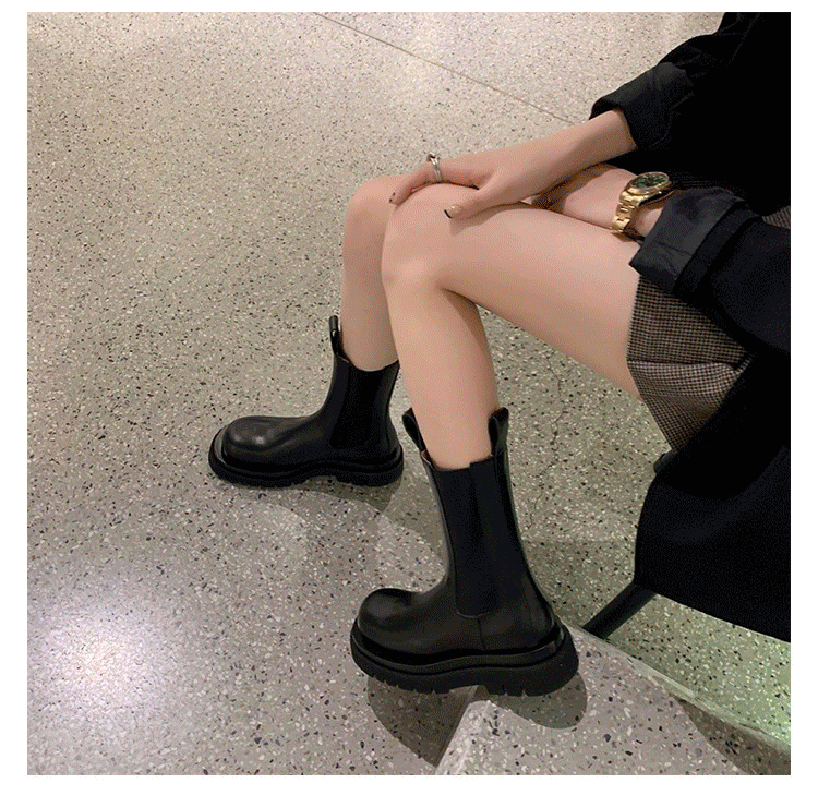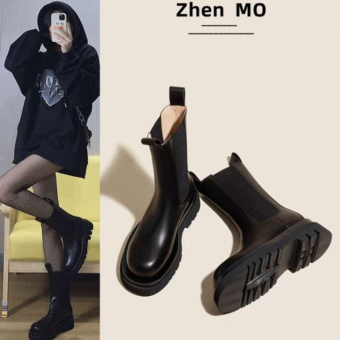 馬丁靴女2026春秋新款靴子切爾西短靴厚底菸琯加絨女鞋中筒菸筒靴