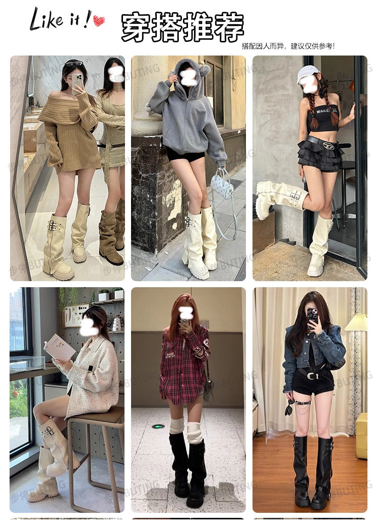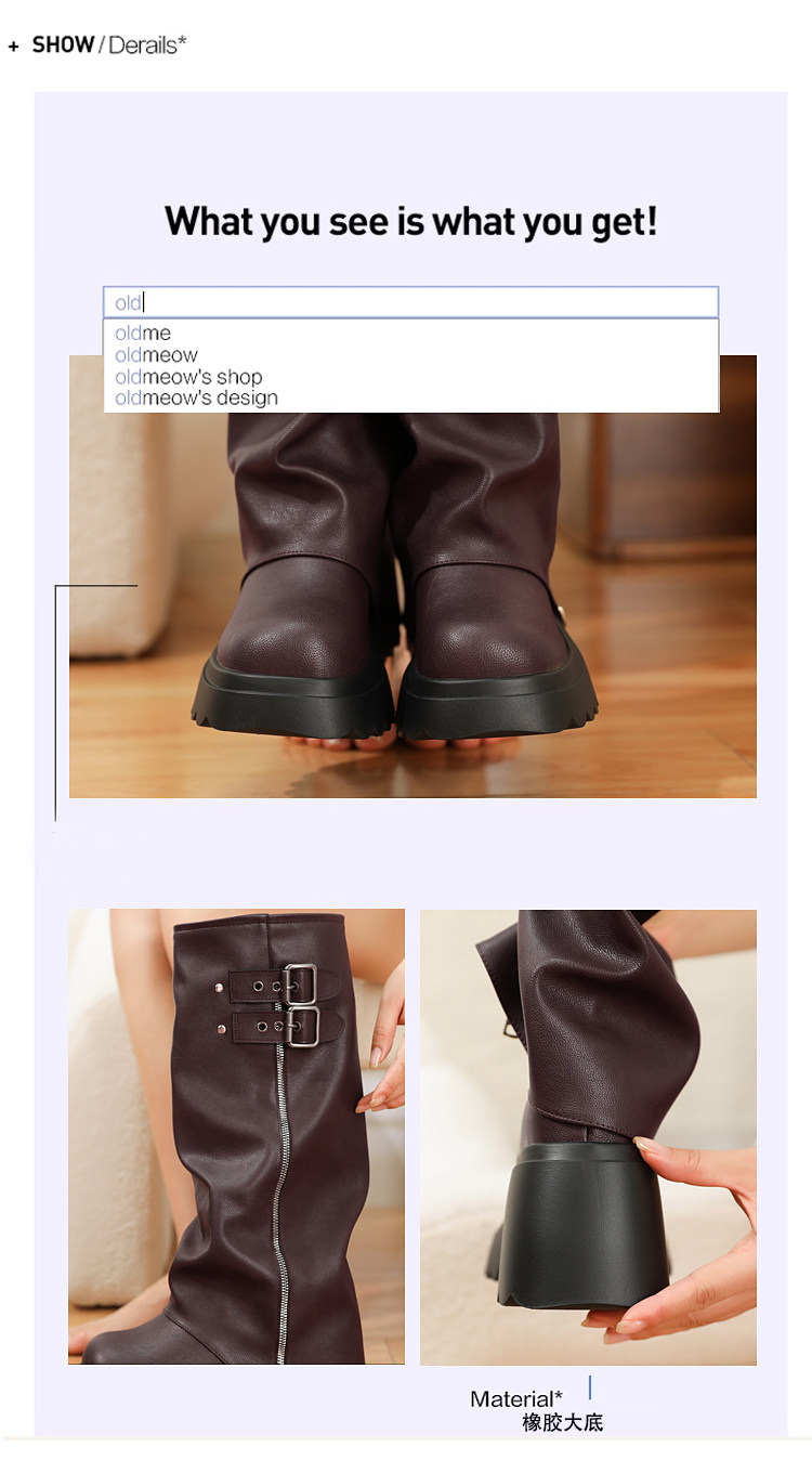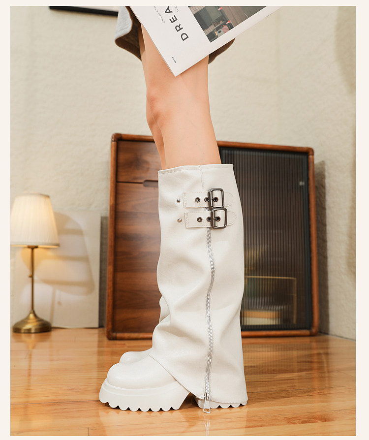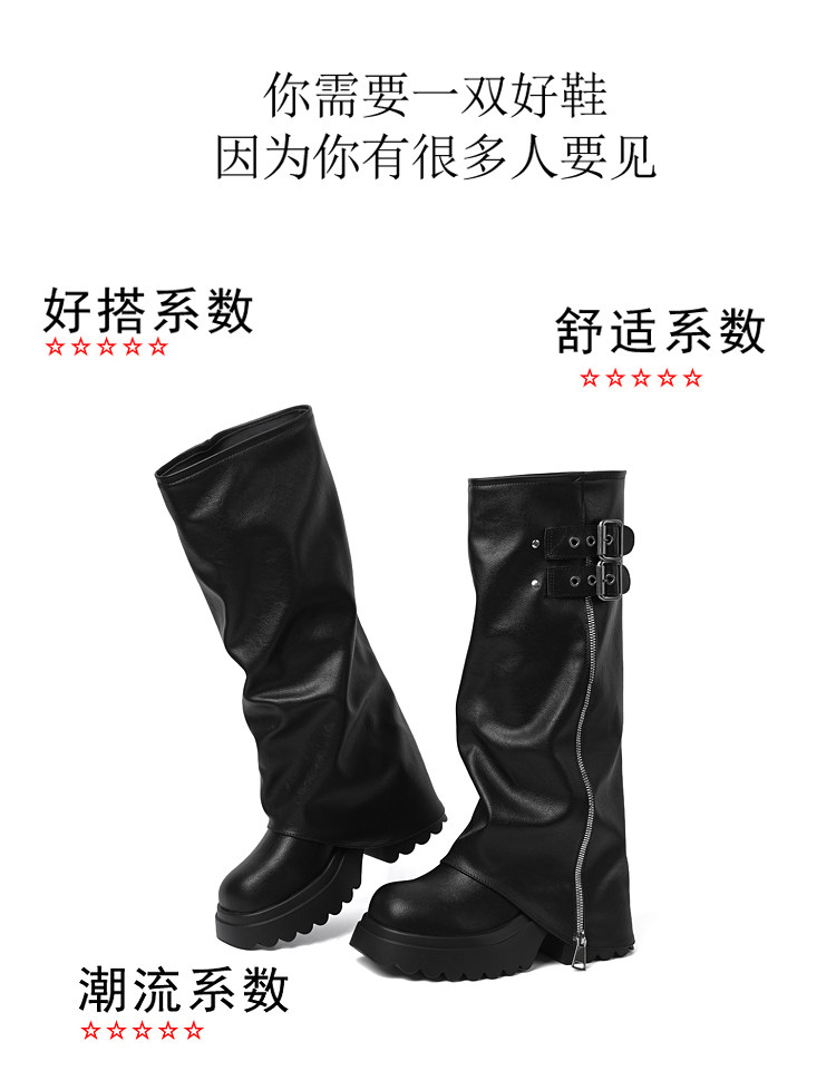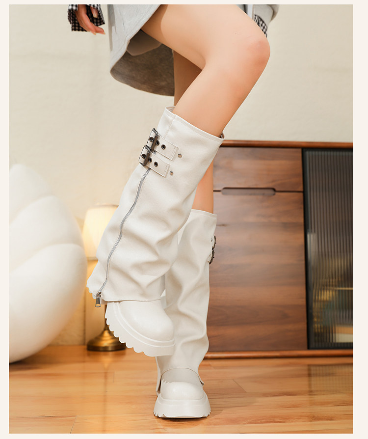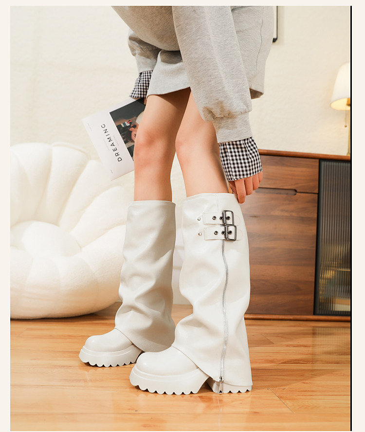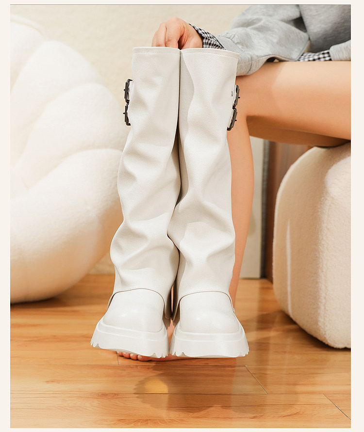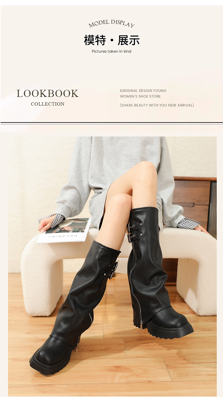 真皮大頭褲琯靴堆堆靴女2025厚底增高西部靴不過膝長靴高筒騎士靴