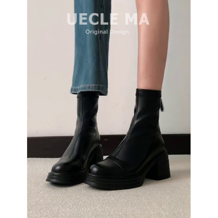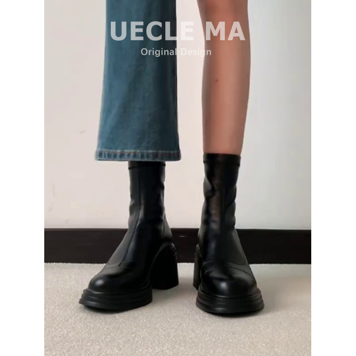 真皮~增高厚底短靴女秋冬款馬丁靴小個子高跟鞋粗跟巨好看瘦瘦靴