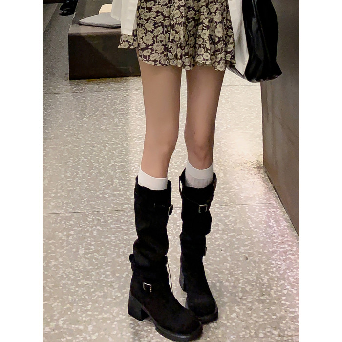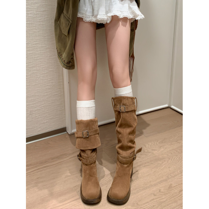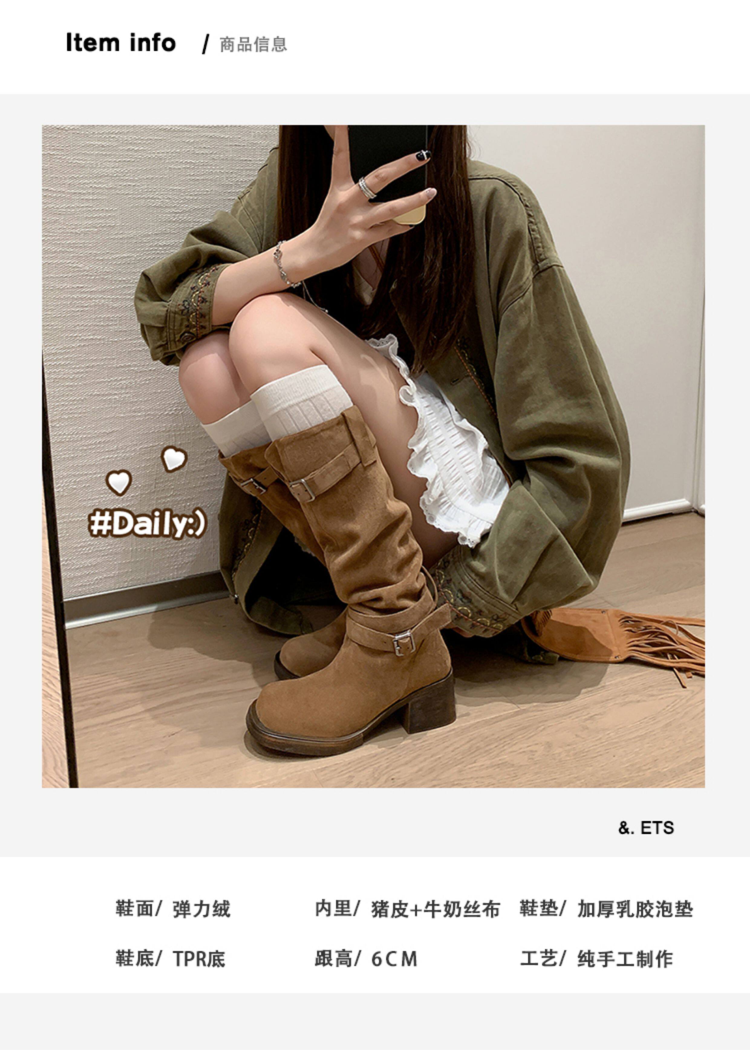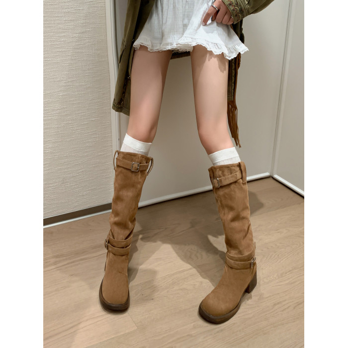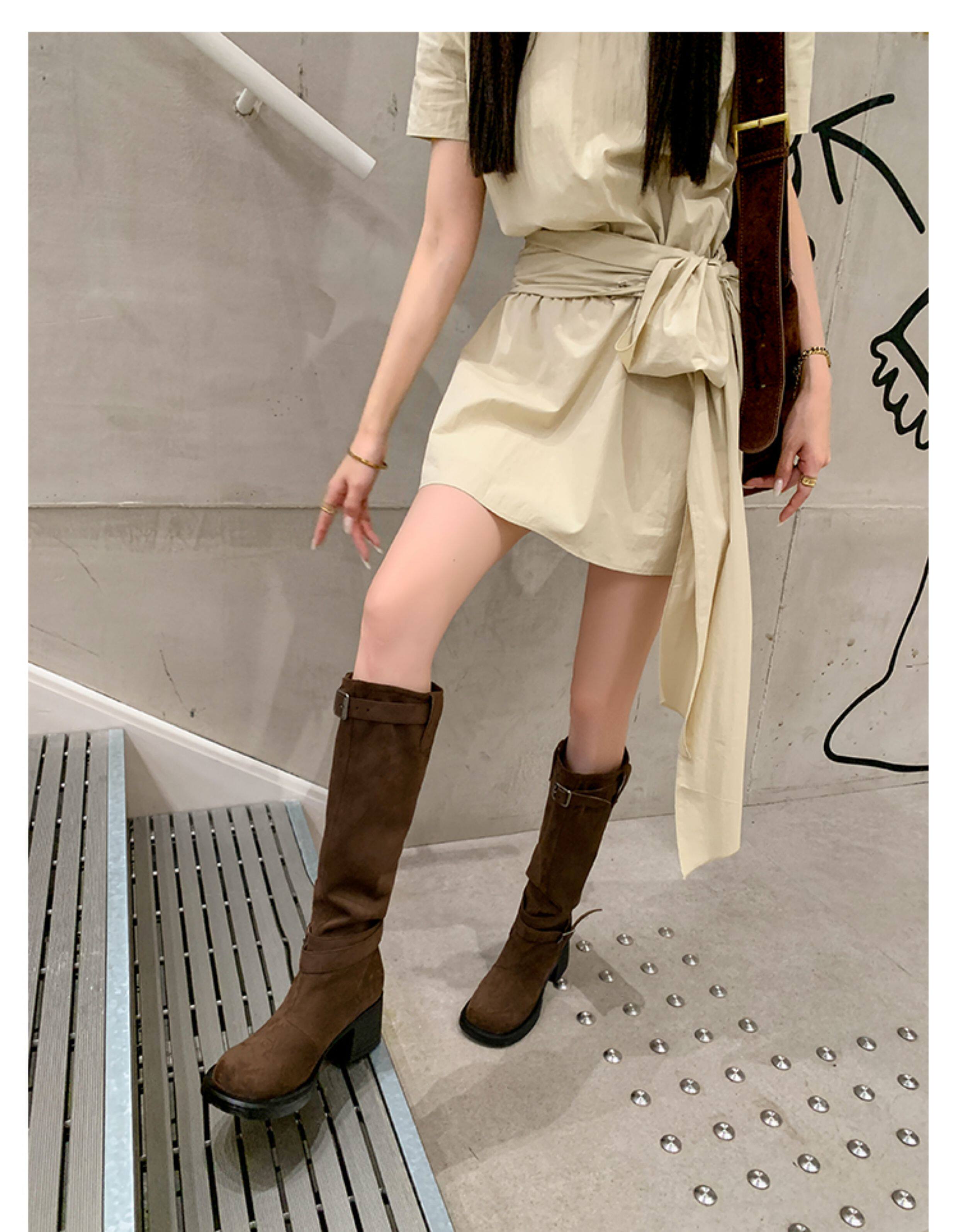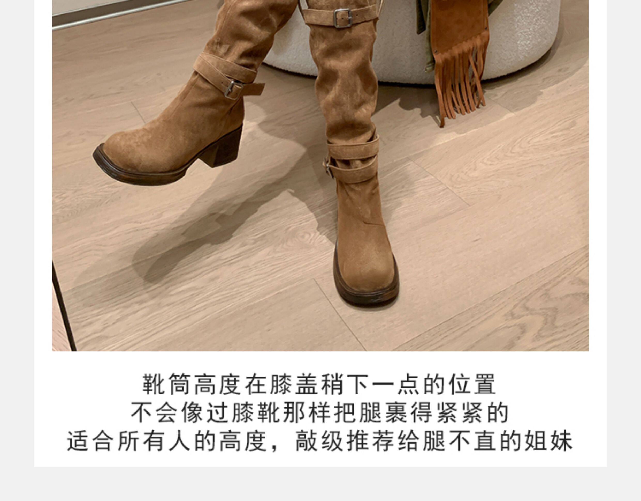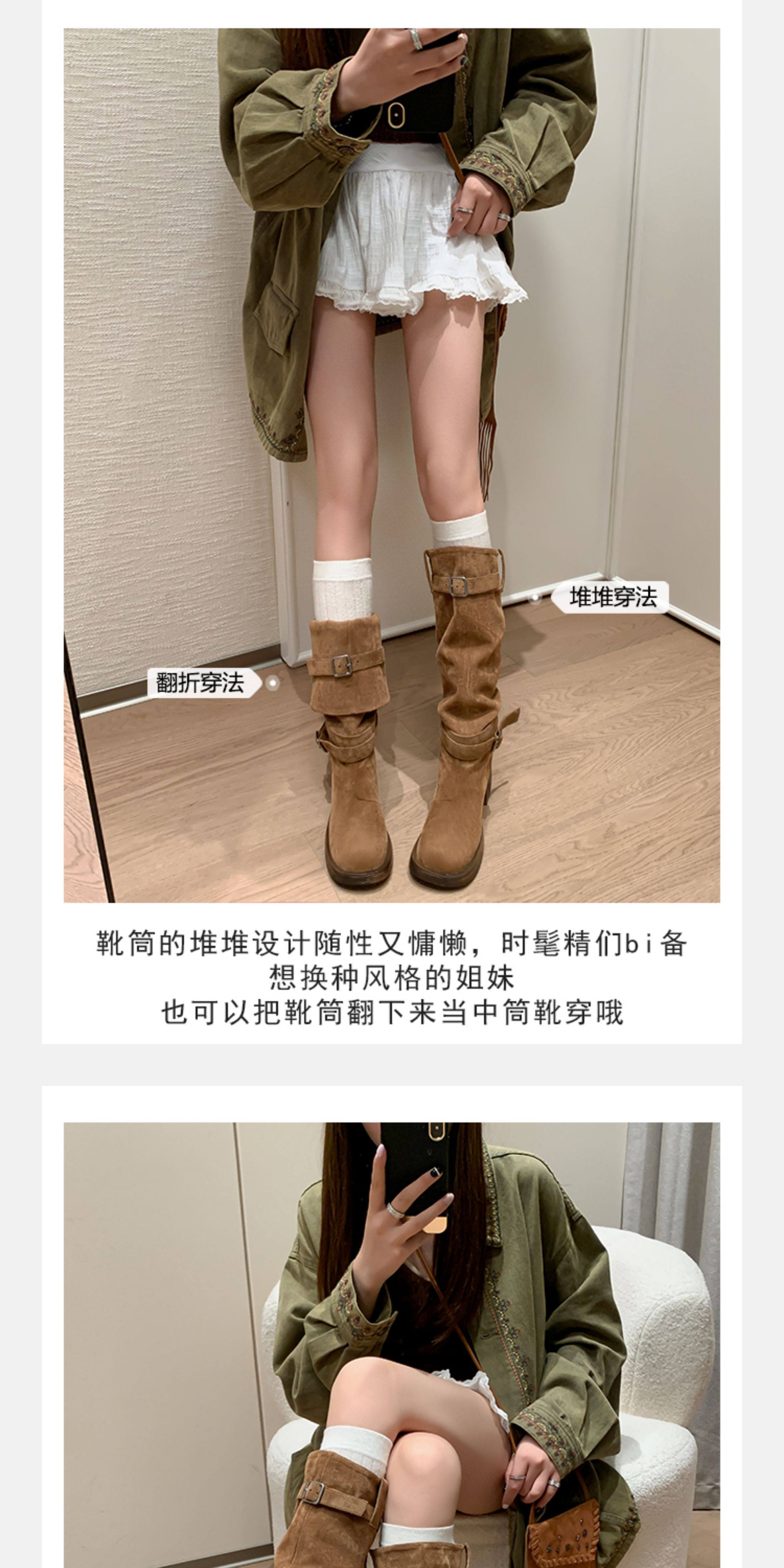 復古靴子女長筒靴高筒堆堆靴棕色騎士靴西部長靴美拉德