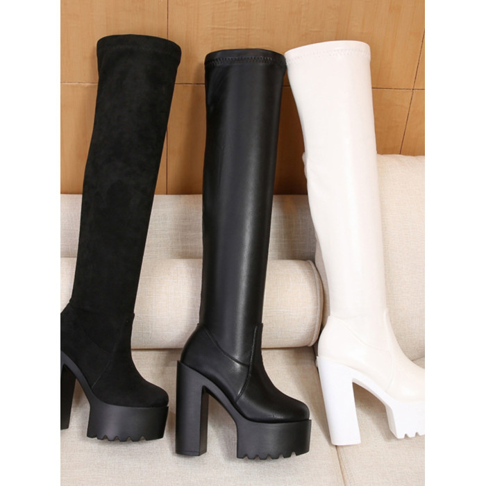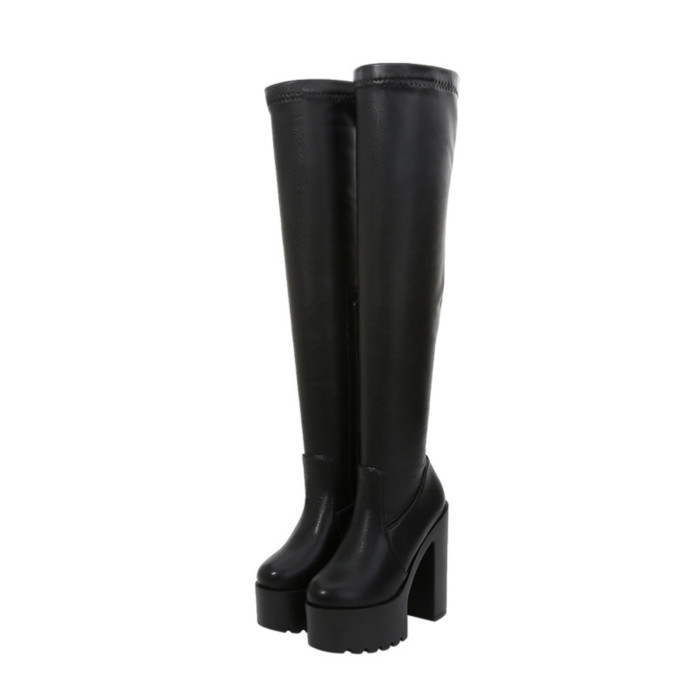 顯瘦彈力靴長筒靴女過膝秋冬季15CM新款厚底瘦瘦靴超高跟粗跟長靴