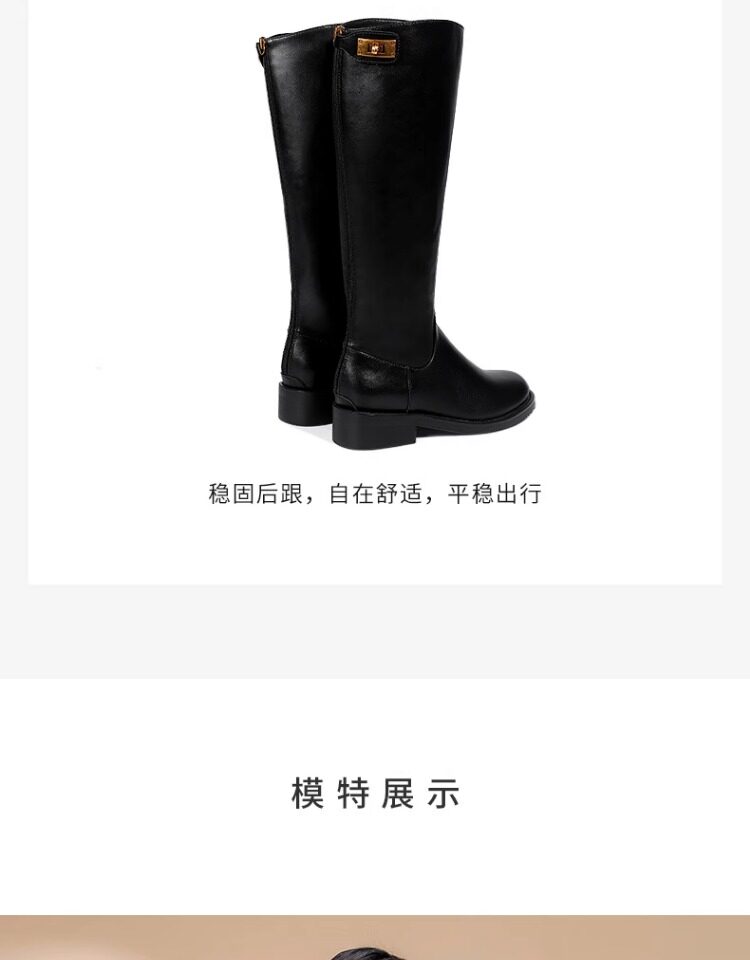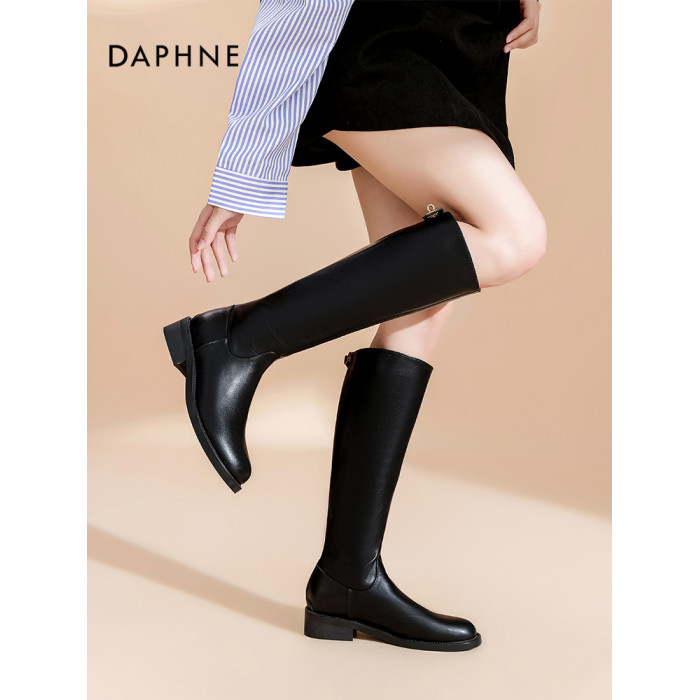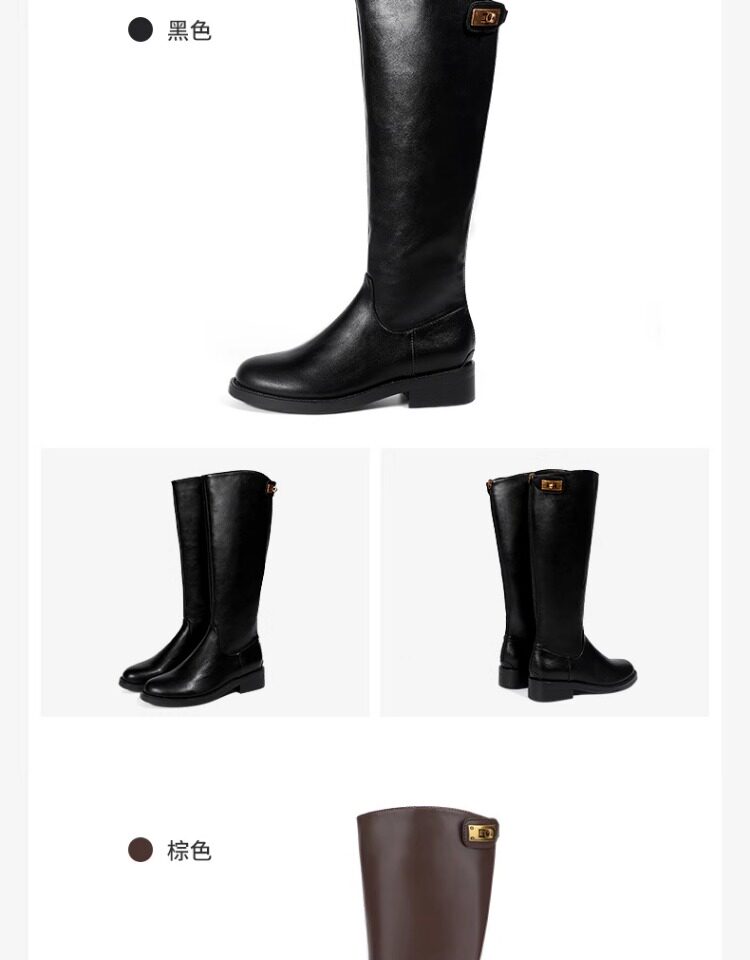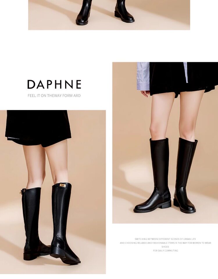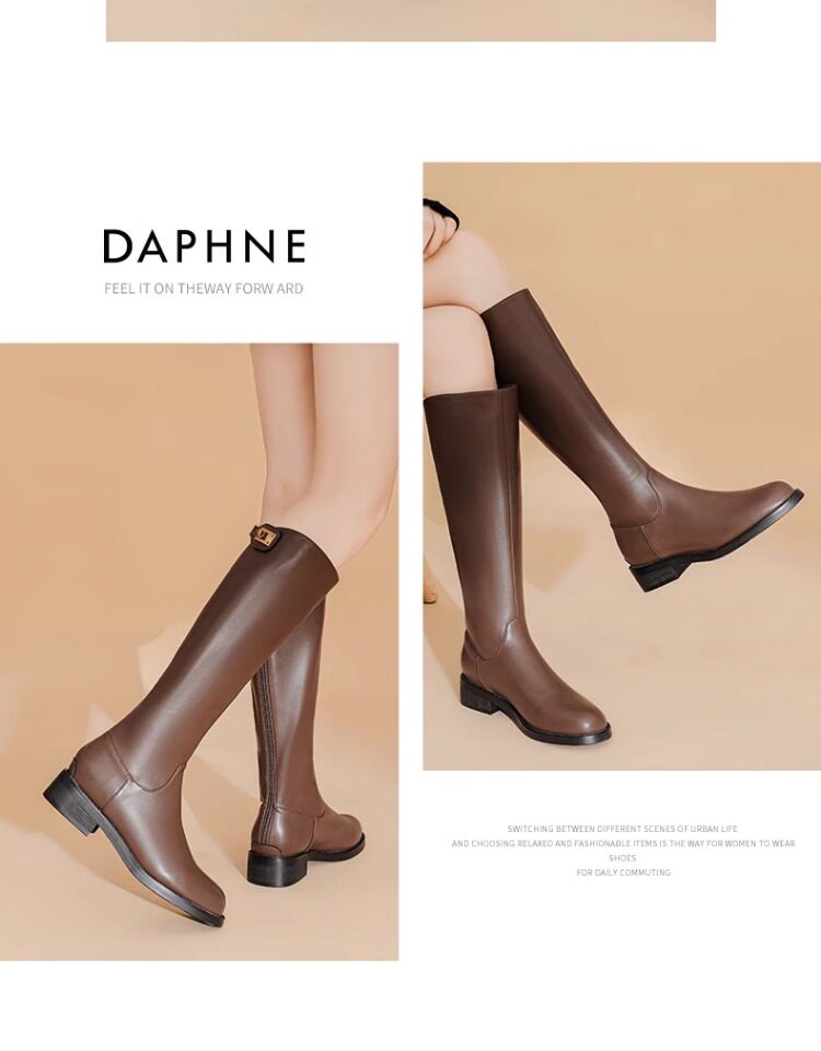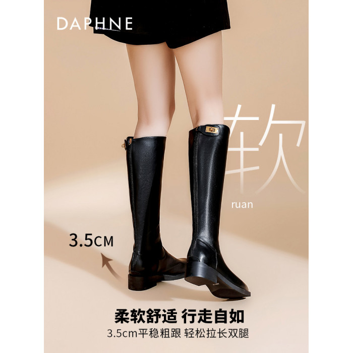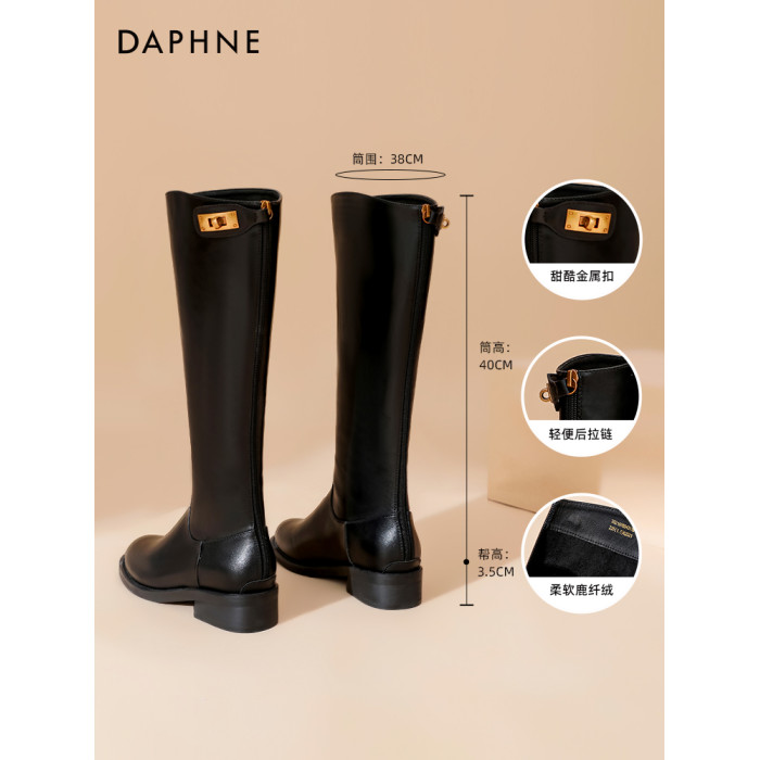 達芙妮厚底金鎖釦長筒靴女春2026新款百搭顯瘦長靴不過膝騎士靴女