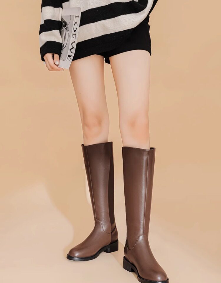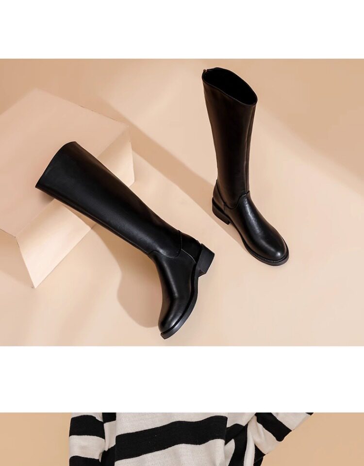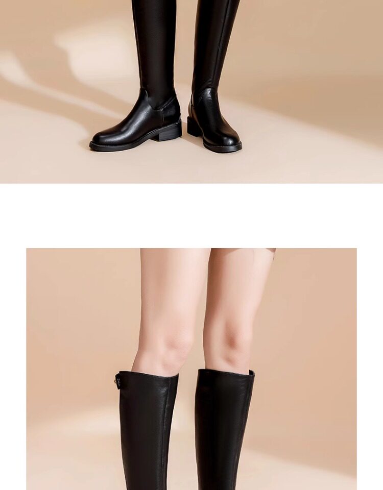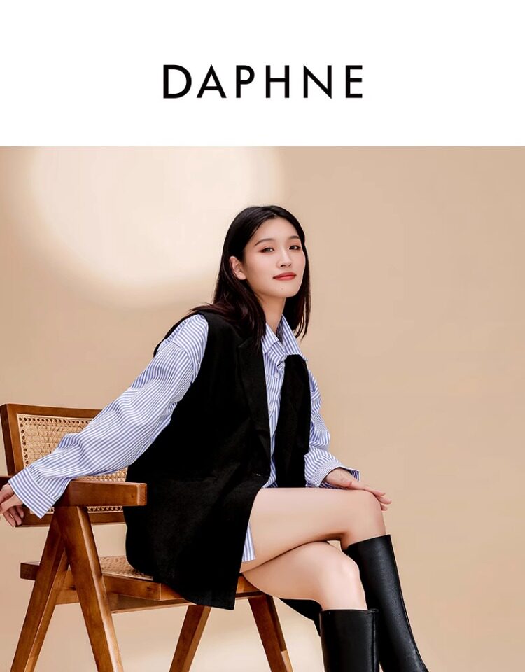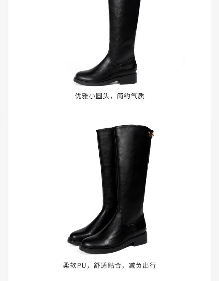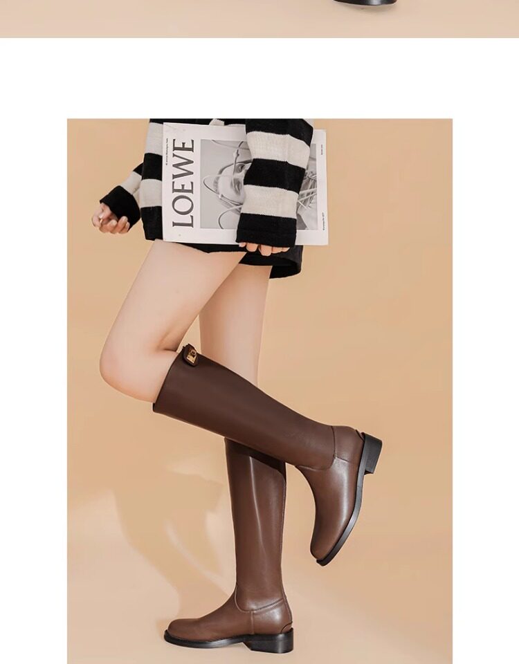 達芙妮厚底金鎖釦長筒靴女春2026新款百搭顯瘦長靴不過膝騎士靴女