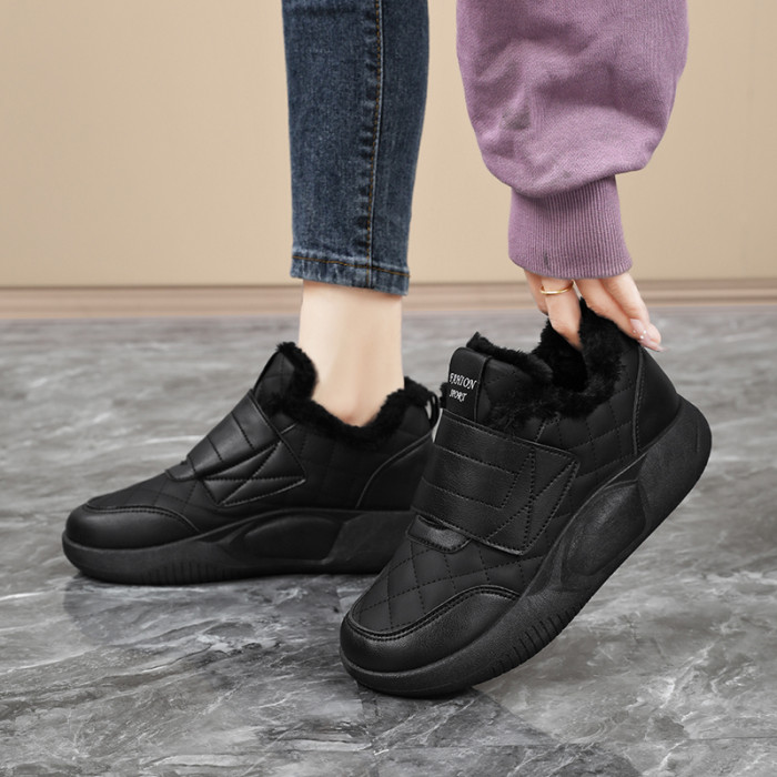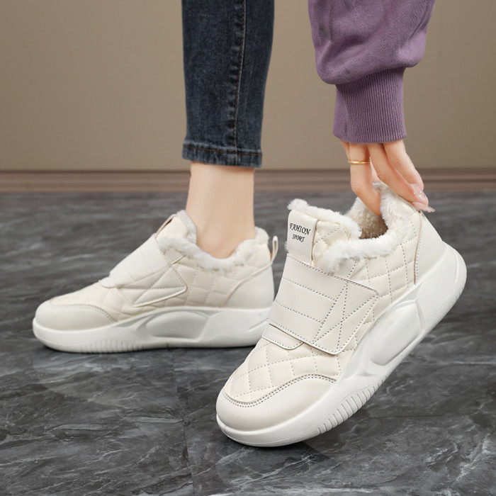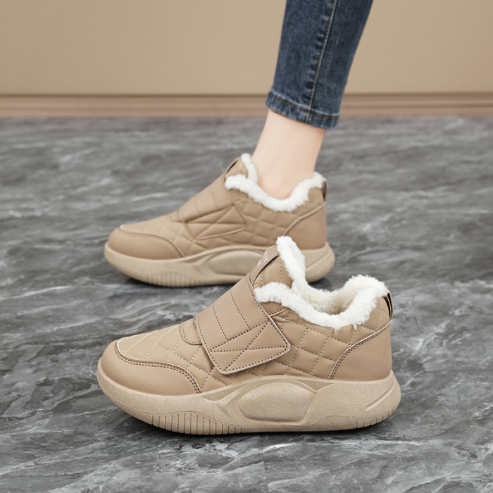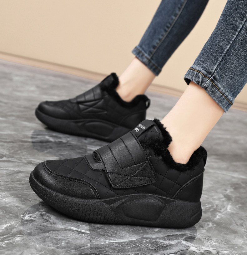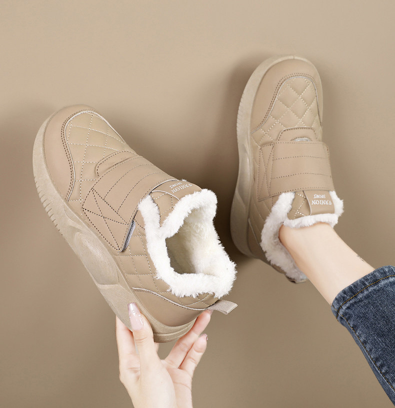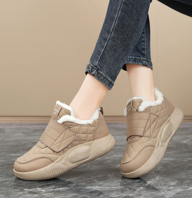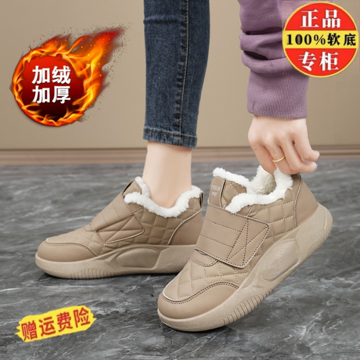 品牌撤櫃真皮新款運動鞋女2025冬季保暖雪地靴魔術貼孕婦加絨棉鞋