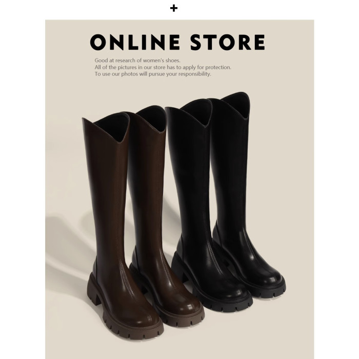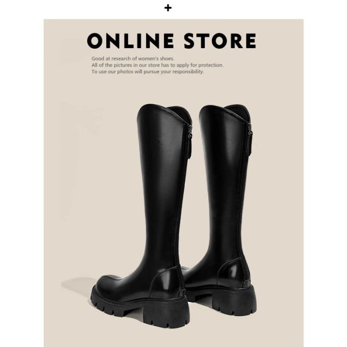 長筒靴女2026新款秋冬厚底粗跟高筒騎士靴不過膝粗腿大筒圍長靴子