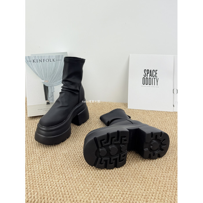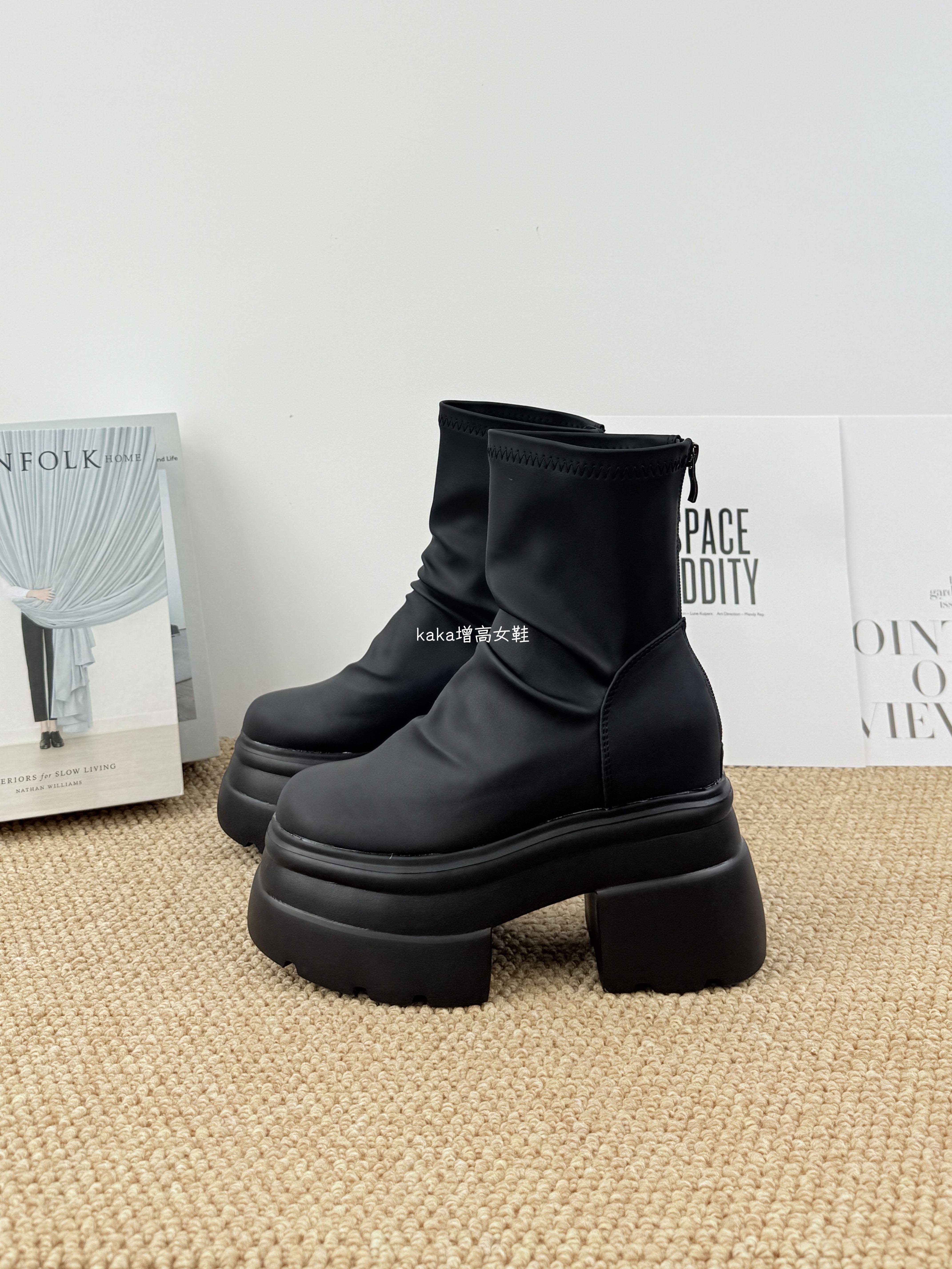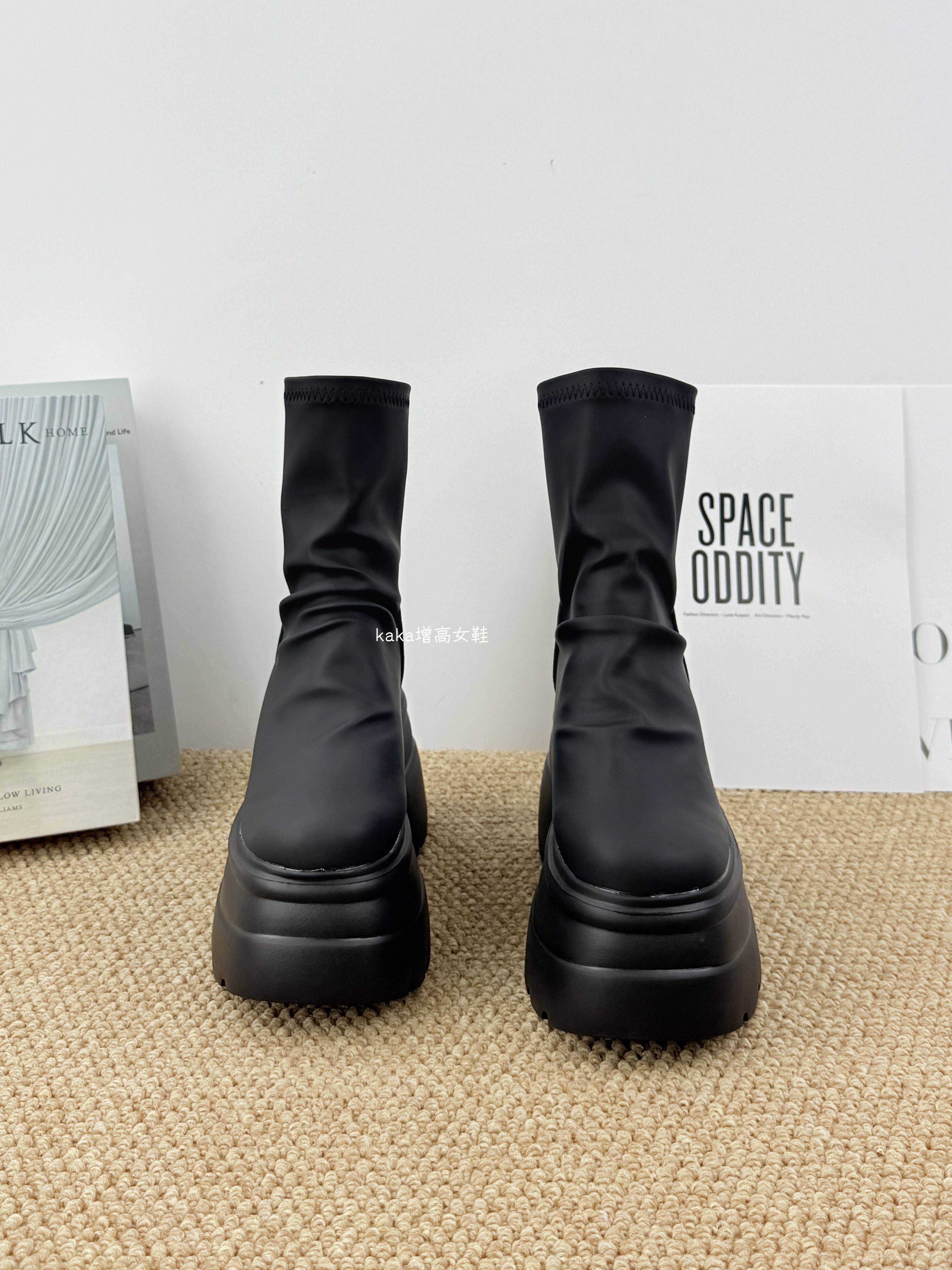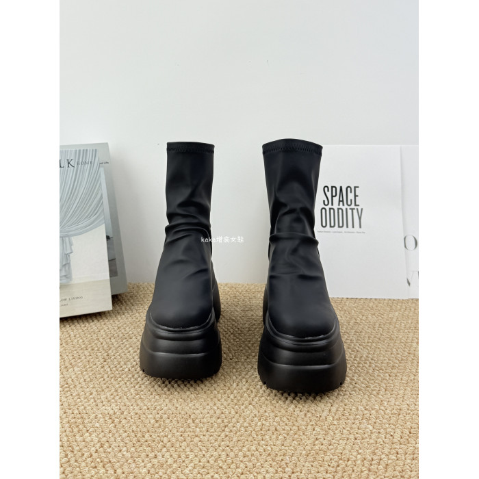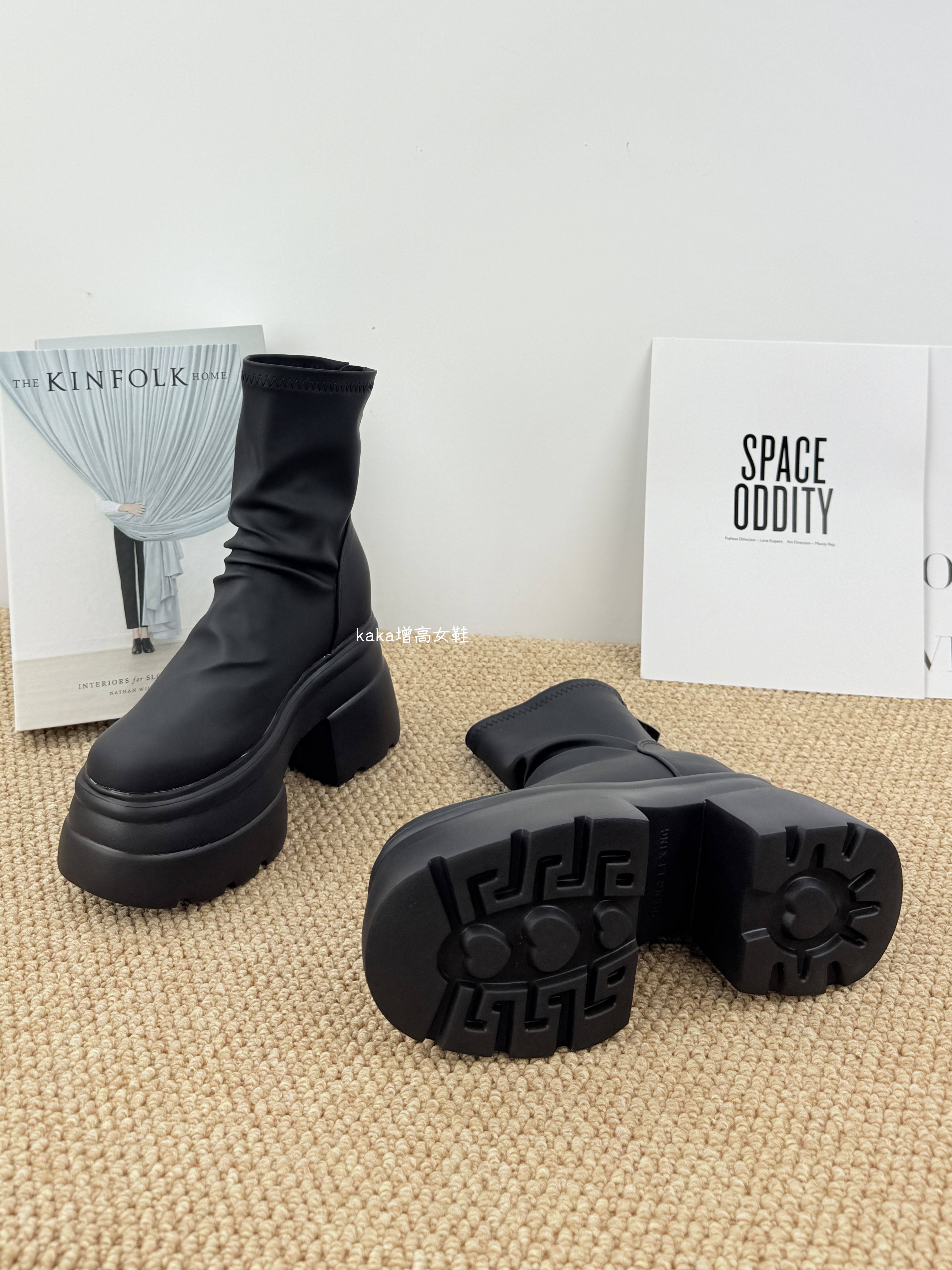 內增高13cm褶皺馬丁靴女黑色超厚底松糕菸筒靴英倫風彈力瘦瘦短靴