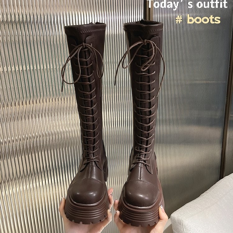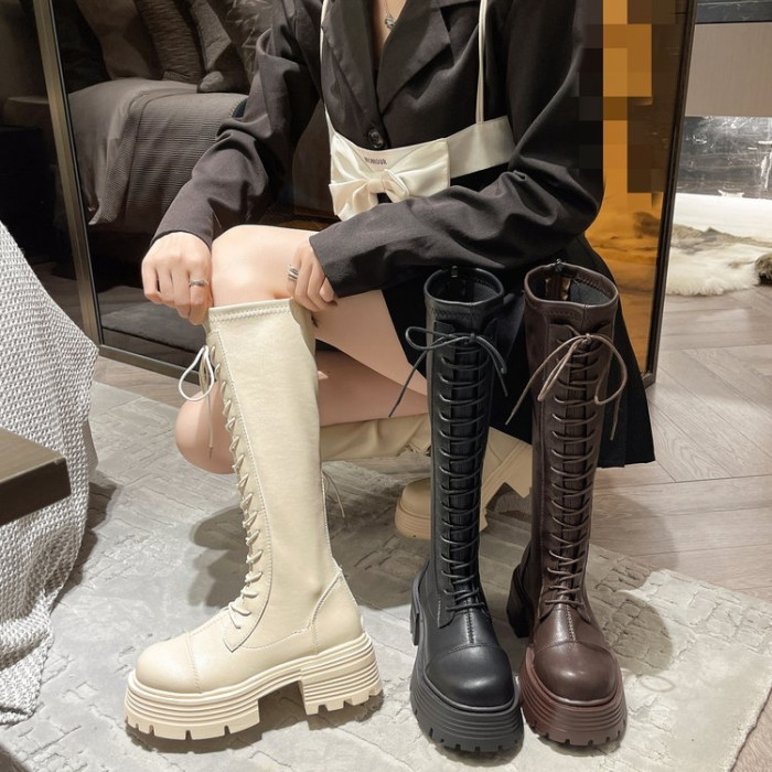 長筒靴女時尚舒適白色長靴子2025新款秋冬季厚底馬丁靴高筒騎士靴