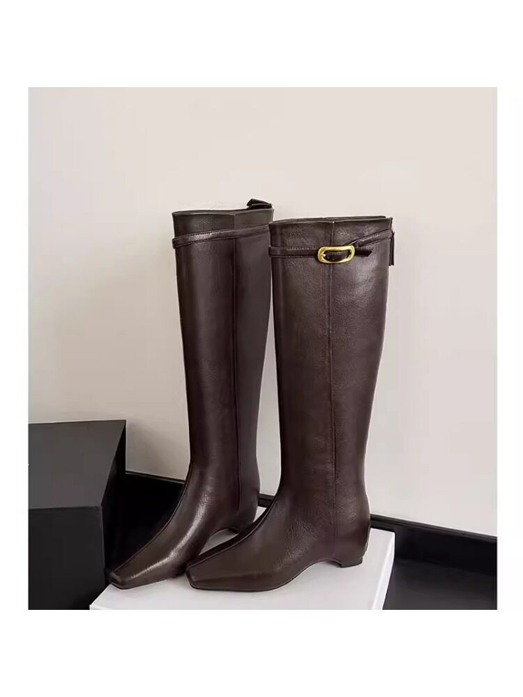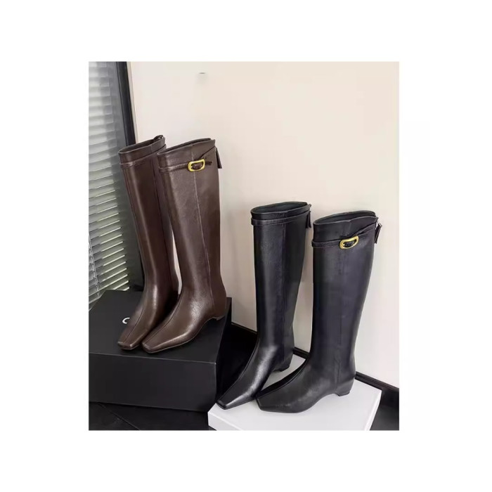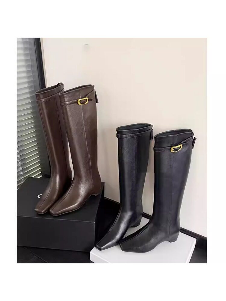 牛皮版~秋冬新款真皮小香風氣質長靴馬丁靴長筒靴時尚女時裝靴女