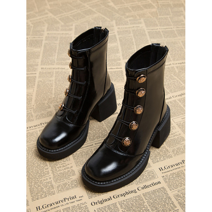 厚底馬丁靴女秋2025新款歐貨爆款靴子高跟網紅短靴粗跟英倫瘦瘦靴