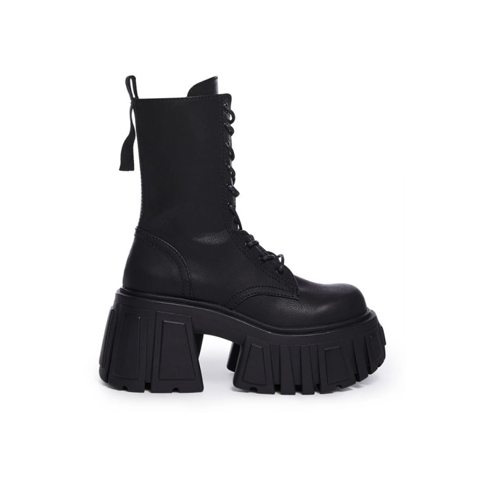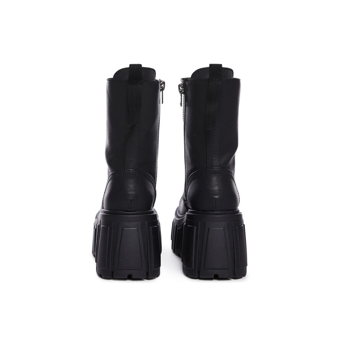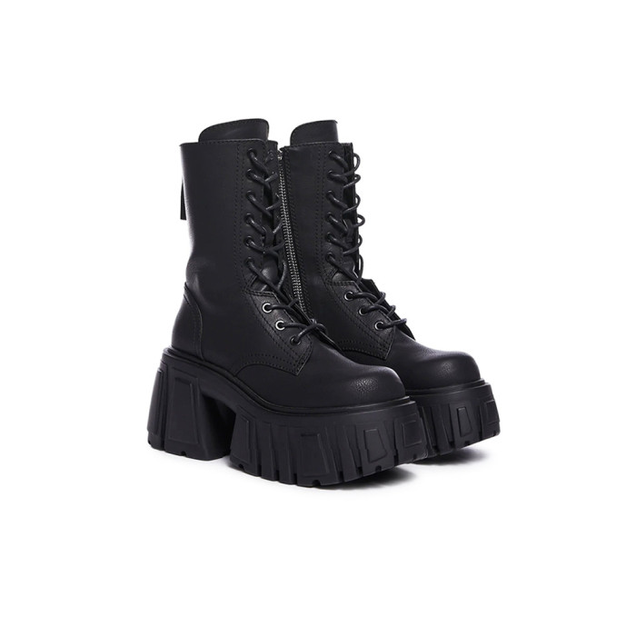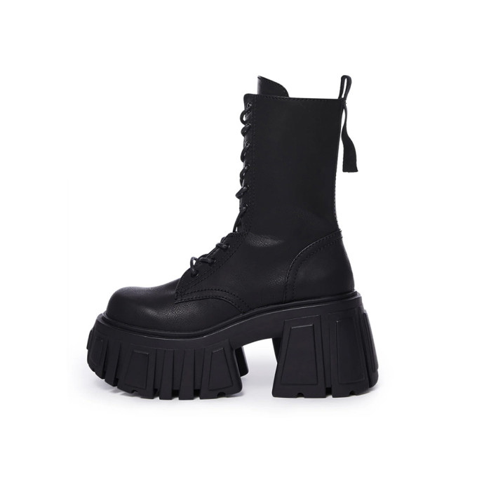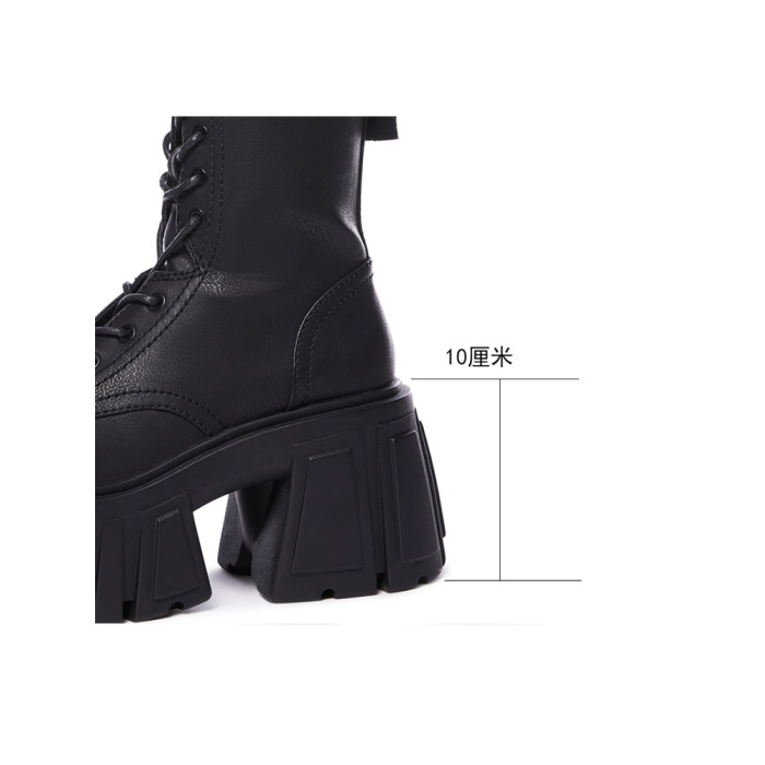 超高跟厚底中筒靴女秋冬小個子增高短靴潮矮子樂粗跟真皮馬丁靴子