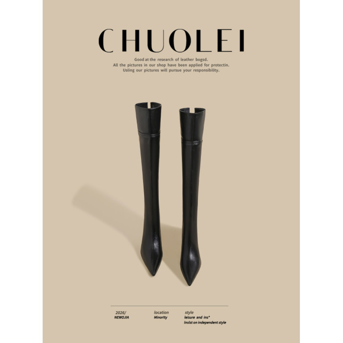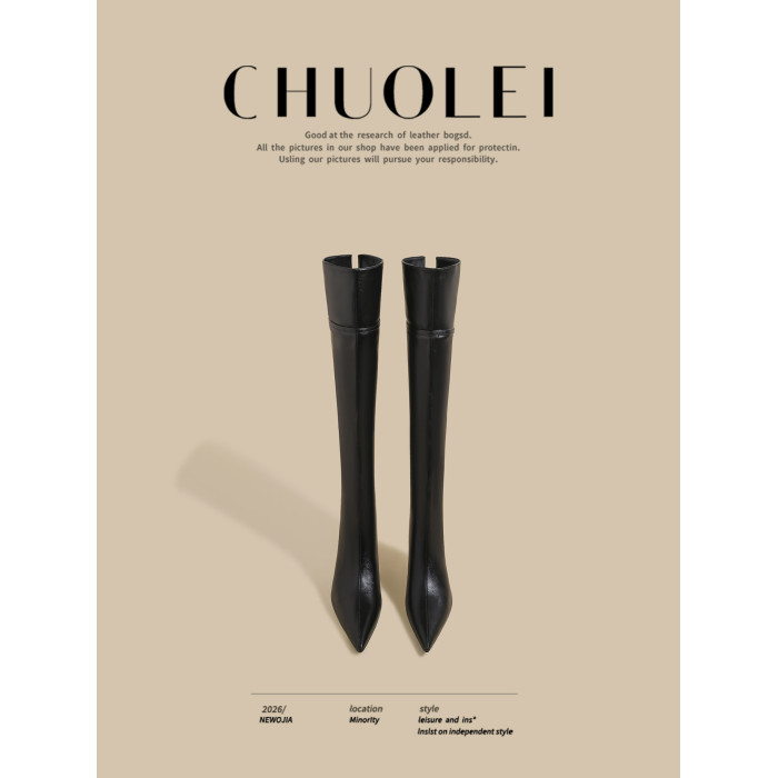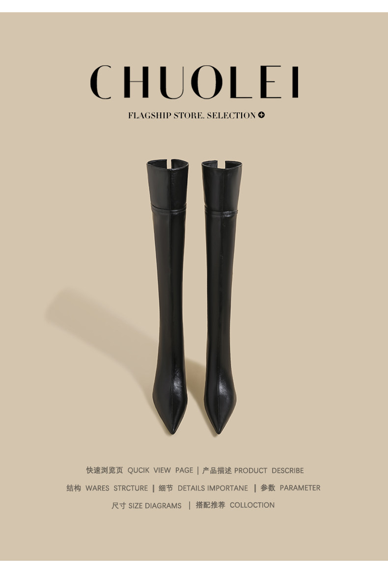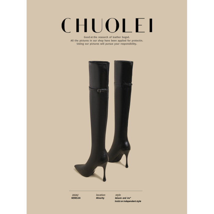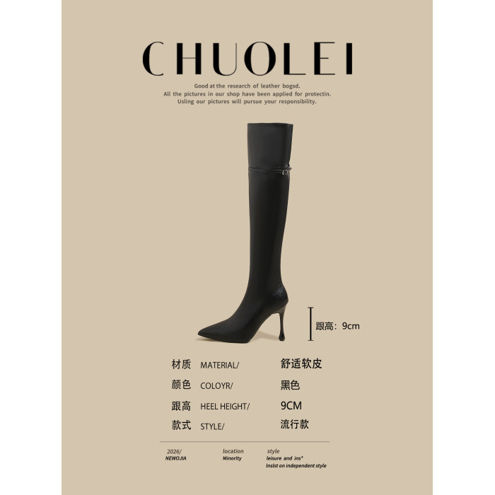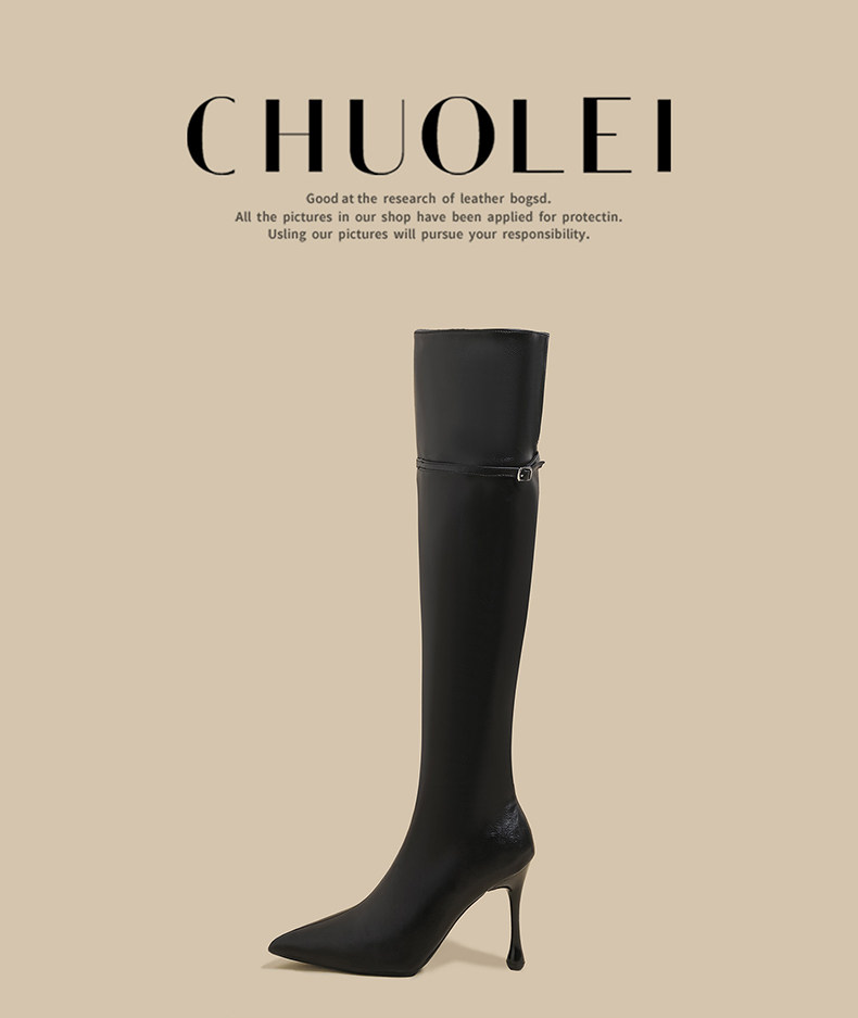 春季新款超火尖頭騎士靴女黑色加絨過膝靴細高跟百搭長筒瘦瘦靴子