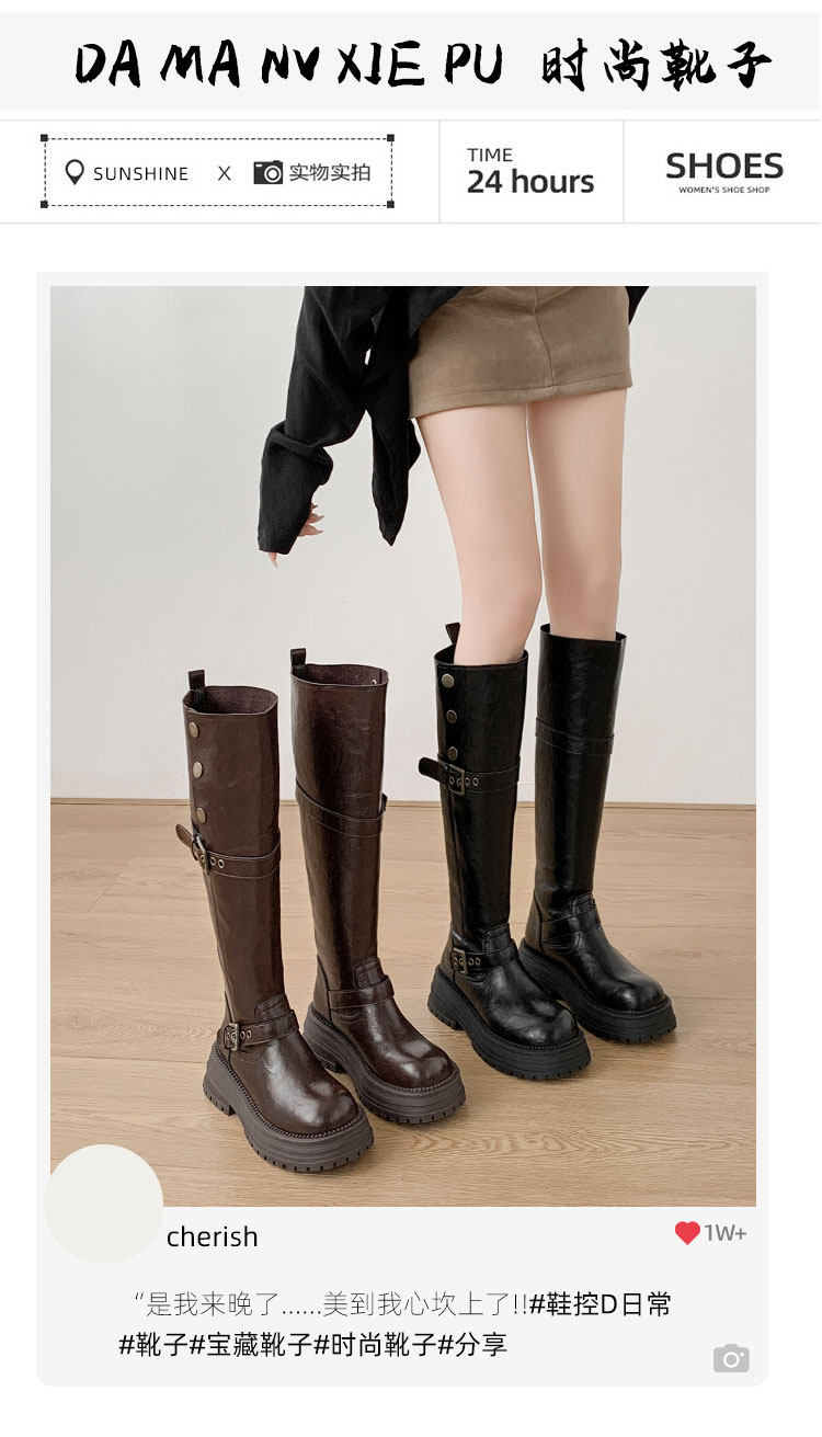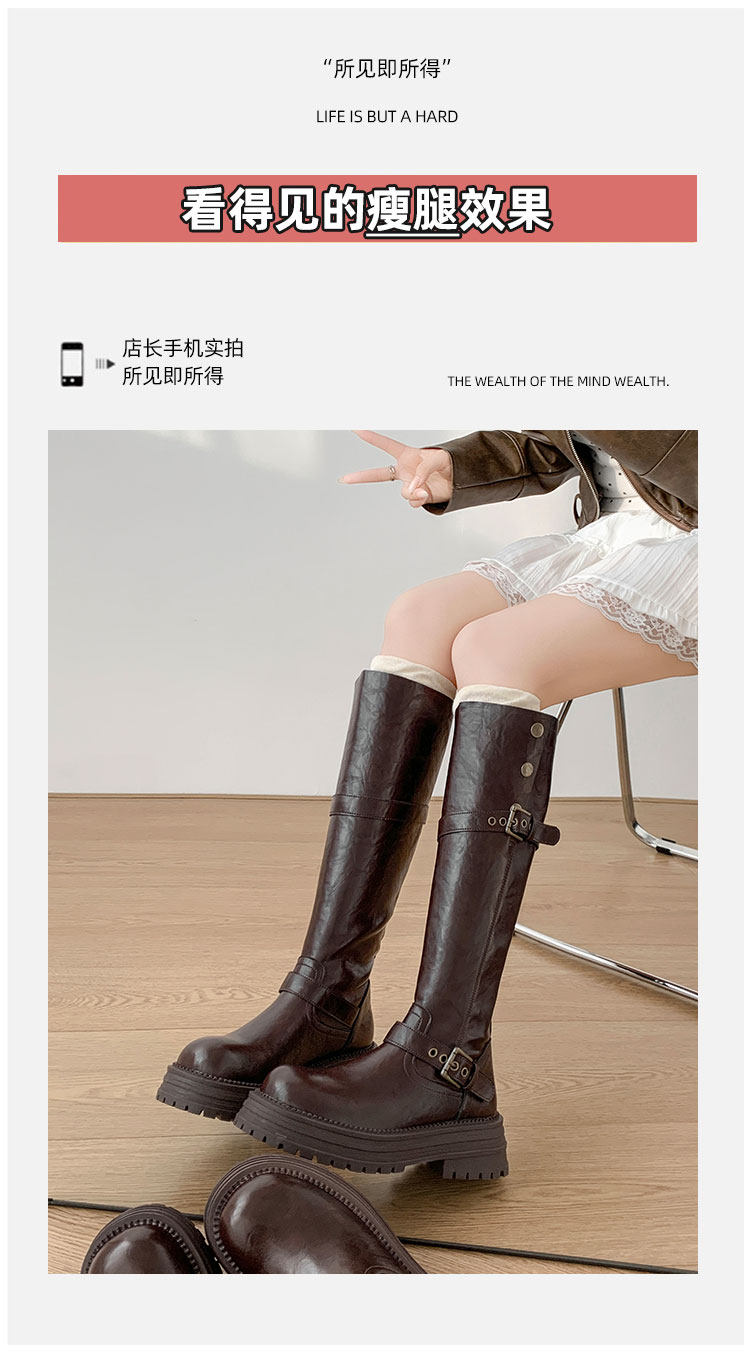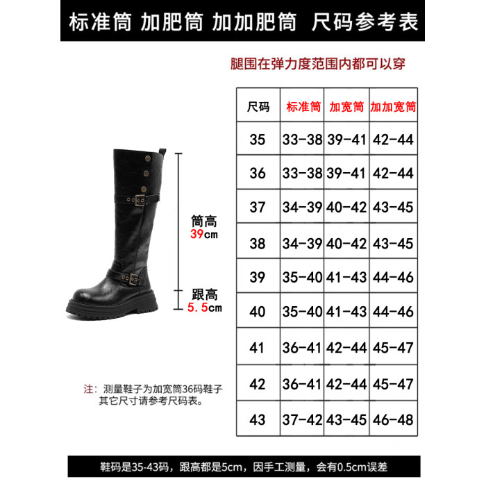 長筒靴女粗腿大筒圍厚底高筒靴顯瘦靴子騎士靴兩穿秋復古大碼女靴