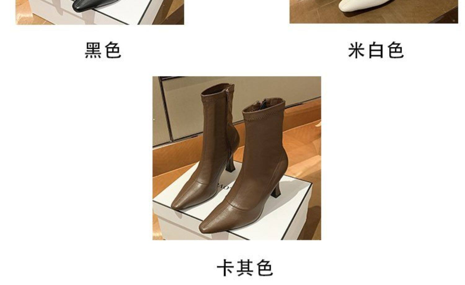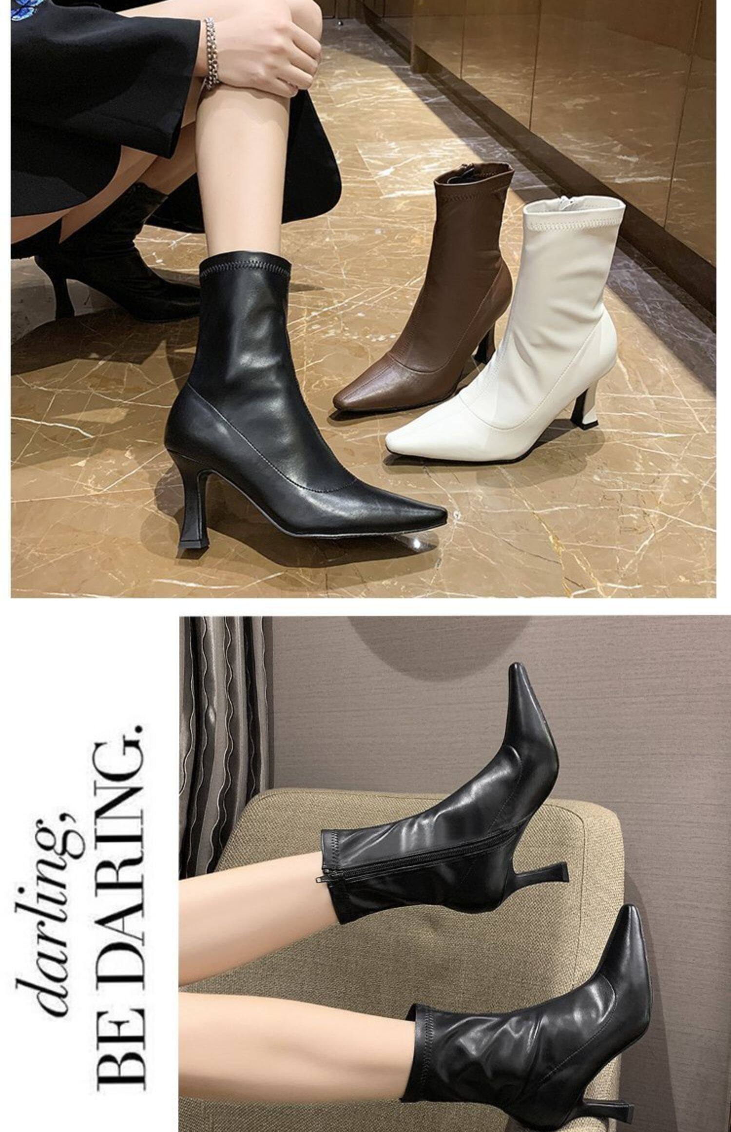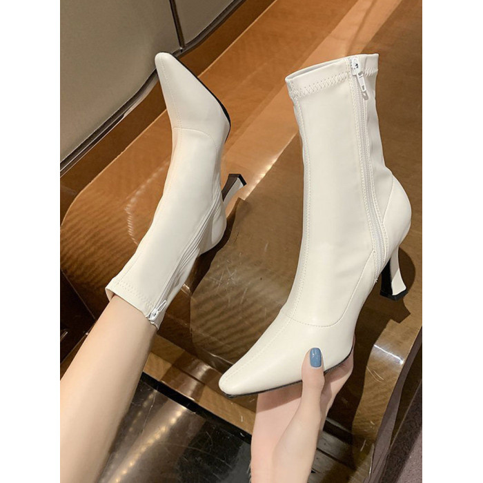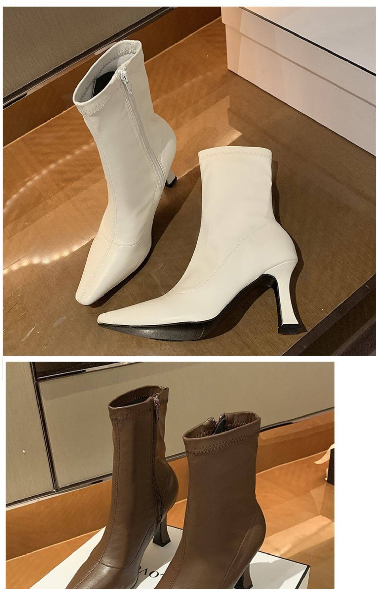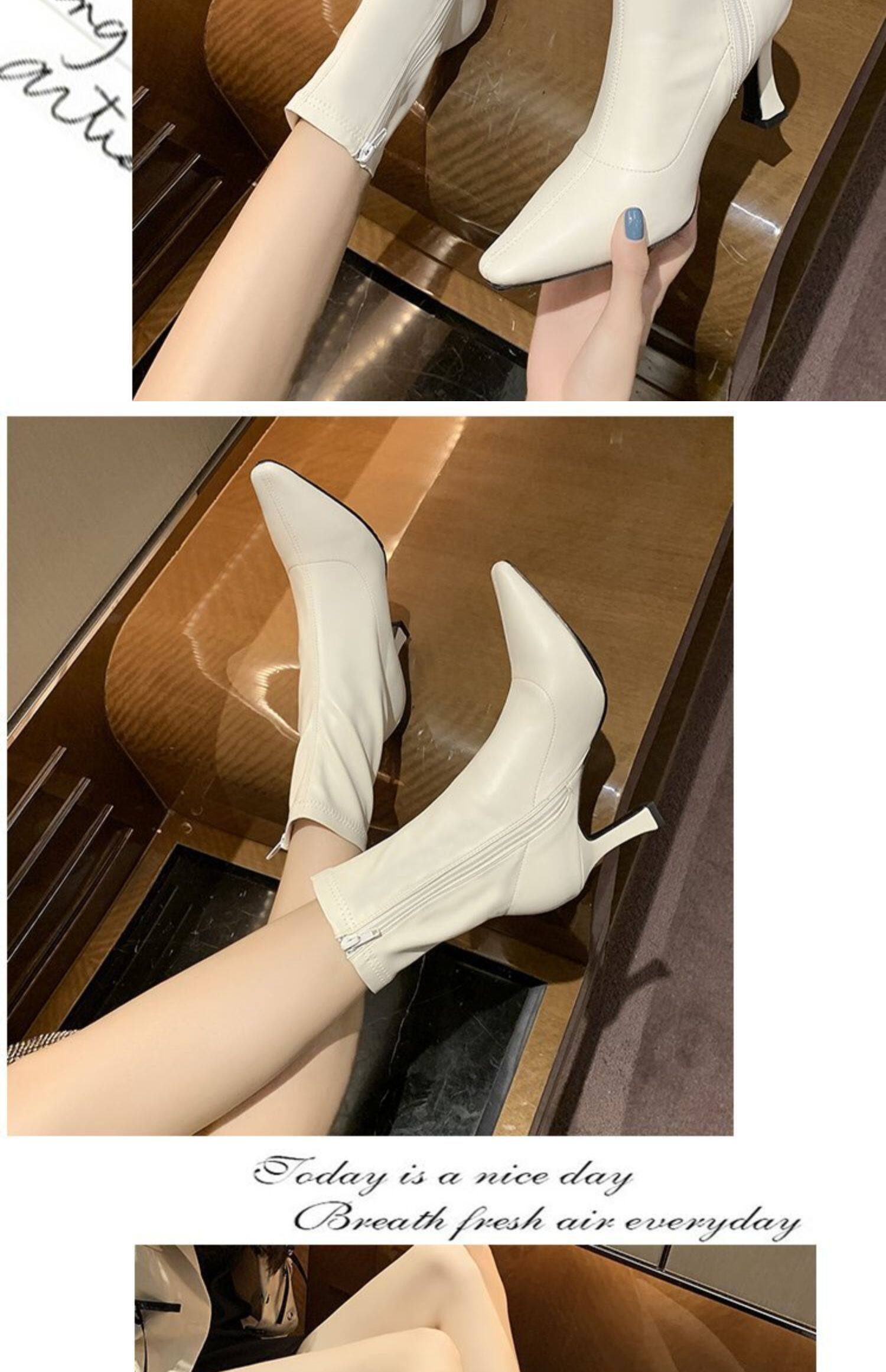 白色加絨短靴女2026春秋季新款時裝靴子尖頭細跟高跟鞋中筒馬丁靴
