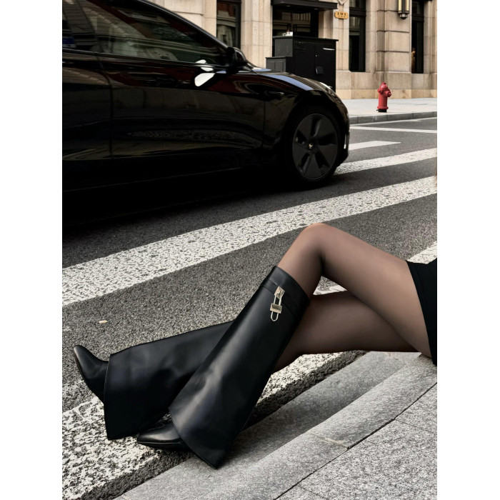 花小姐歐美鎖釦褲琯靴子女長筒靴2026年新款顯瘦不過膝高筒騎士靴