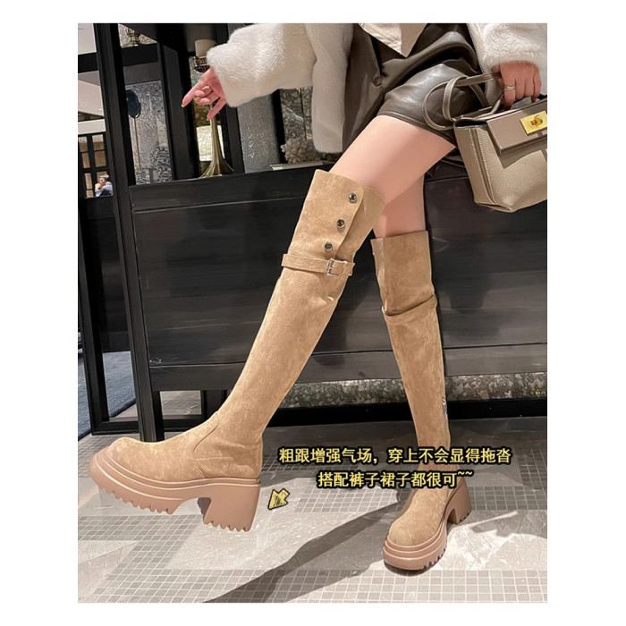 34~43碼美拉德兩穿繙折高跟過膝靴子大筒圍胖mm加寬長筒騎士靴女