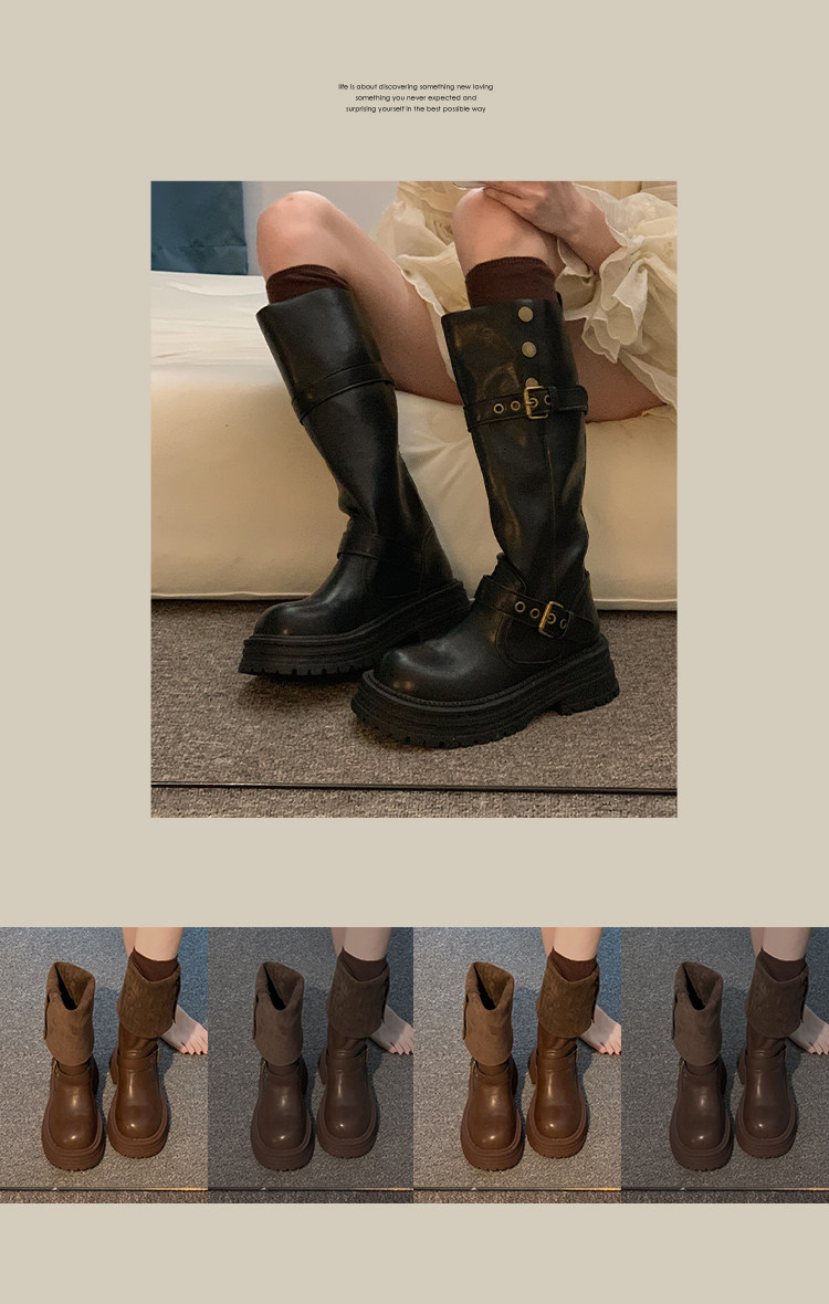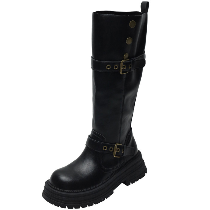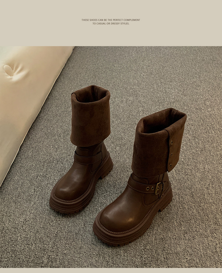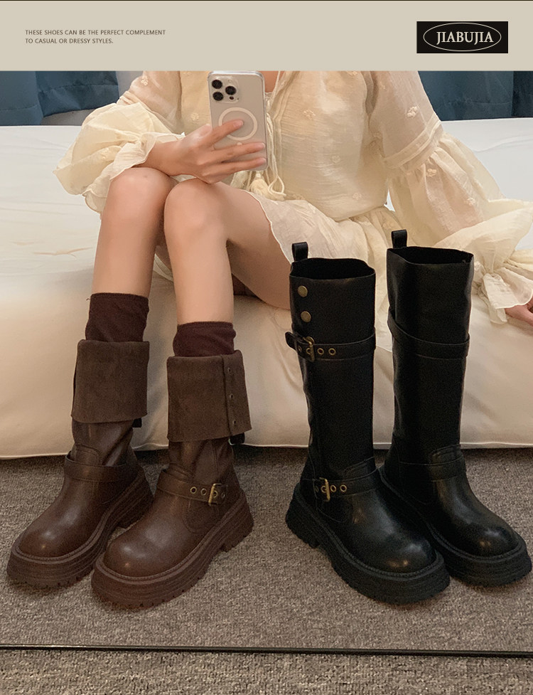 長筒靴女2026新款春季靴子胖mm粗腿高筒靴加絨騎士靴小個子馬丁靴