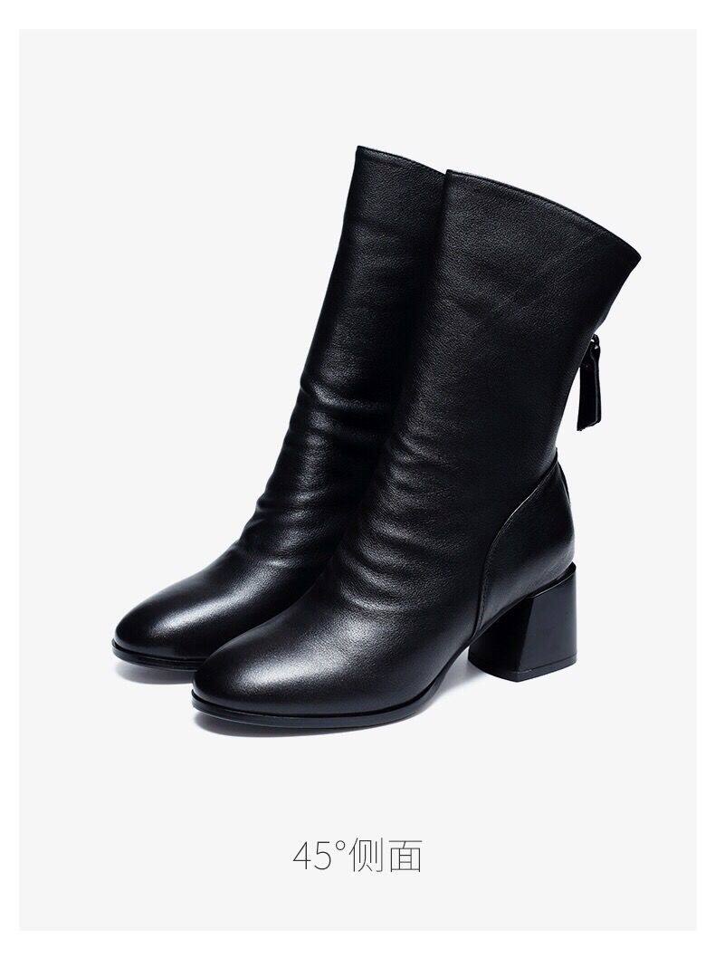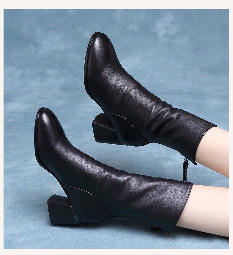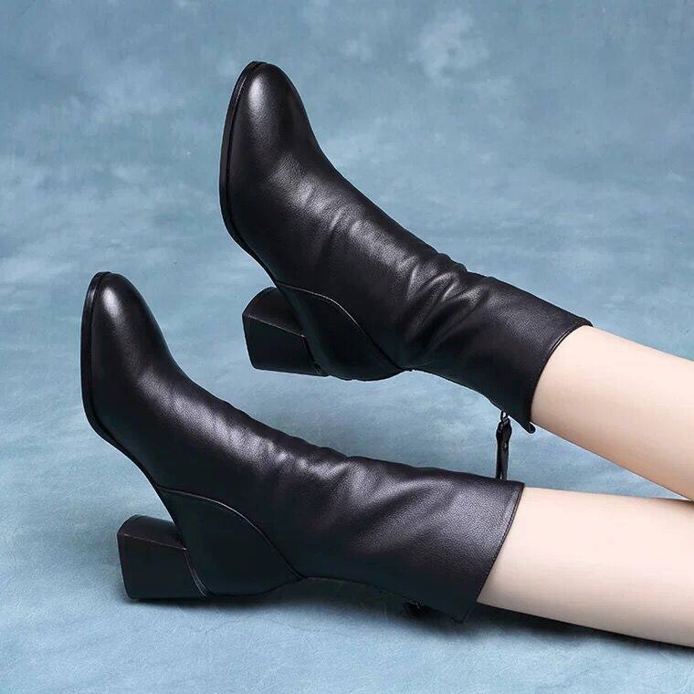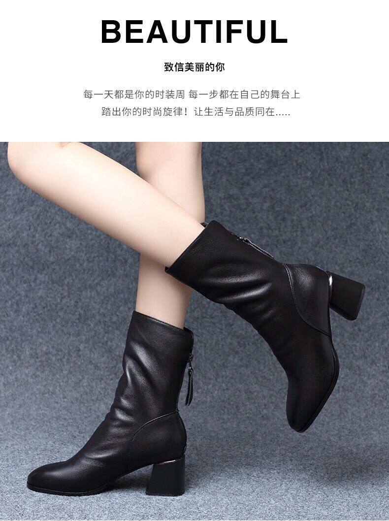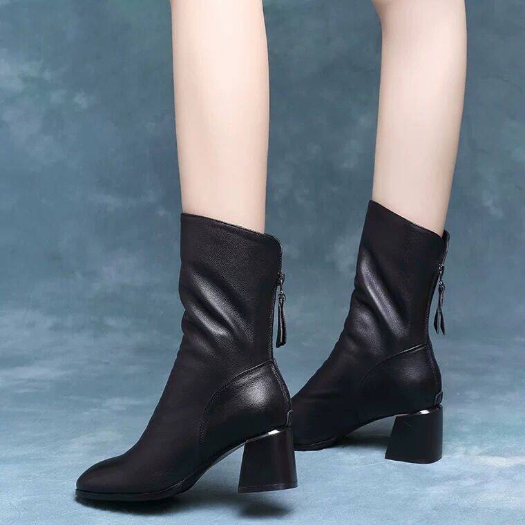 2025真軟皮短靴女中跟中筒靴粗跟馬丁靴瘦瘦靴舒適網紅女靴子鞋