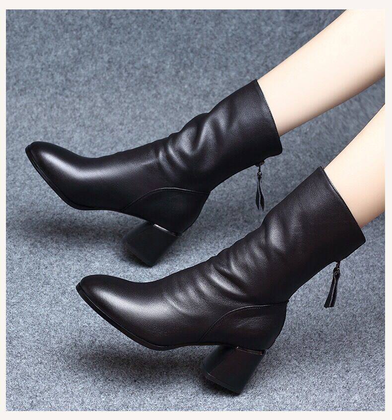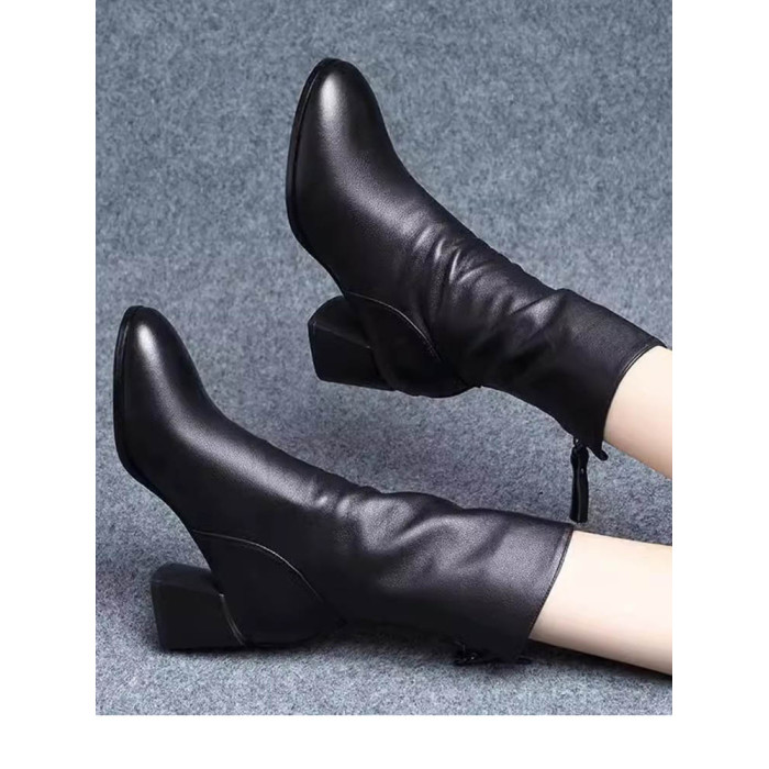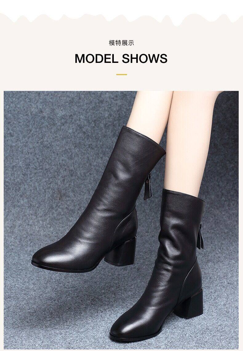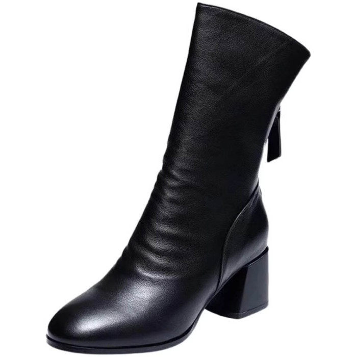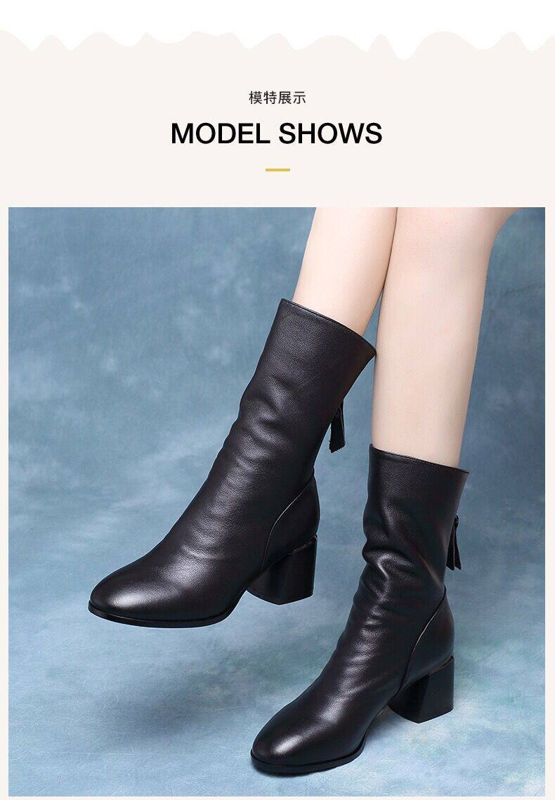 2025真軟皮短靴女中跟中筒靴粗跟馬丁靴瘦瘦靴舒適網紅女靴子鞋