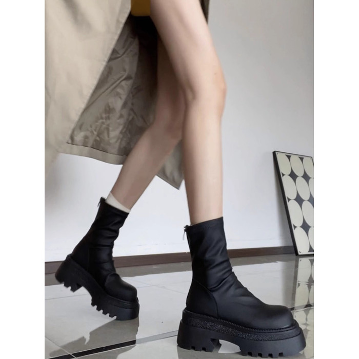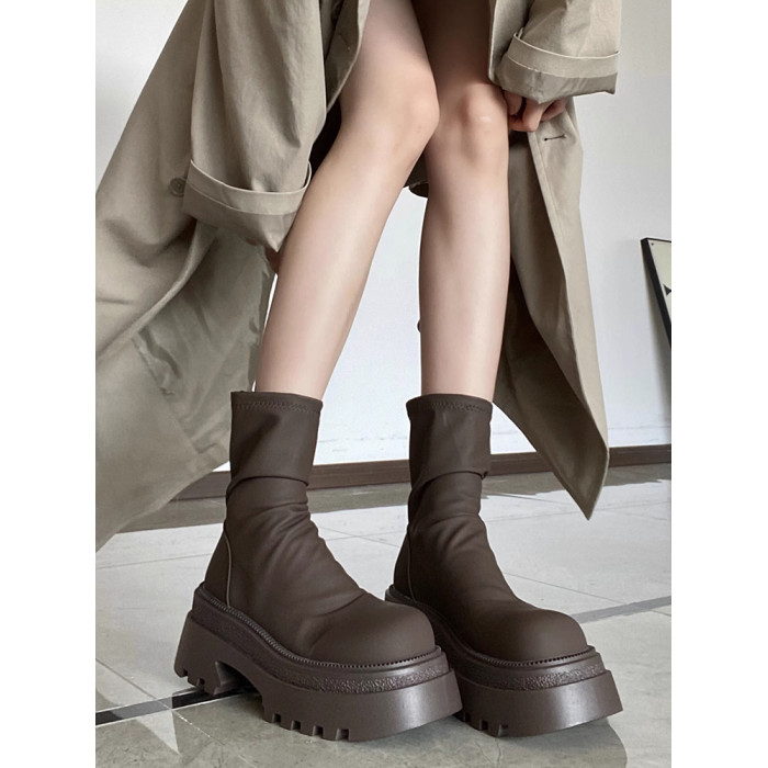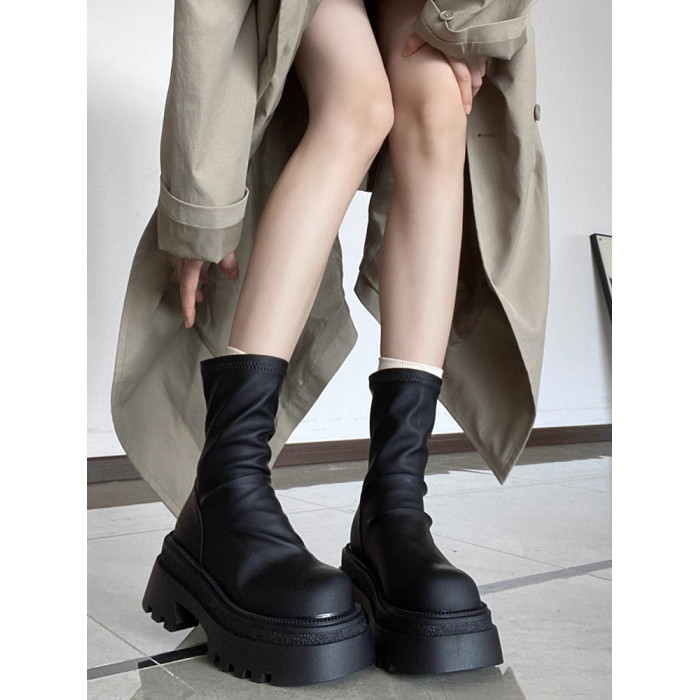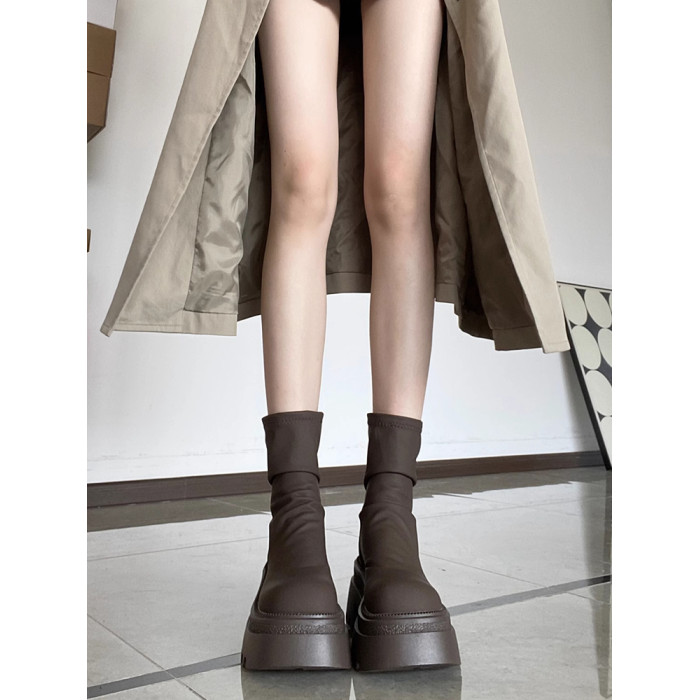 厚底彈力靴短靴女2026秋冬新款瘦瘦靴百搭顯瘦堆堆靴小個子高跟靴