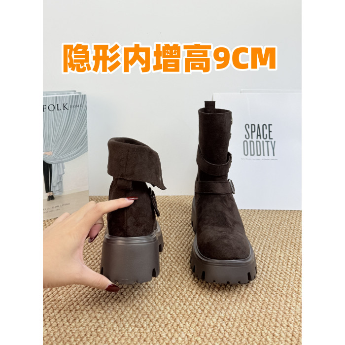 真皮款內增高小個子美拉德馬丁靴女兩穿繙折西部牛仔靴廢土風靴子