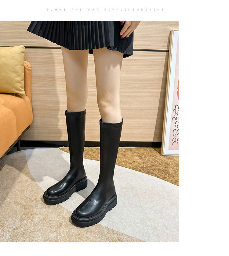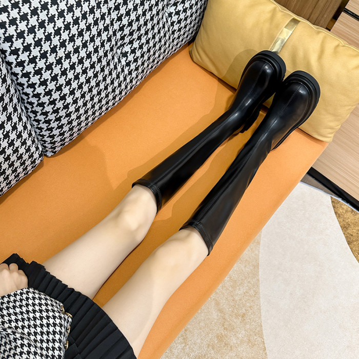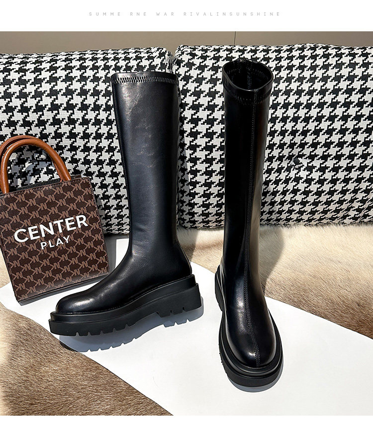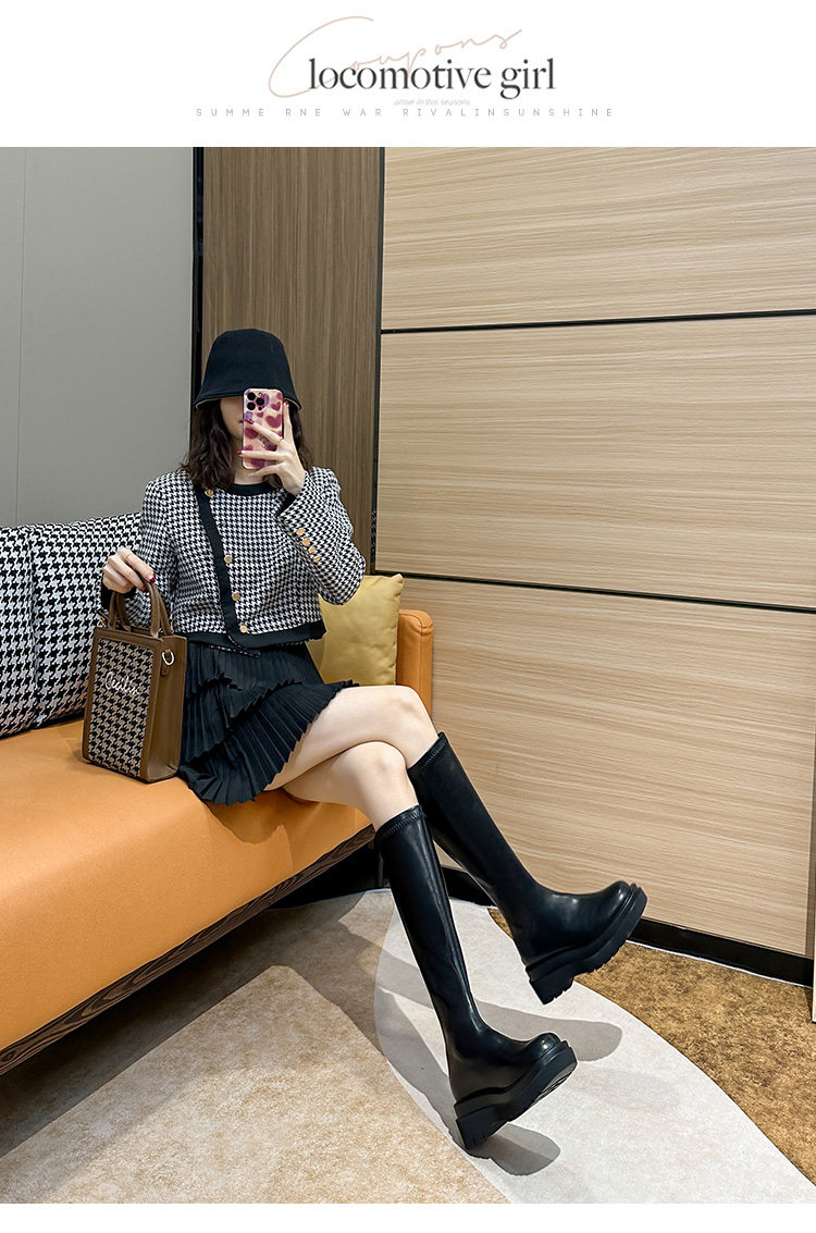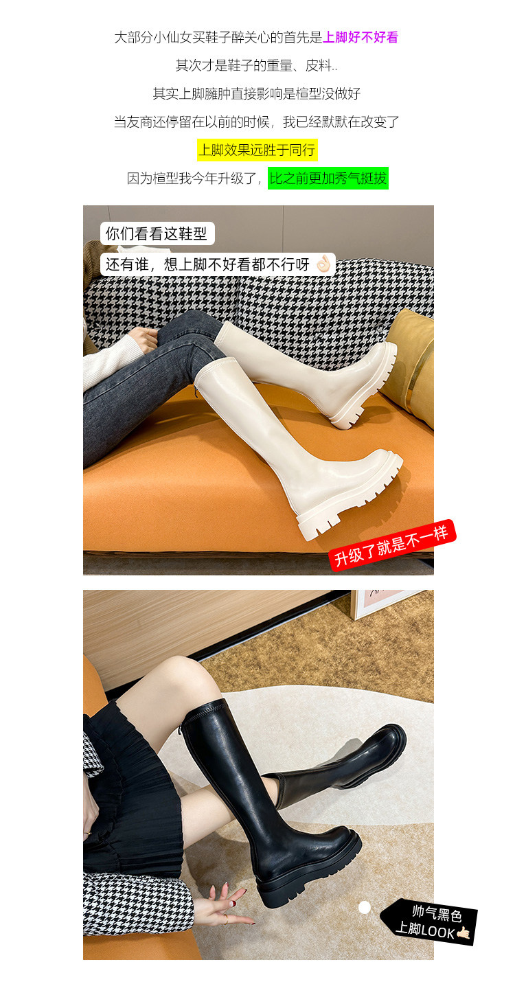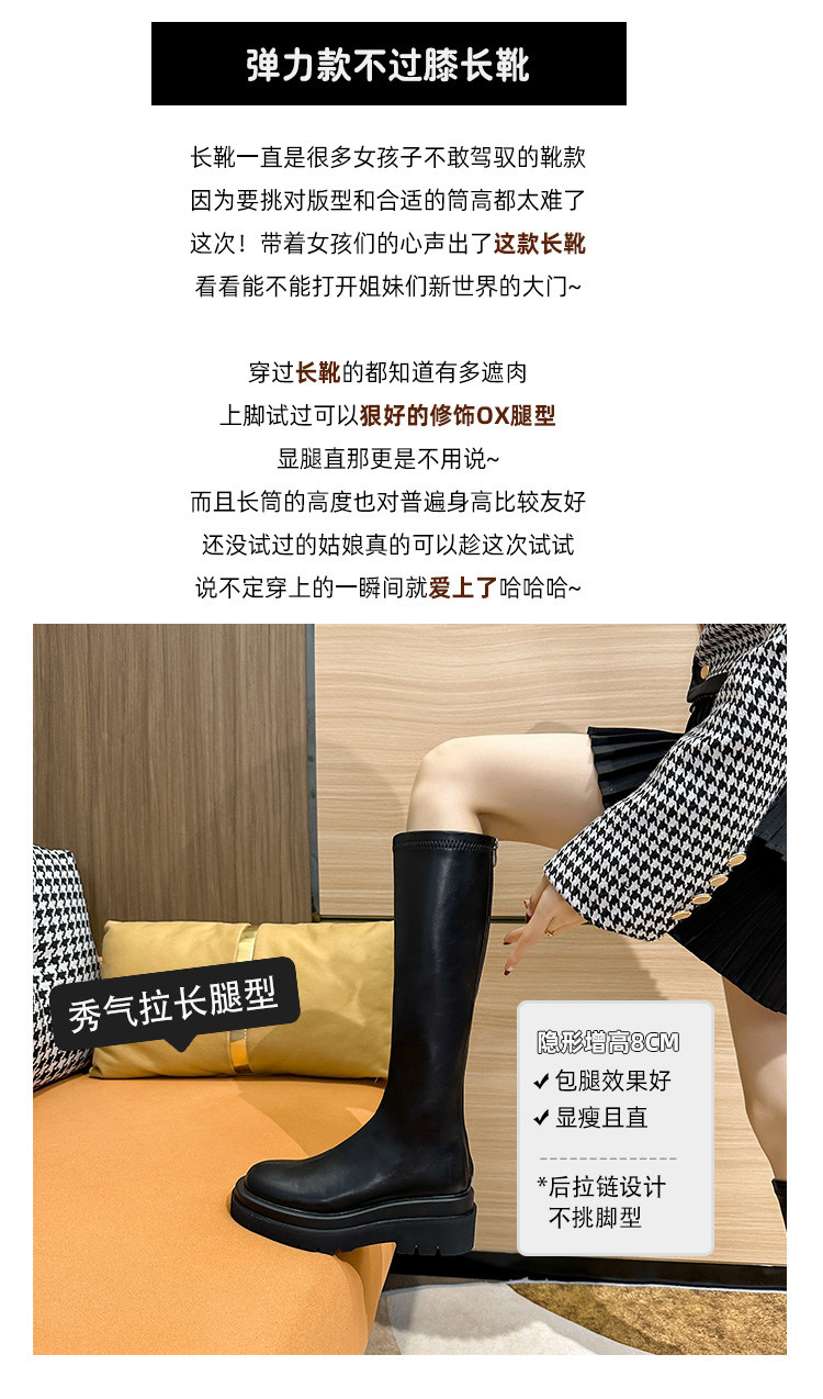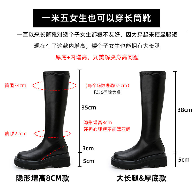內增高小個子厚底長靴子不過膝高筒騎士靴2026秋新款粗跟長筒靴女