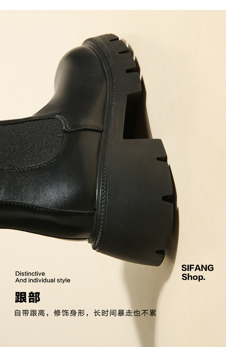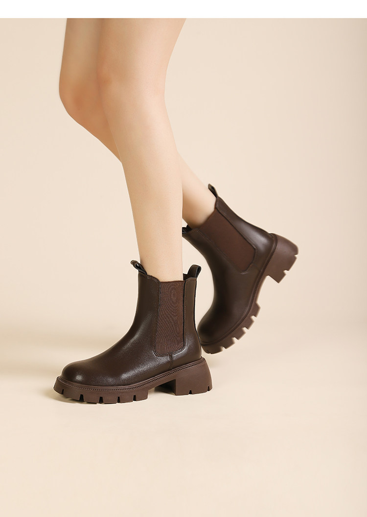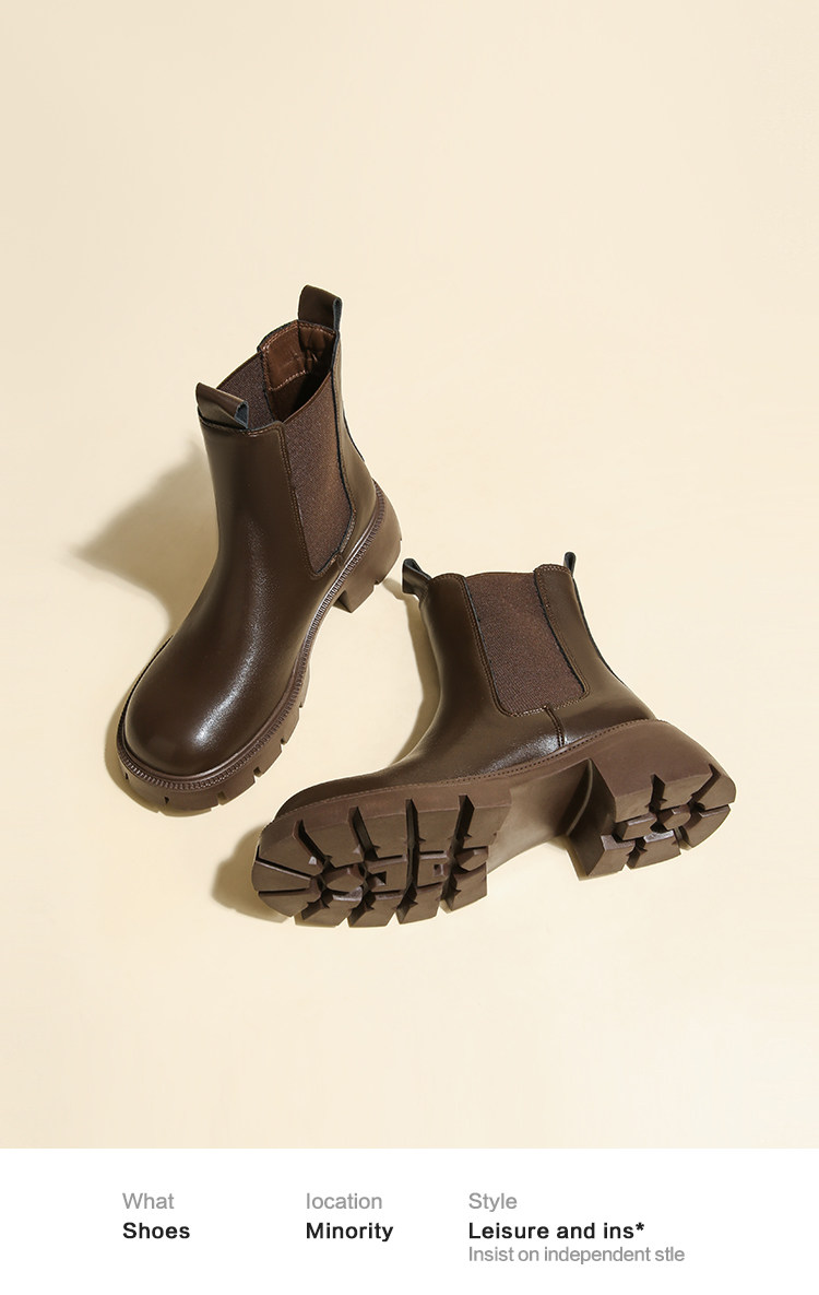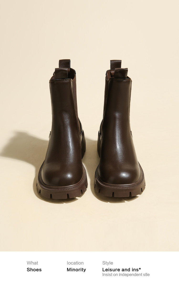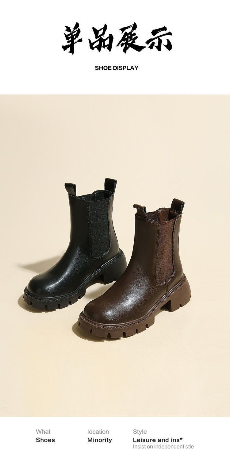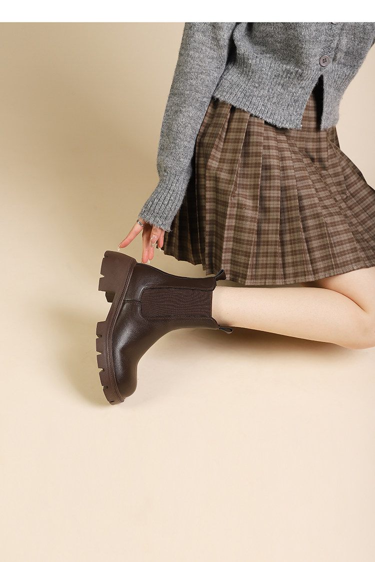 大漂亮厚底切爾西靴女加絨英倫風馬丁靴棕色菸筒靴大碼短靴41一43