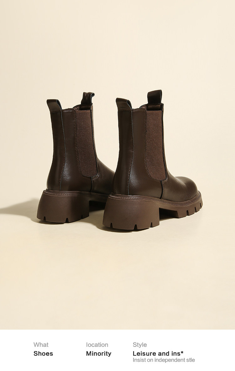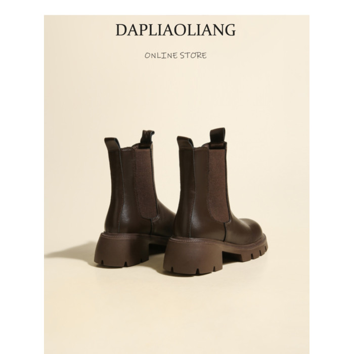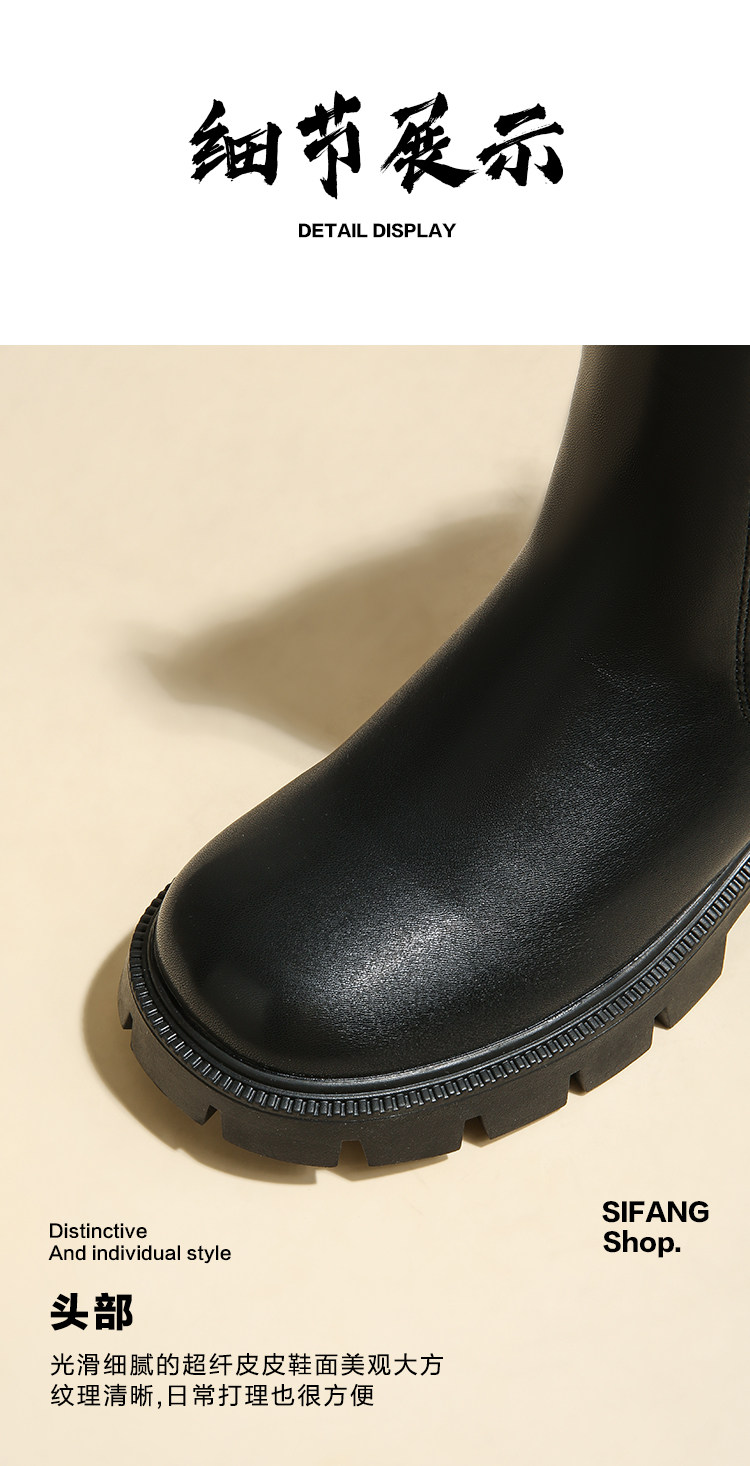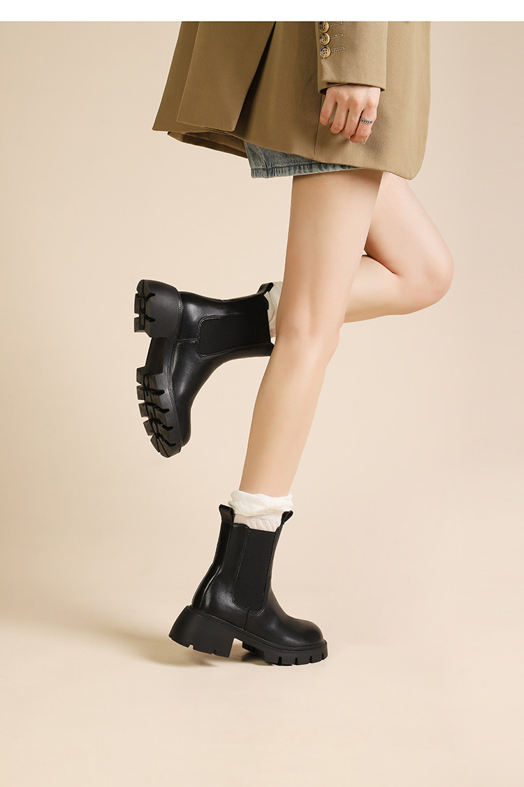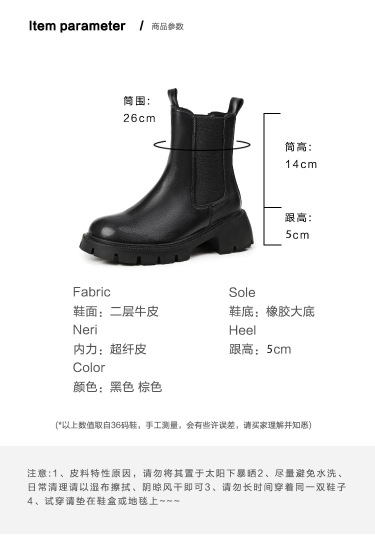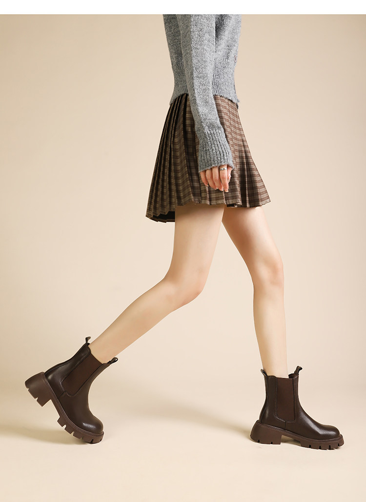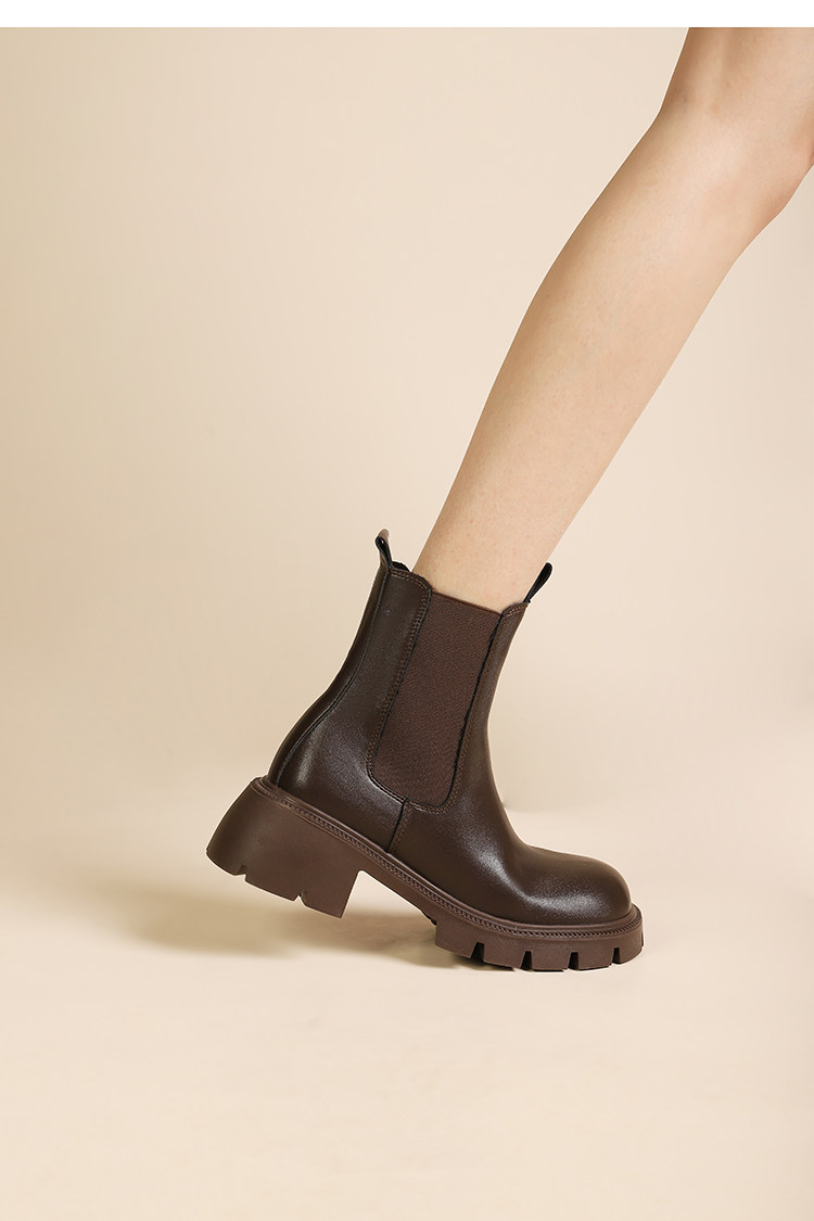 大漂亮厚底切爾西靴女加絨英倫風馬丁靴棕色菸筒靴大碼短靴41一43