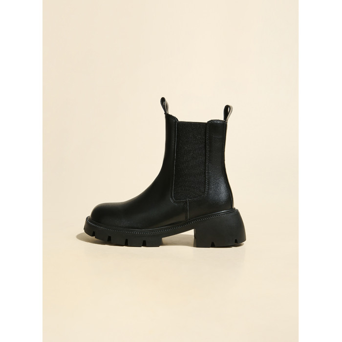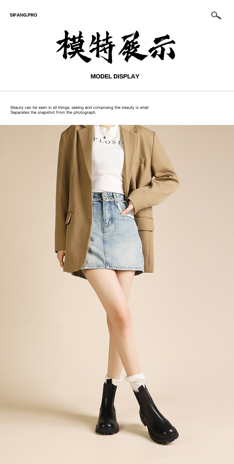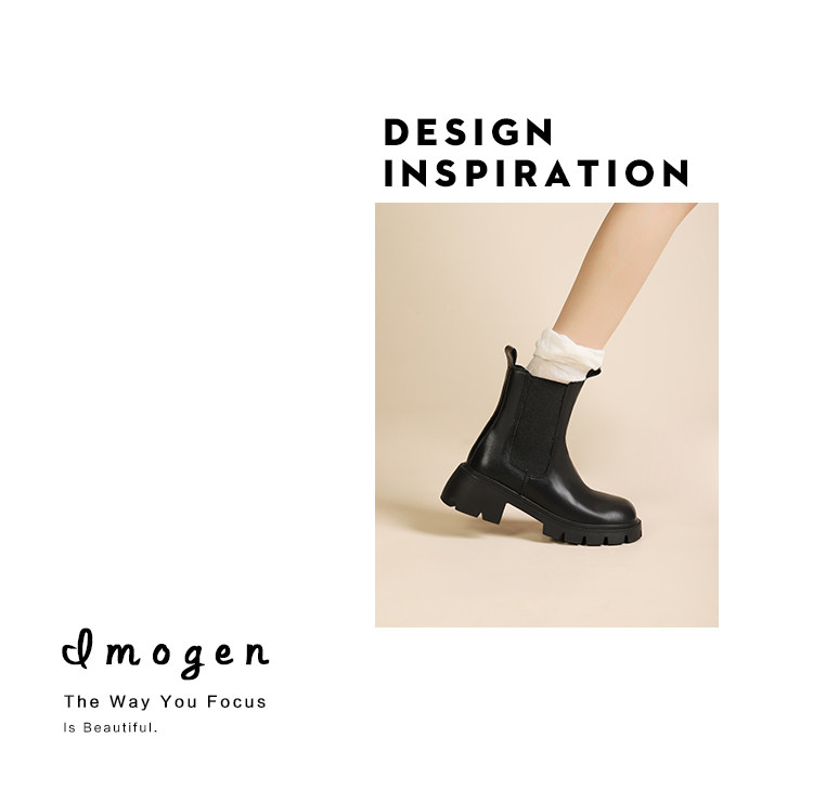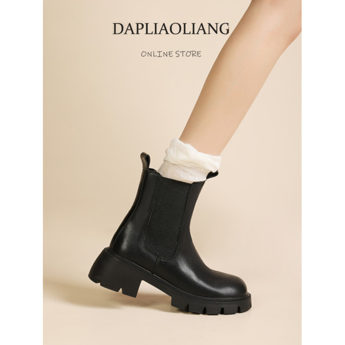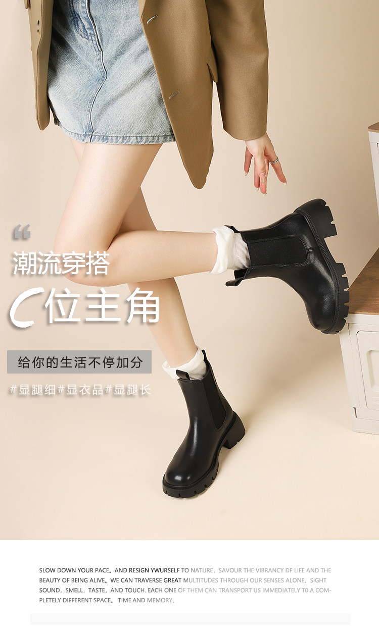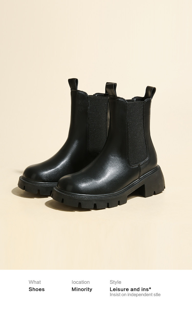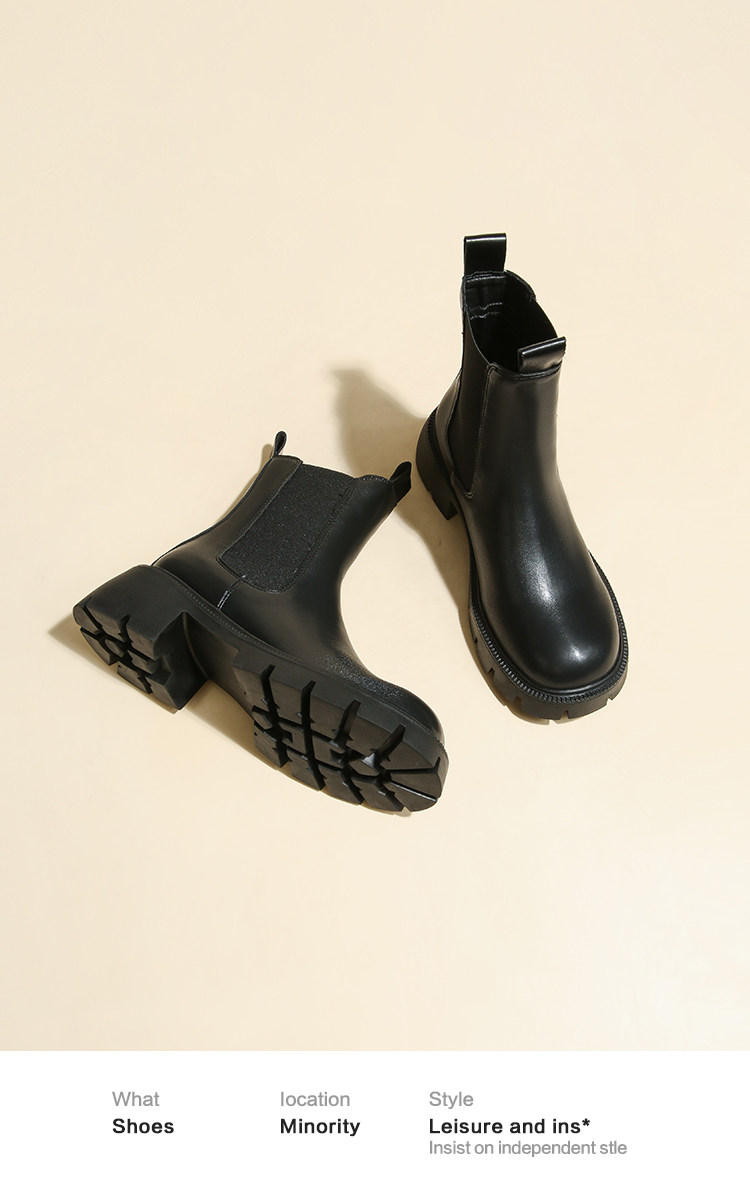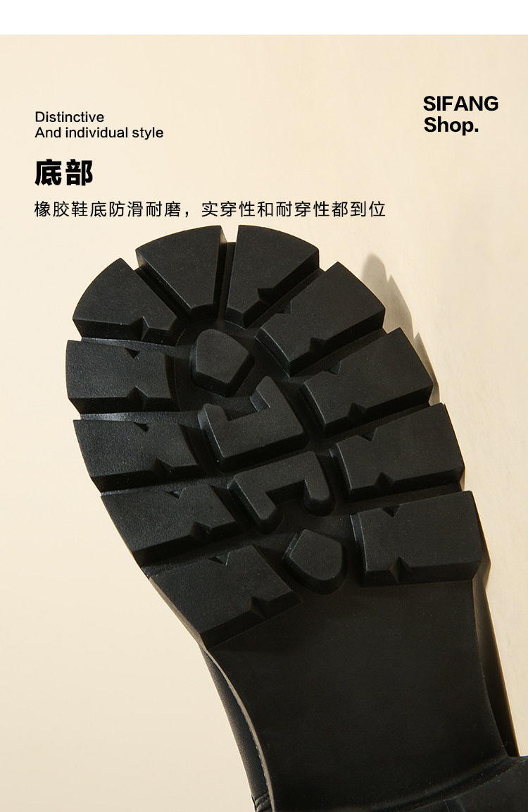 大漂亮厚底切爾西靴女加絨英倫風馬丁靴棕色菸筒靴大碼短靴41一43