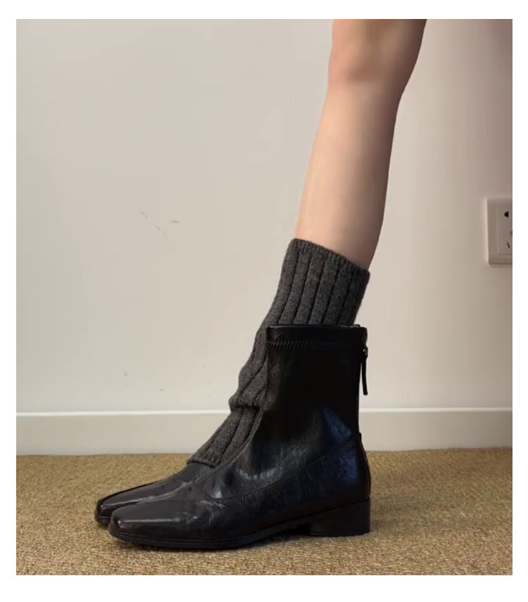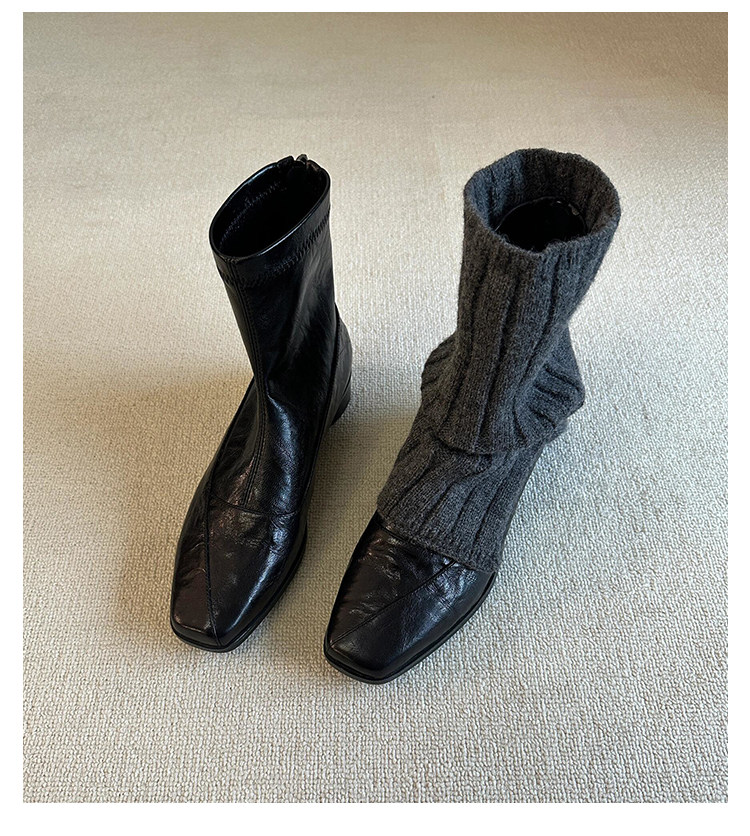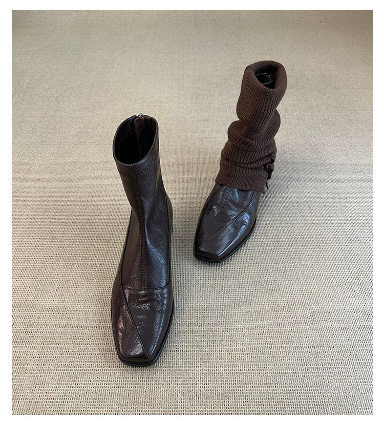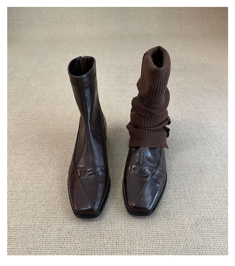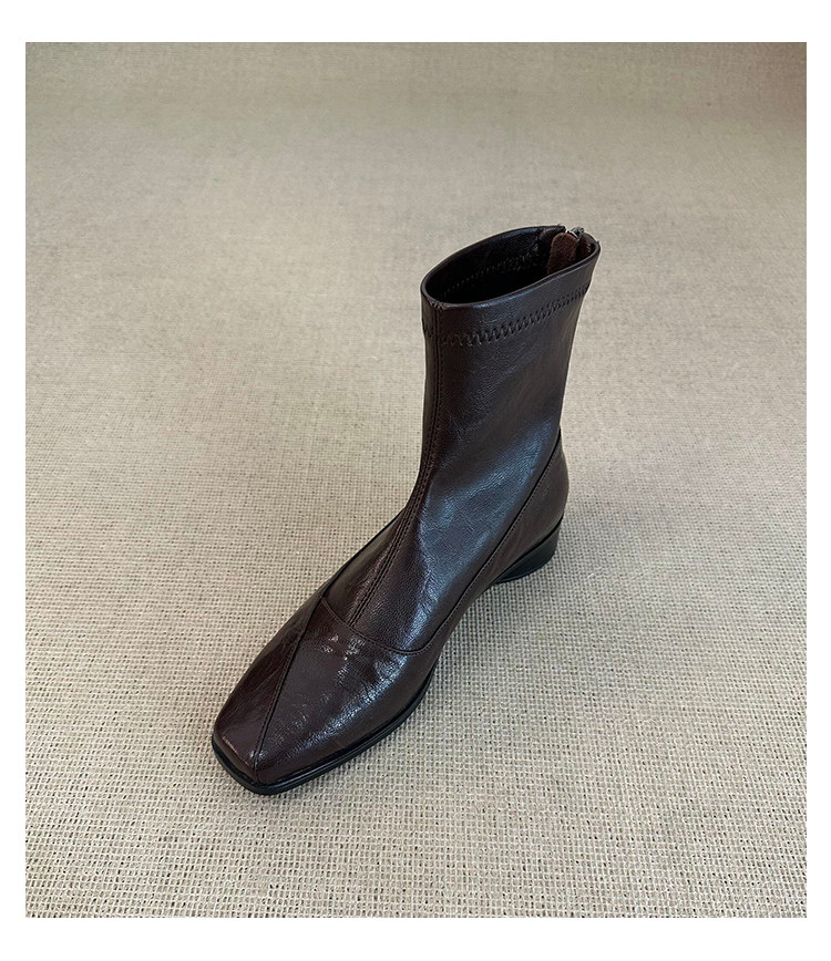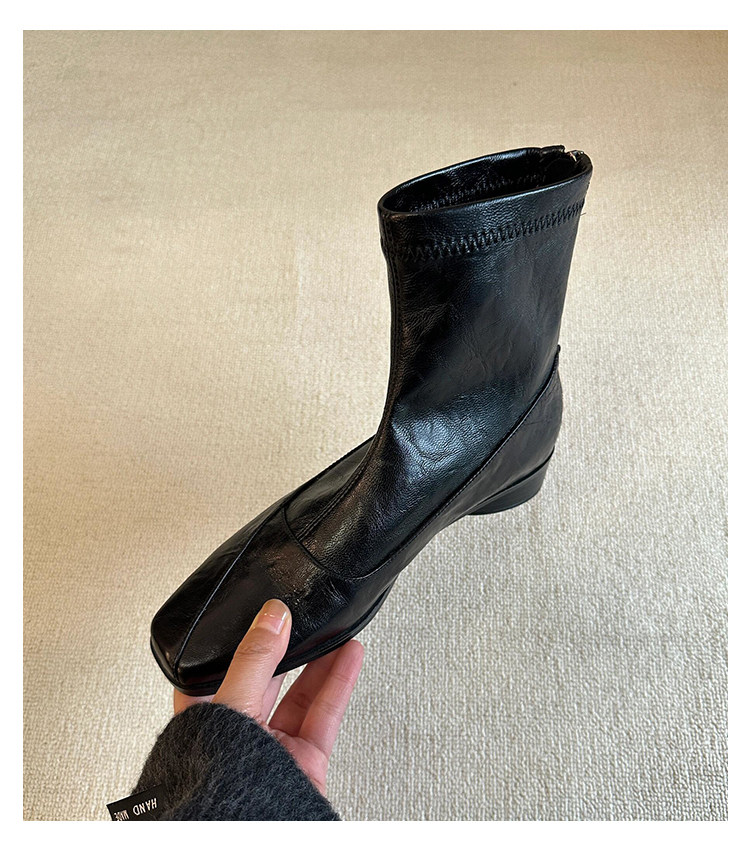 歐洲站復古方頭短靴顯瘦後拉鍊通勤氣質粗跟瘦瘦靴馬丁靴及踝裸靴