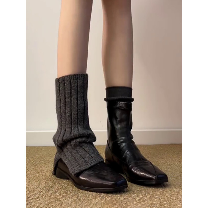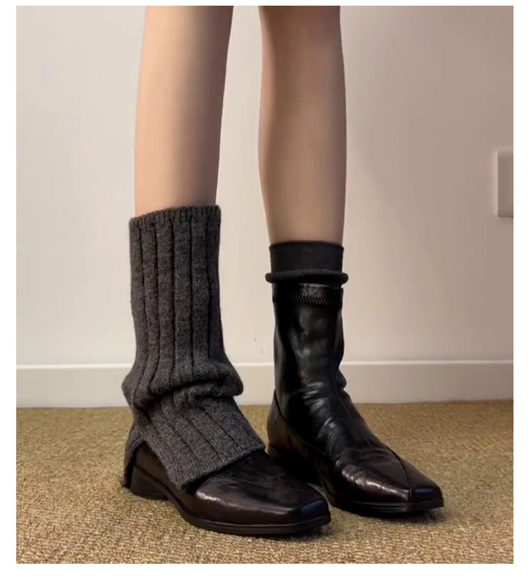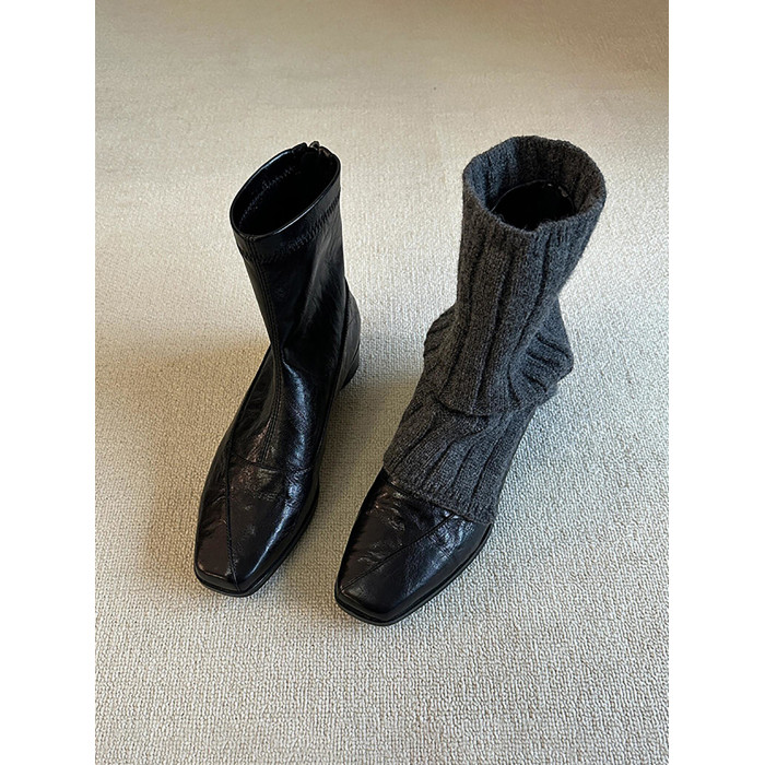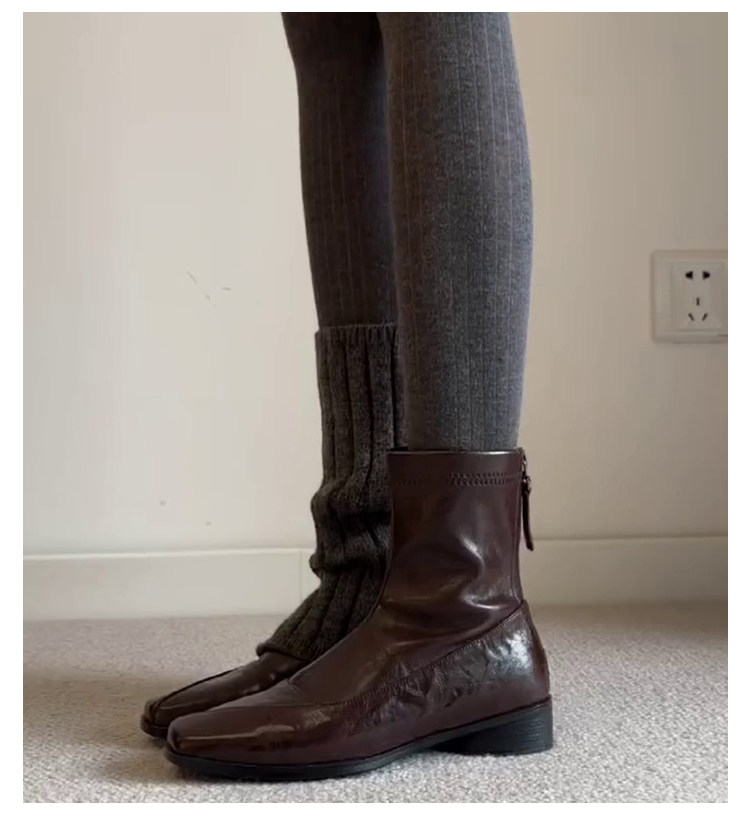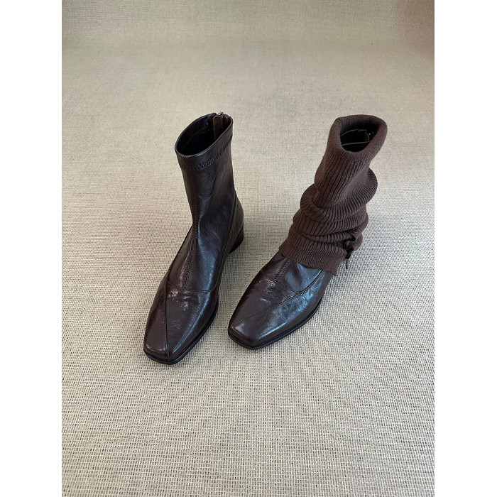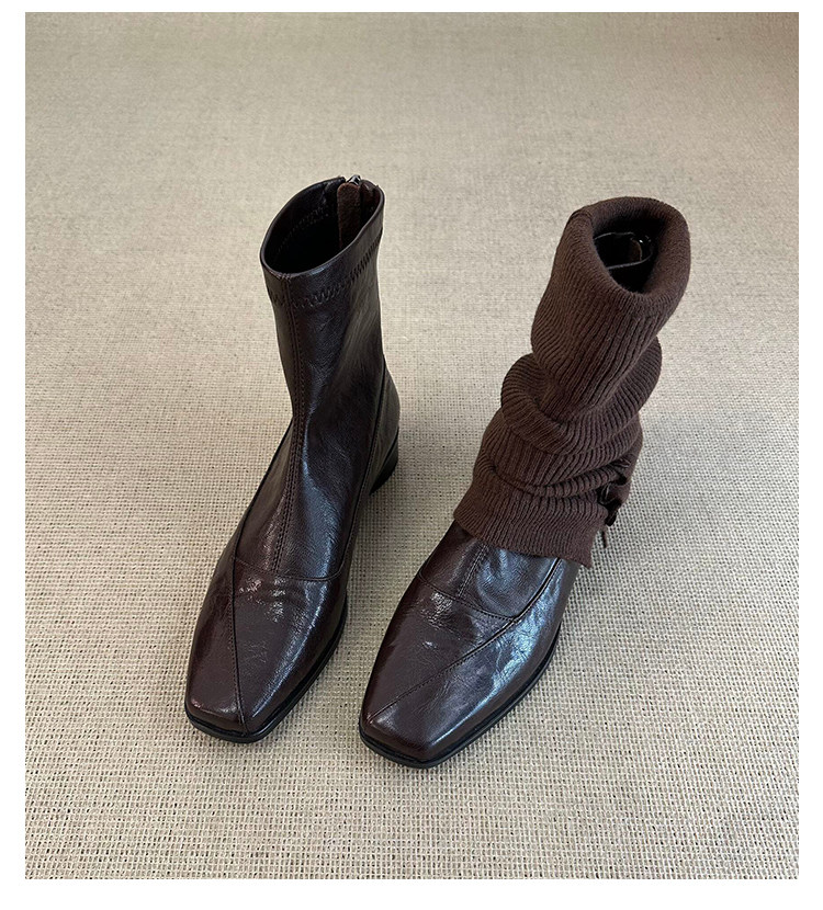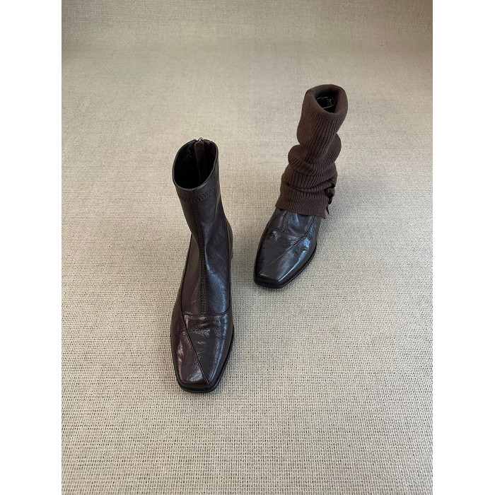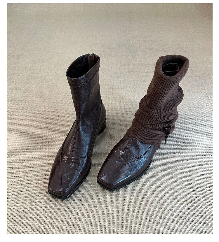 歐洲站復古方頭短靴顯瘦後拉鍊通勤氣質粗跟瘦瘦靴馬丁靴及踝裸靴
