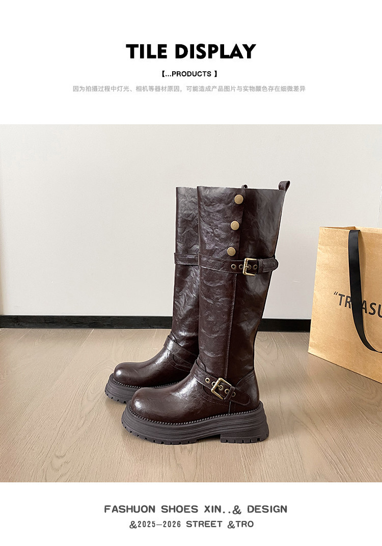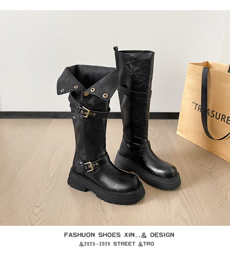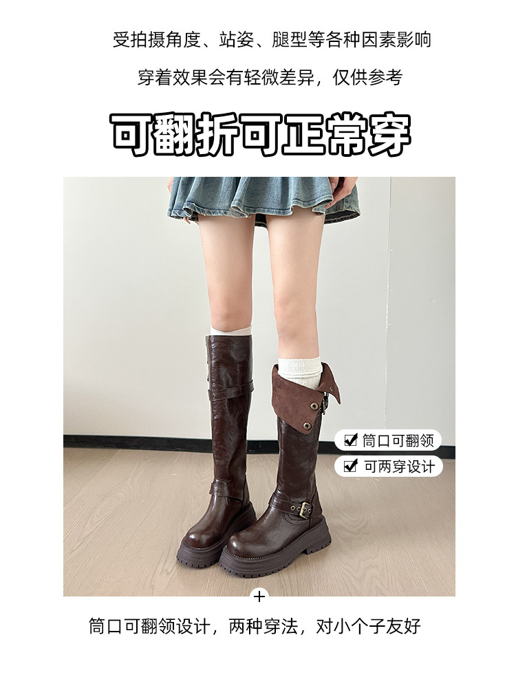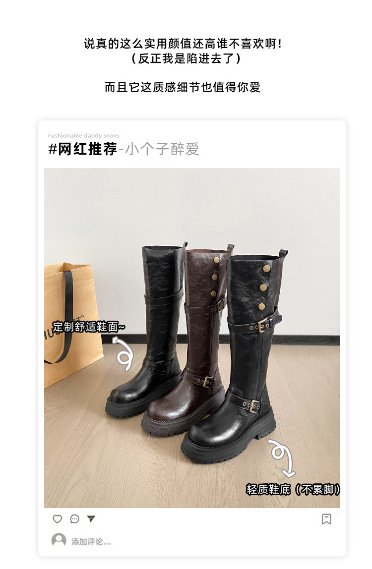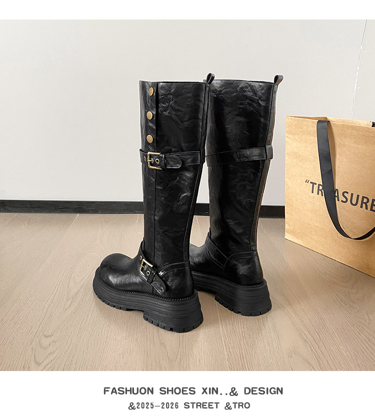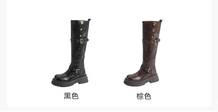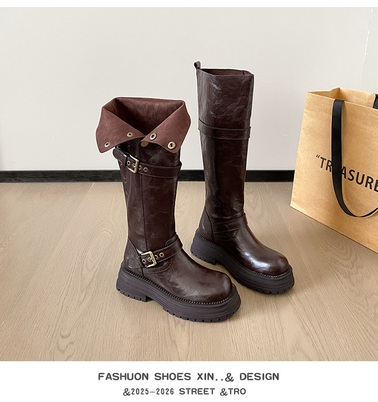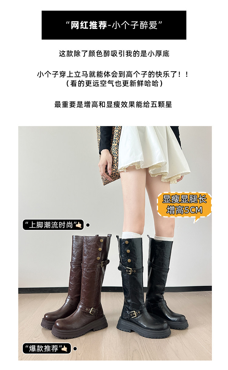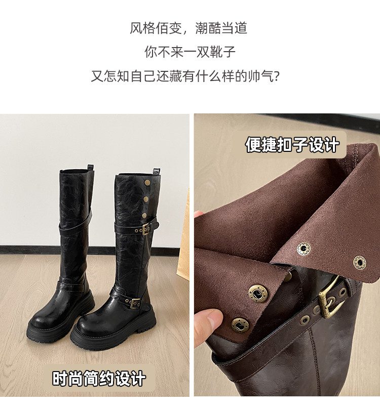 復古粗跟長筒靴秋冬新款百搭胖MM粗腿大筒圍顯瘦中筒騎士靴西部靴