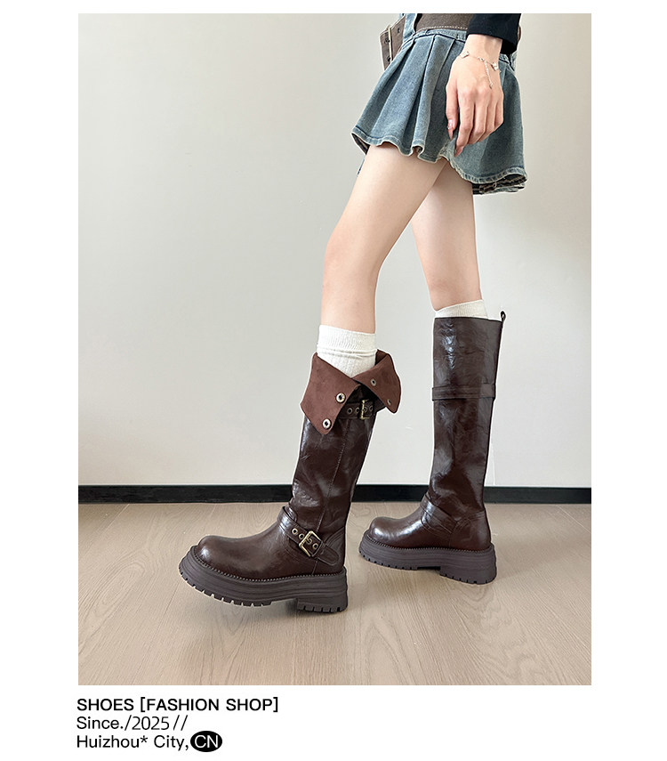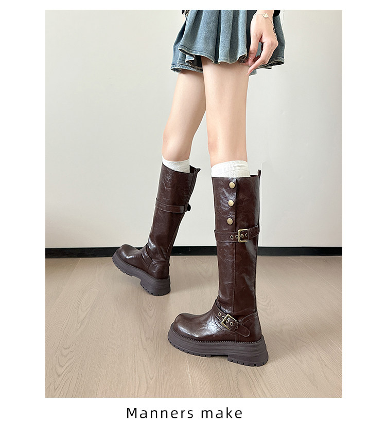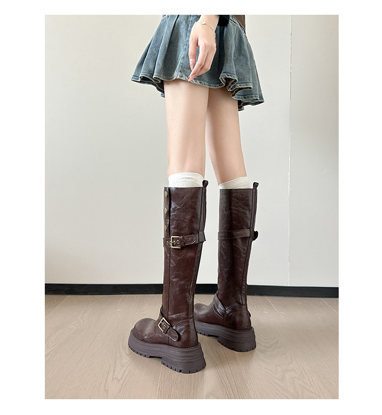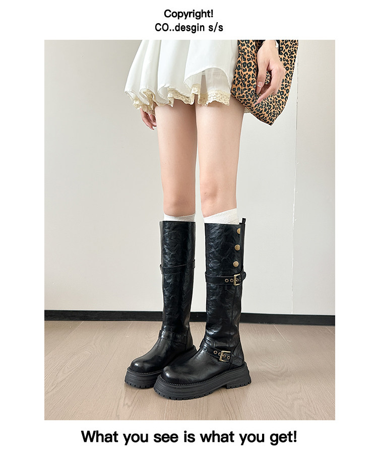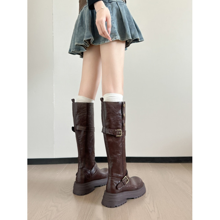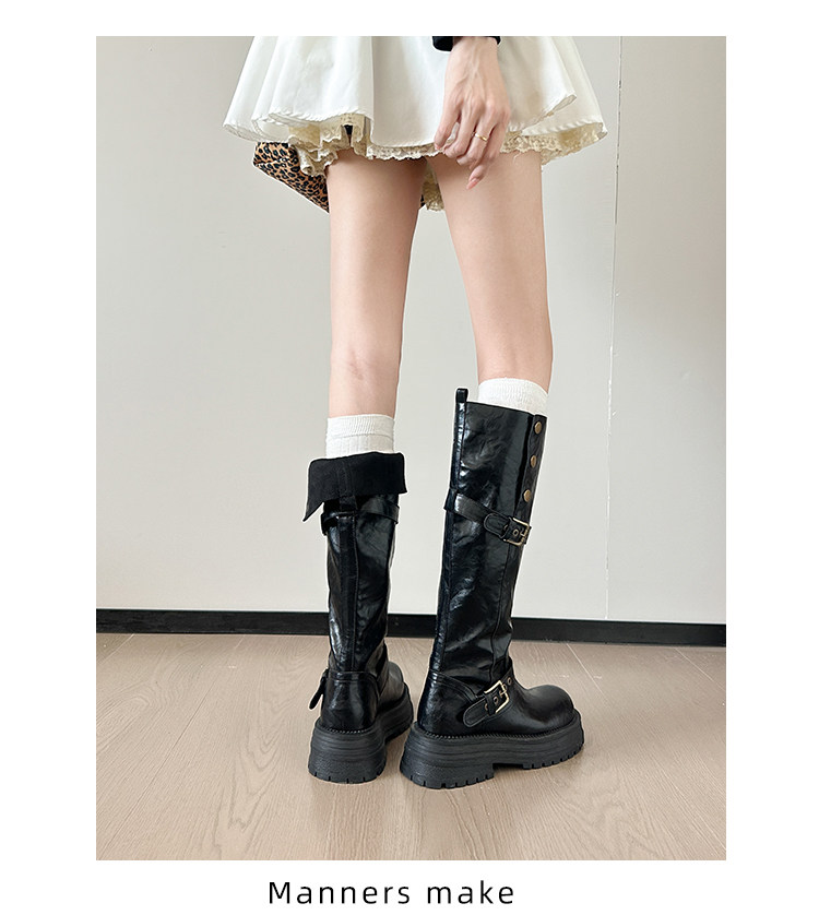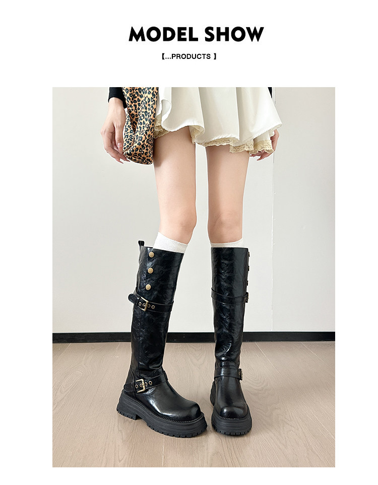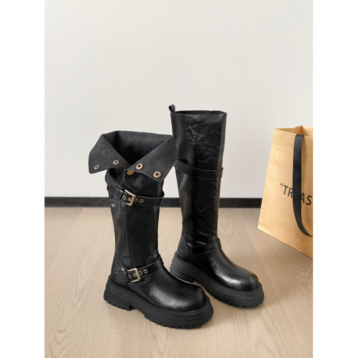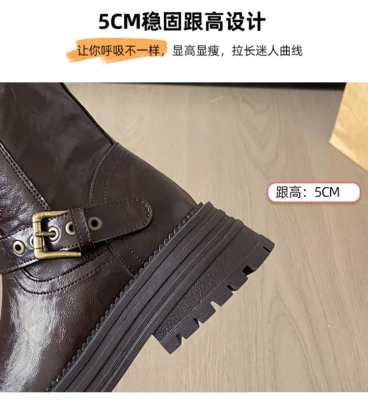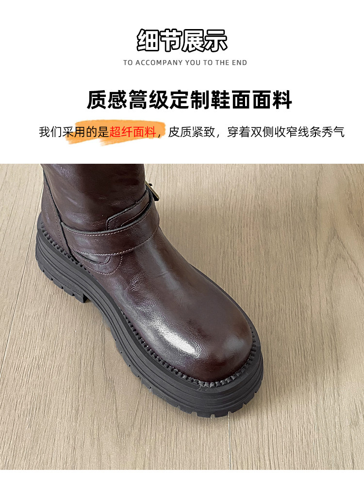 復古粗跟長筒靴秋冬新款百搭胖MM粗腿大筒圍顯瘦中筒騎士靴西部靴