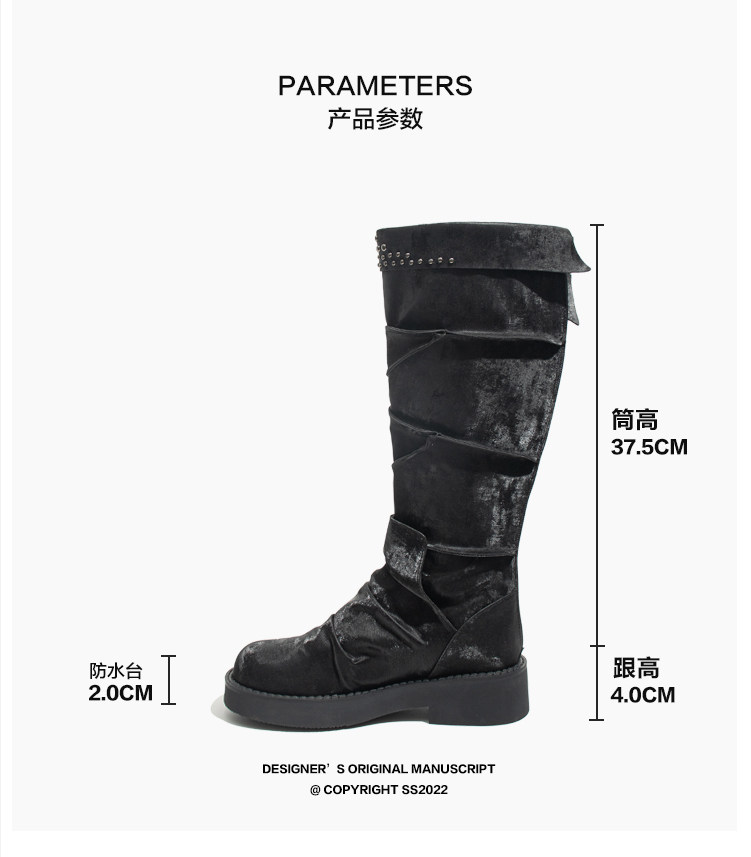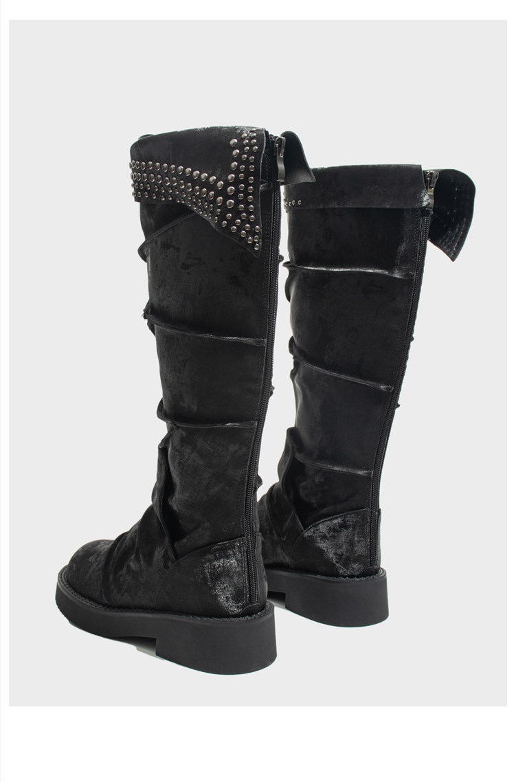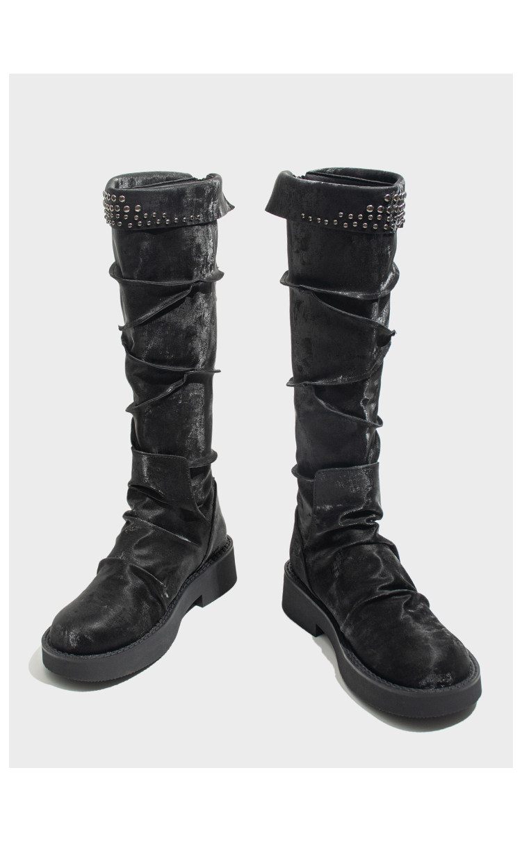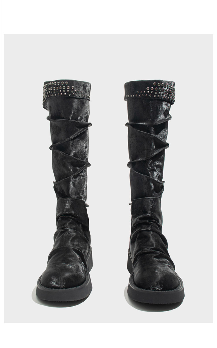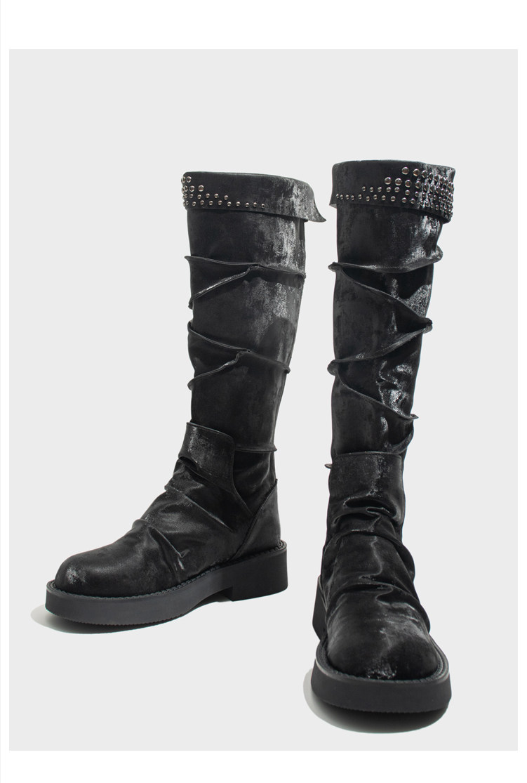 Visual focus 厚底長筒靴女重金屬鉚釘騎士靴辣妹y2k高筒機車靴子