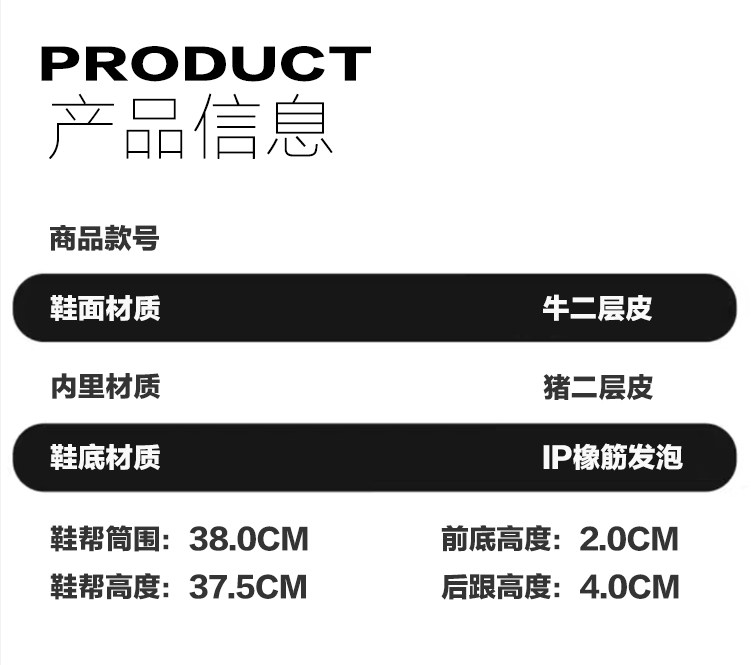 | 靴筒內裡材質 | 二層豬皮 |