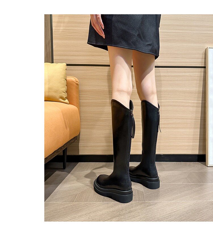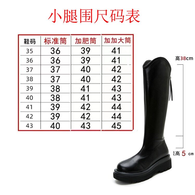 牛皮版~胖mm大筒圍V口騎士靴不過膝長筒靴小個子厚底增高顯瘦女靴