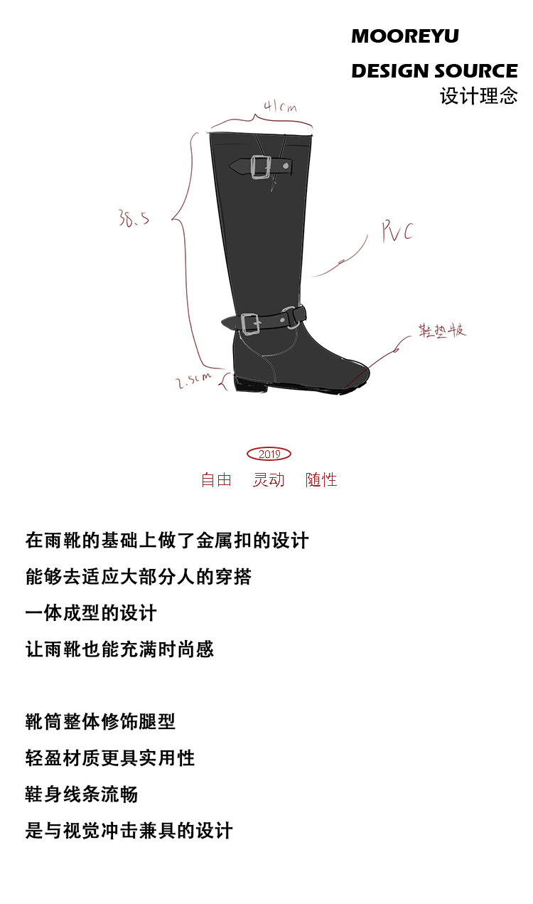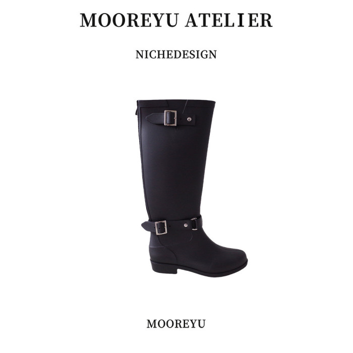 Mooreyu雨靴子女2026年大筒圍顯瘦高筒靴粗腿圓頭不過膝長筒靴女