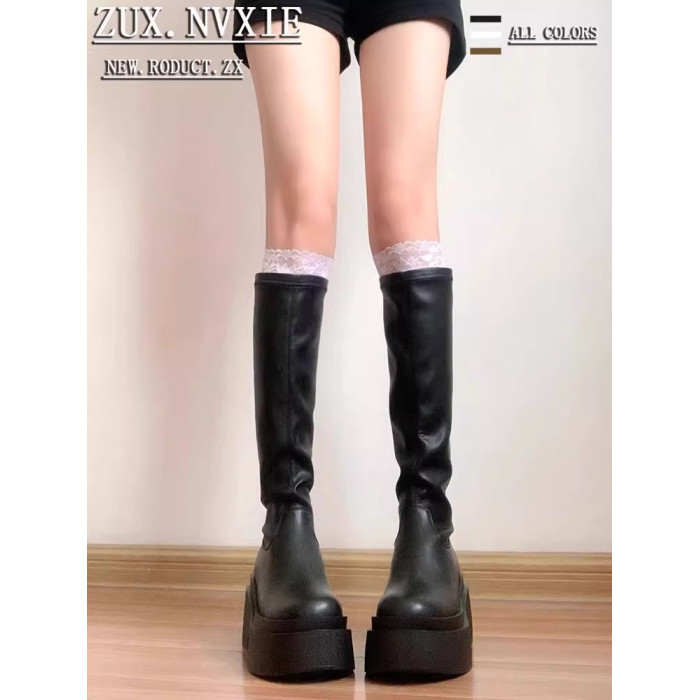 厚底長筒靴女2026年春秋新款不過膝彈力瘦瘦靴增高筒騎士辣妹長靴
