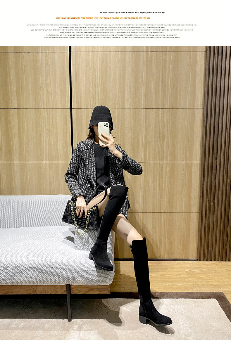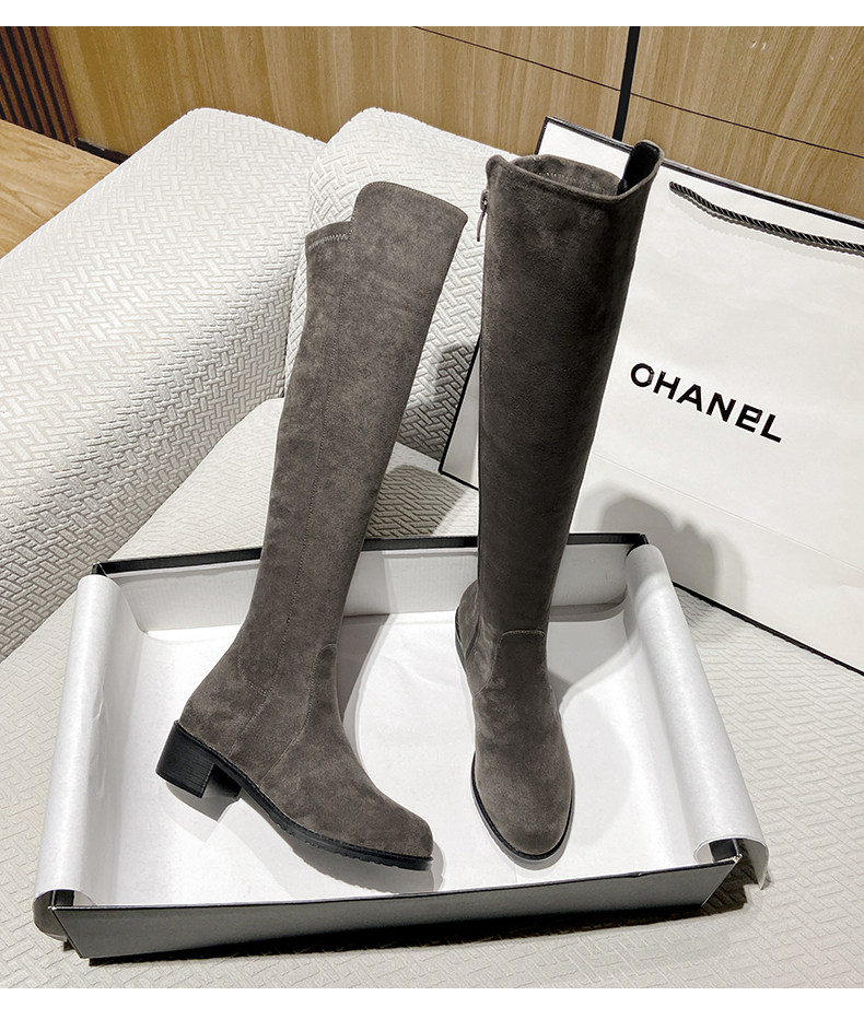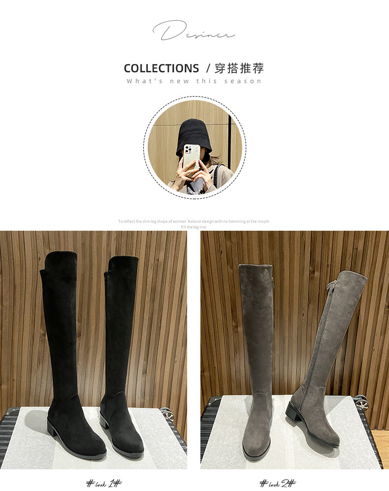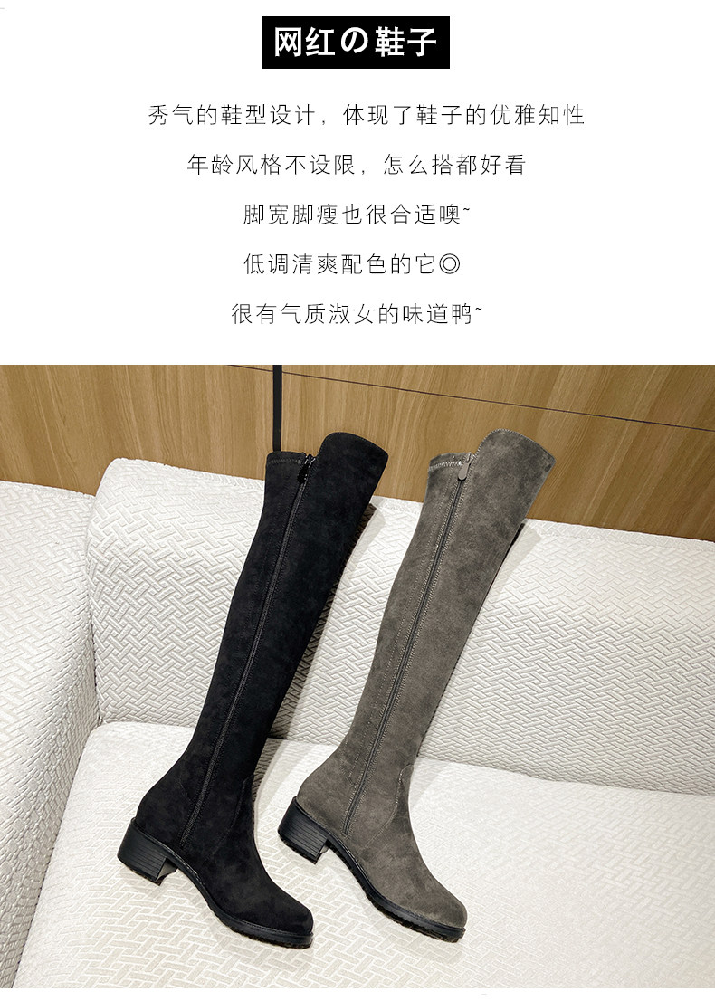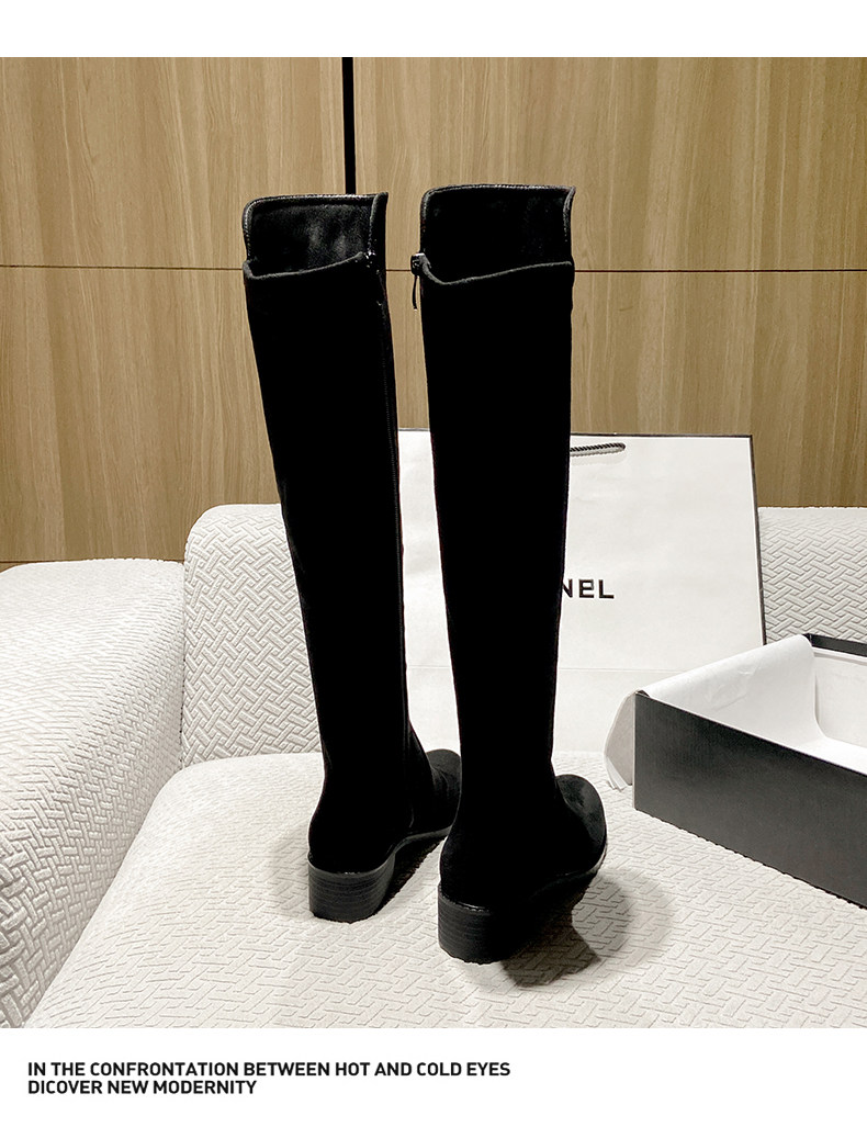 高筒過膝長靴女2025年秋冬新款百搭絨面粗跟彈力騎士瘦瘦長筒靴子