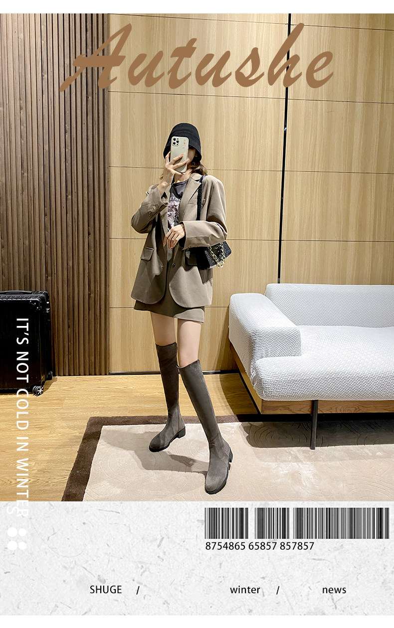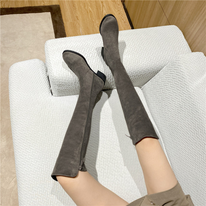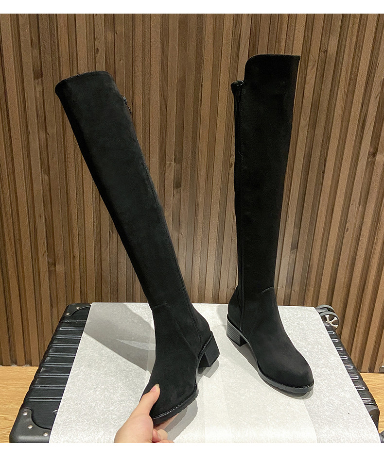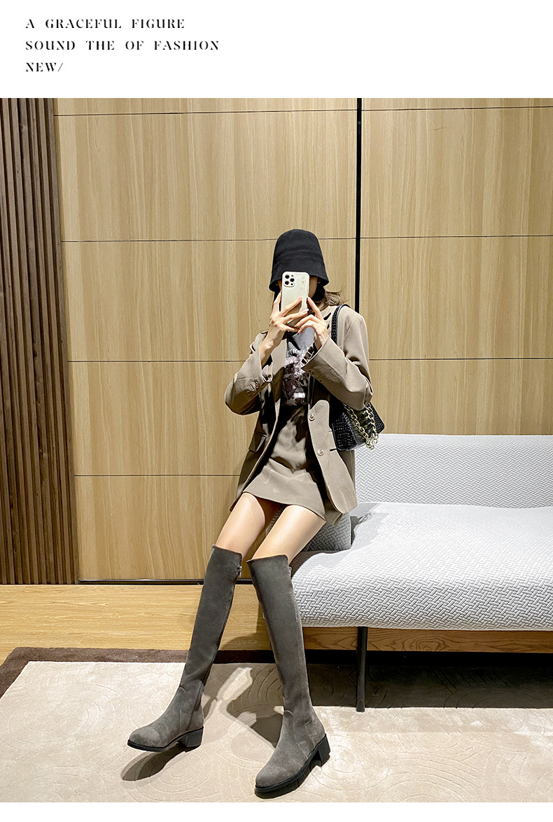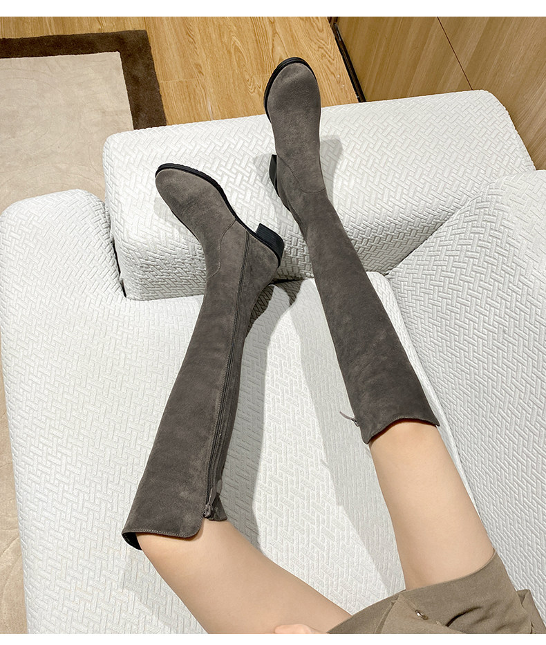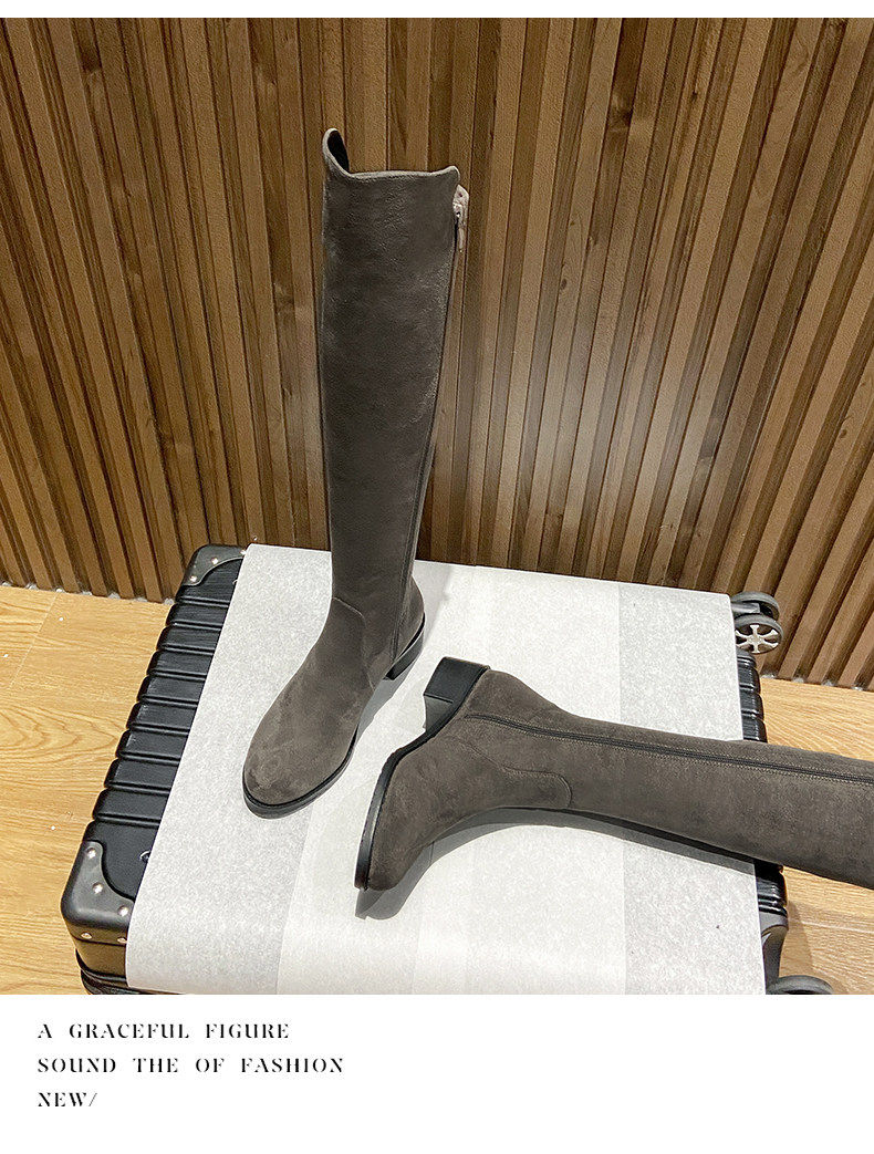 高筒過膝長靴女2025年秋冬新款百搭絨面粗跟彈力騎士瘦瘦長筒靴子