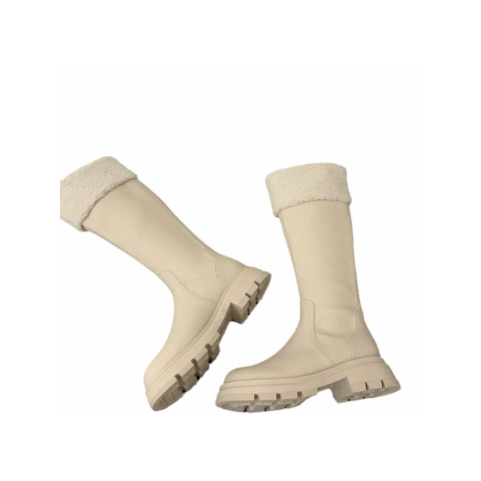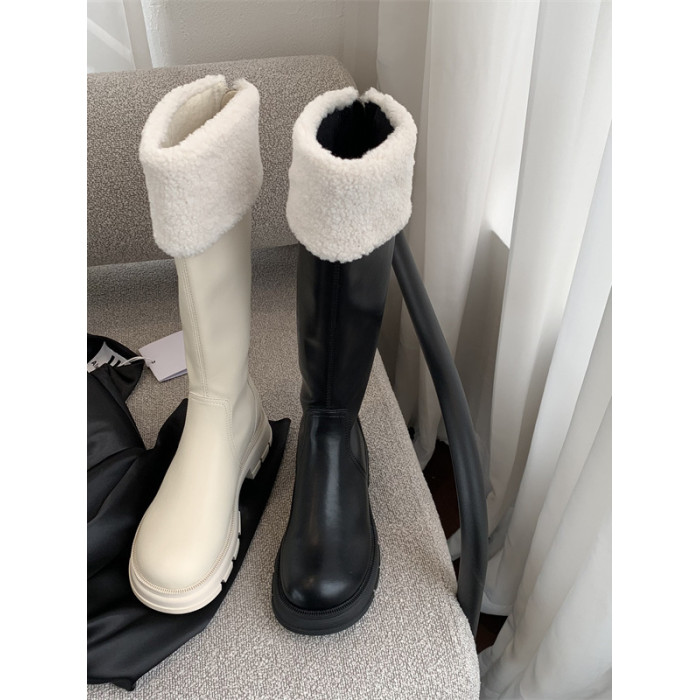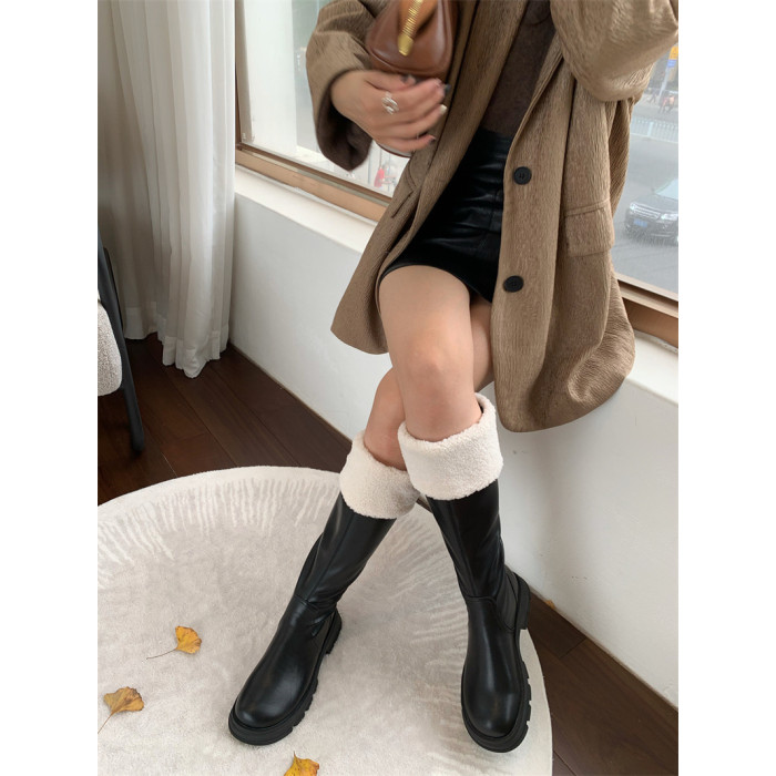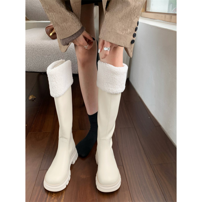 羊羔毛長筒靴女鞋2025年新款秋冬季加絨毛毛冬鞋奶白色長靴不過膝