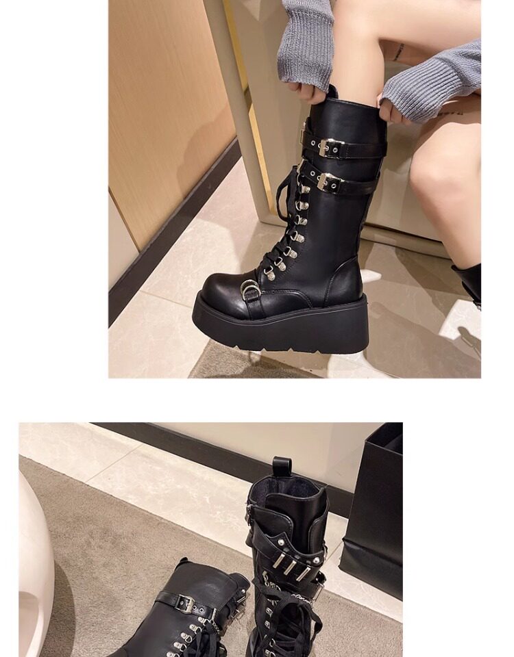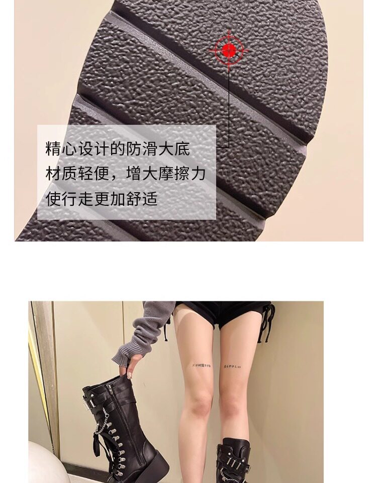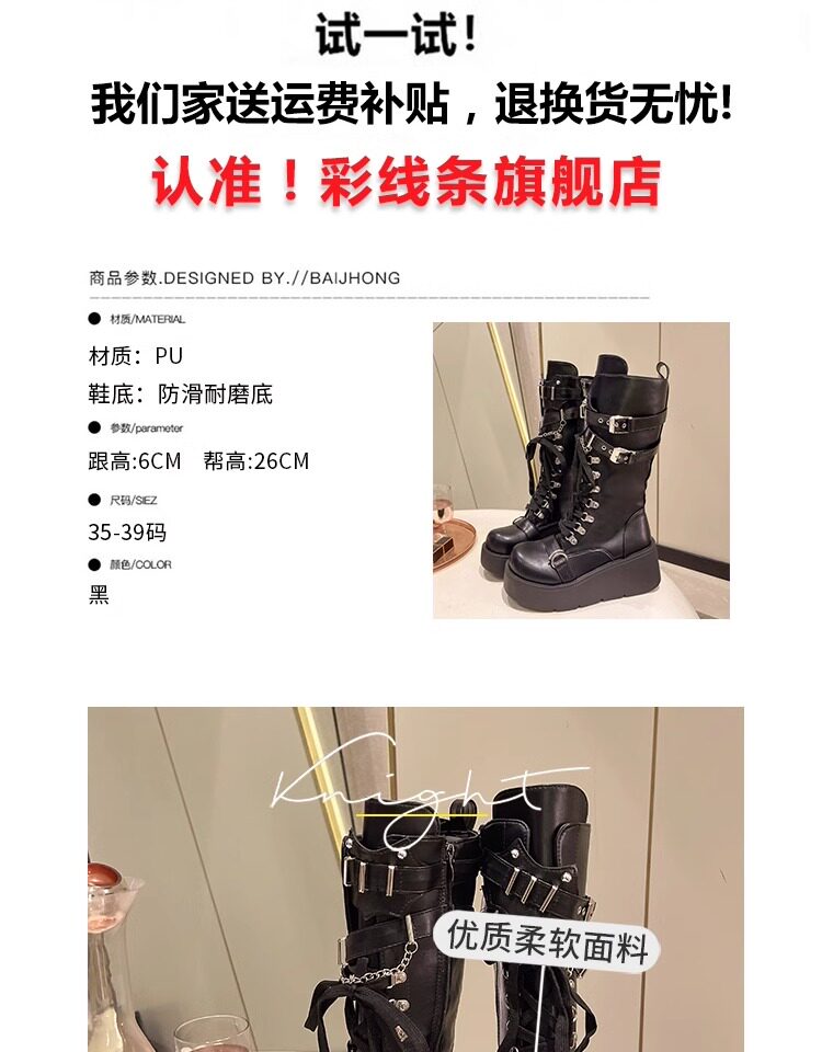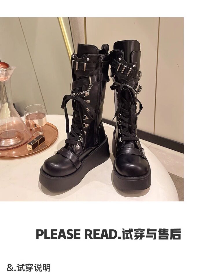亞文化甜酷辣妹金屬龐克風厚底機車長靴女2026新款坡跟高筒騎士靴