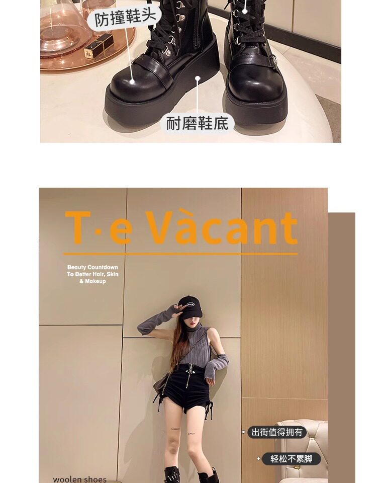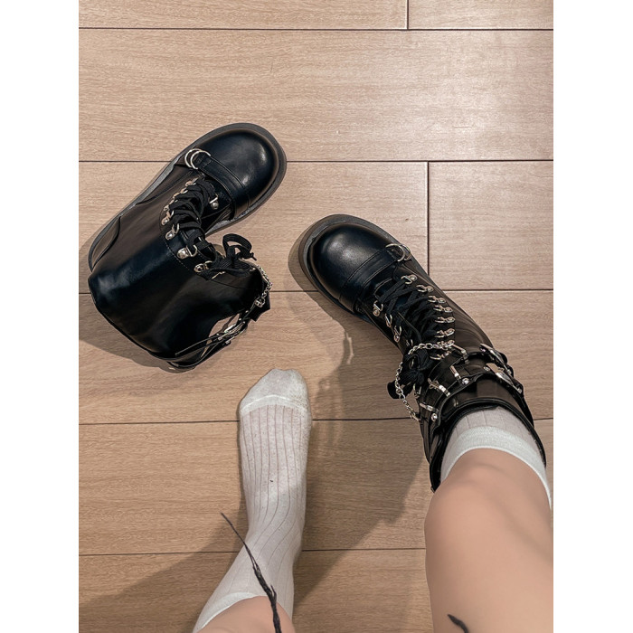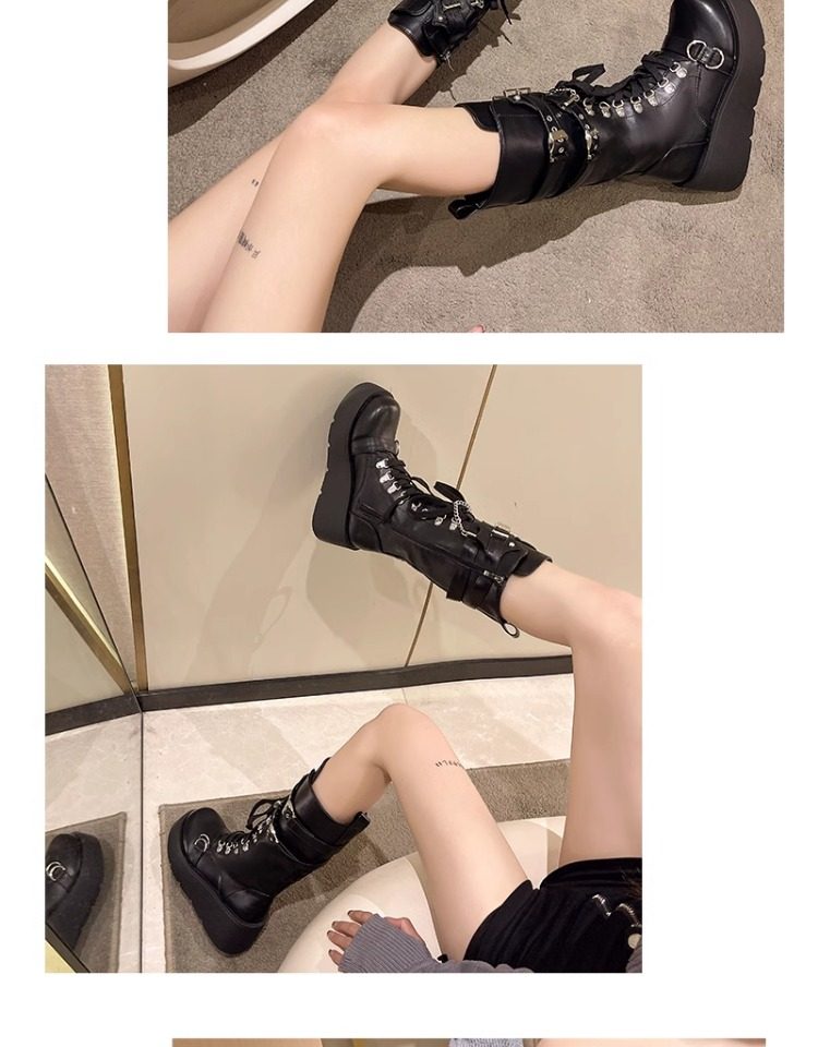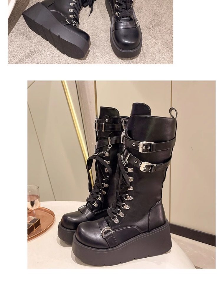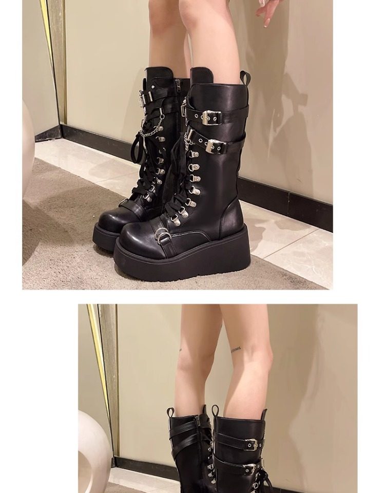 亞文化甜酷辣妹金屬龐克風厚底機車長靴女2026新款坡跟高筒騎士靴
