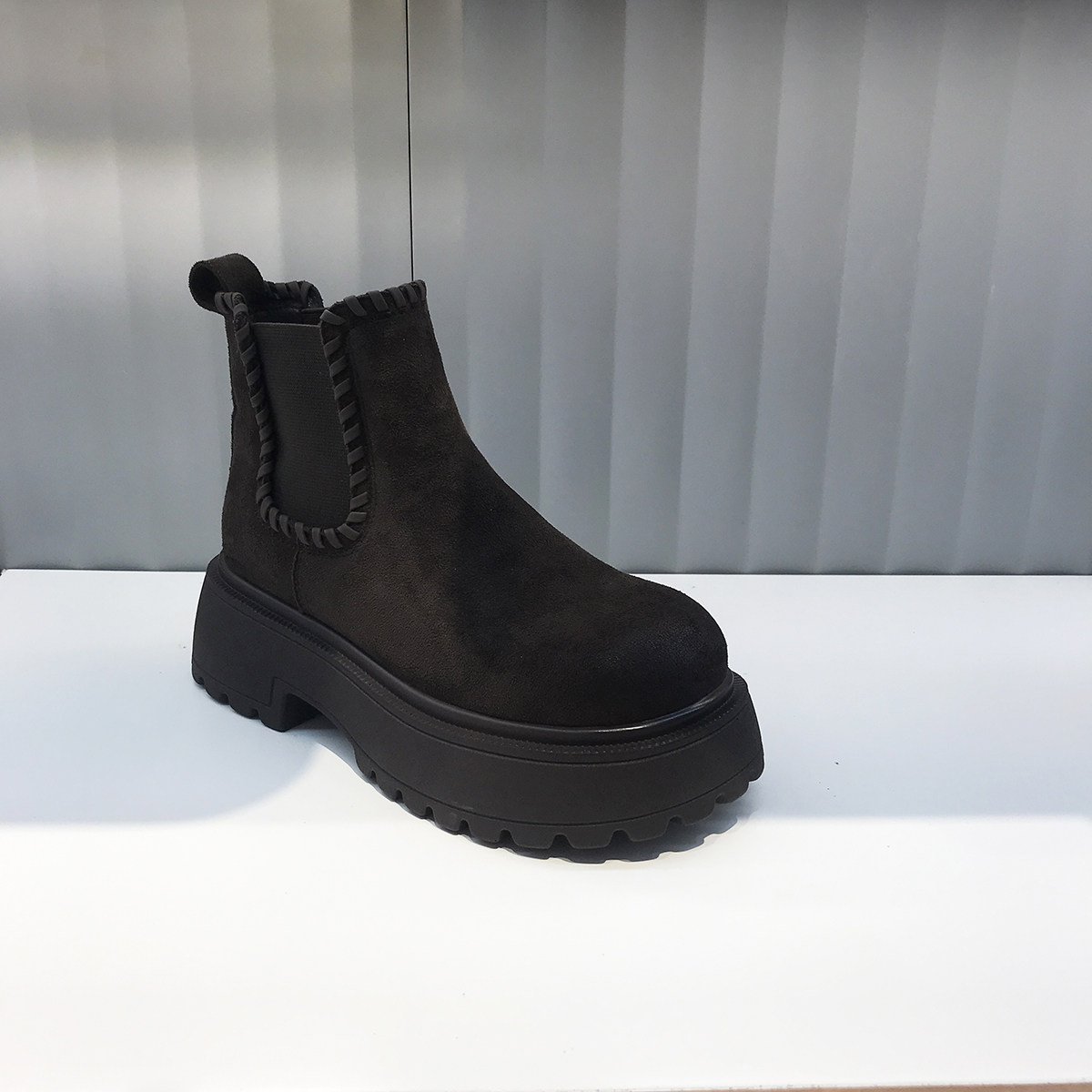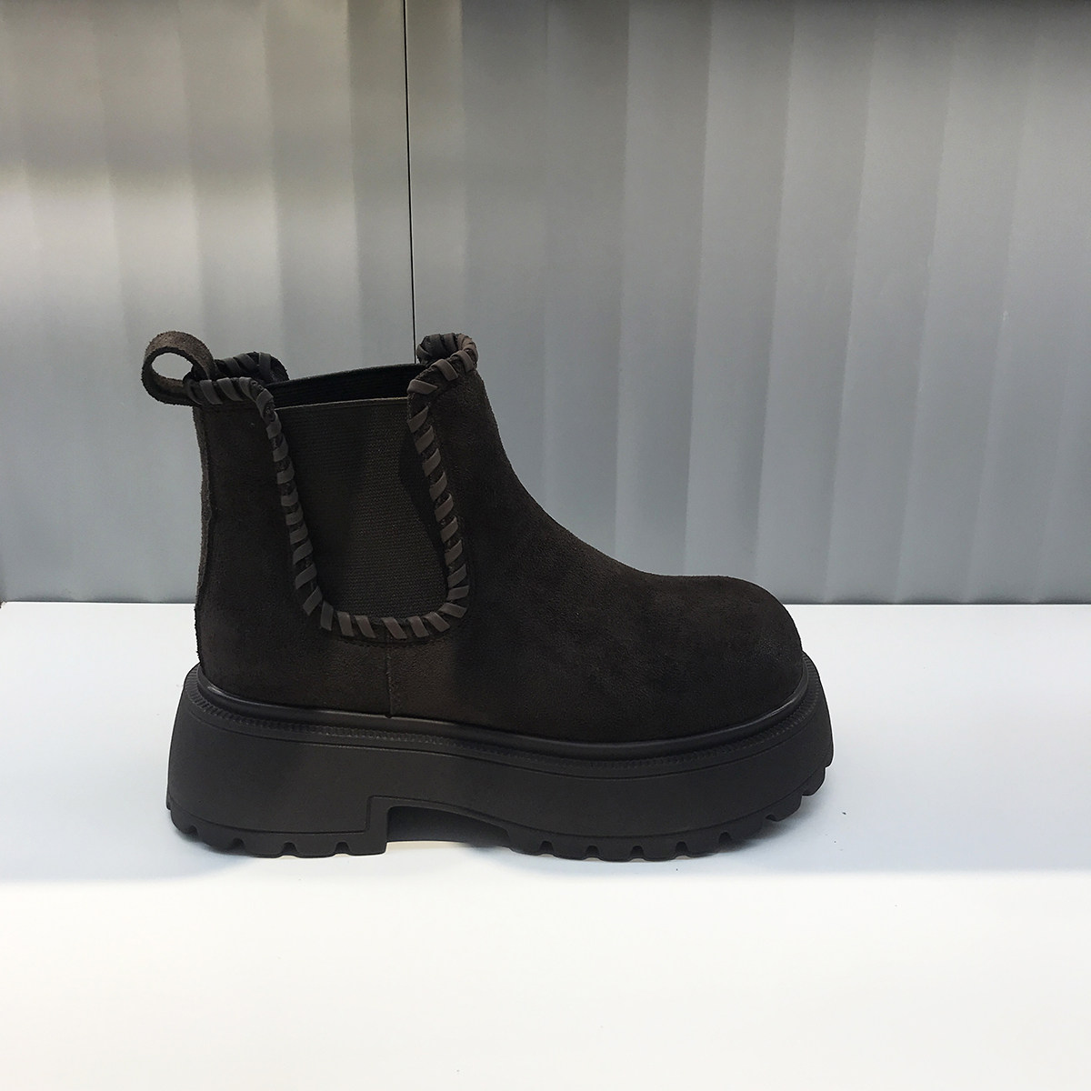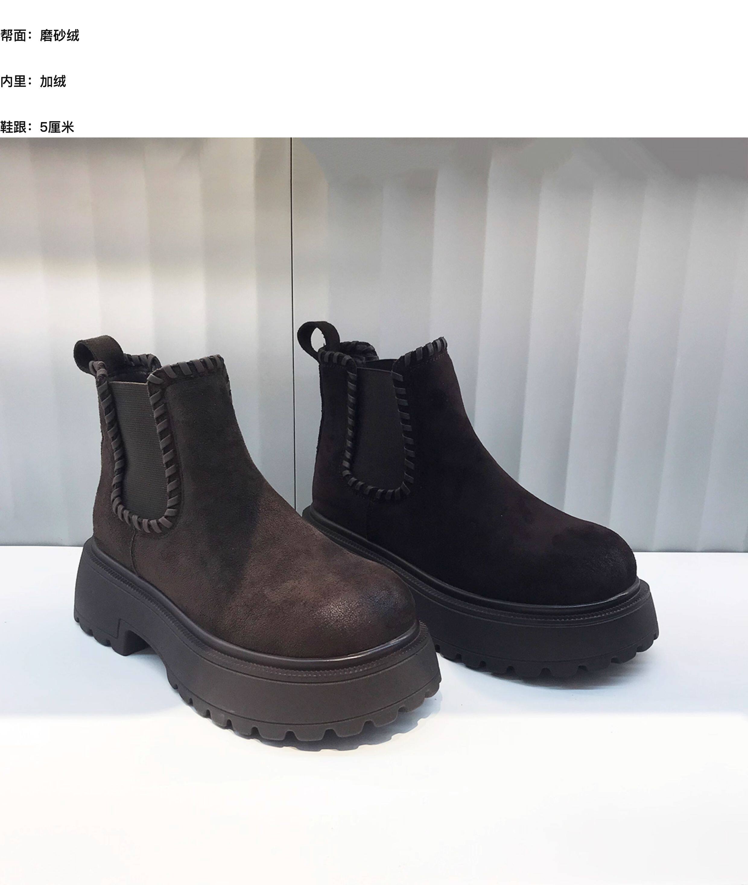 馬丁靴女2025冬季新款磨砂皮厚底菸筒靴女加絨棕色勃肯切爾西短靴