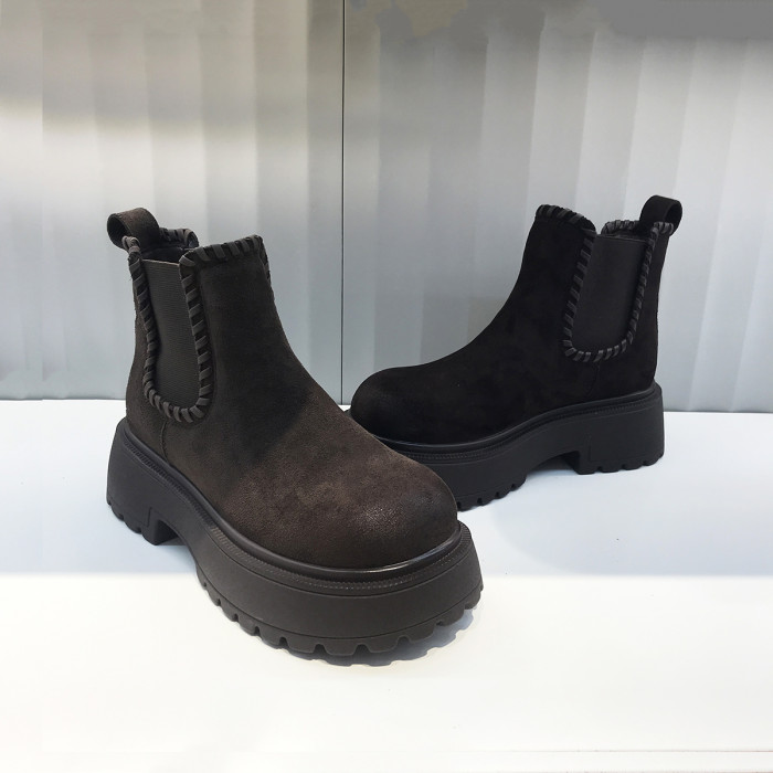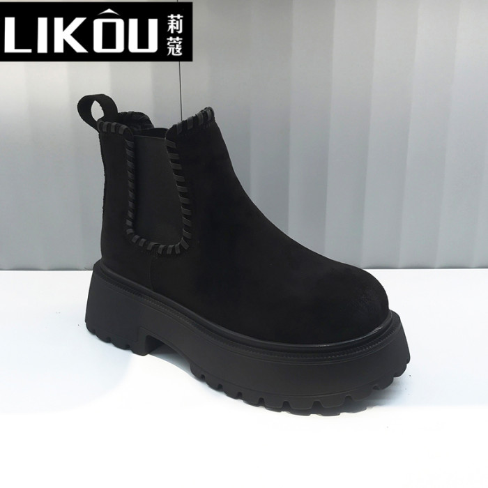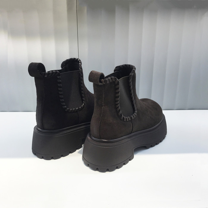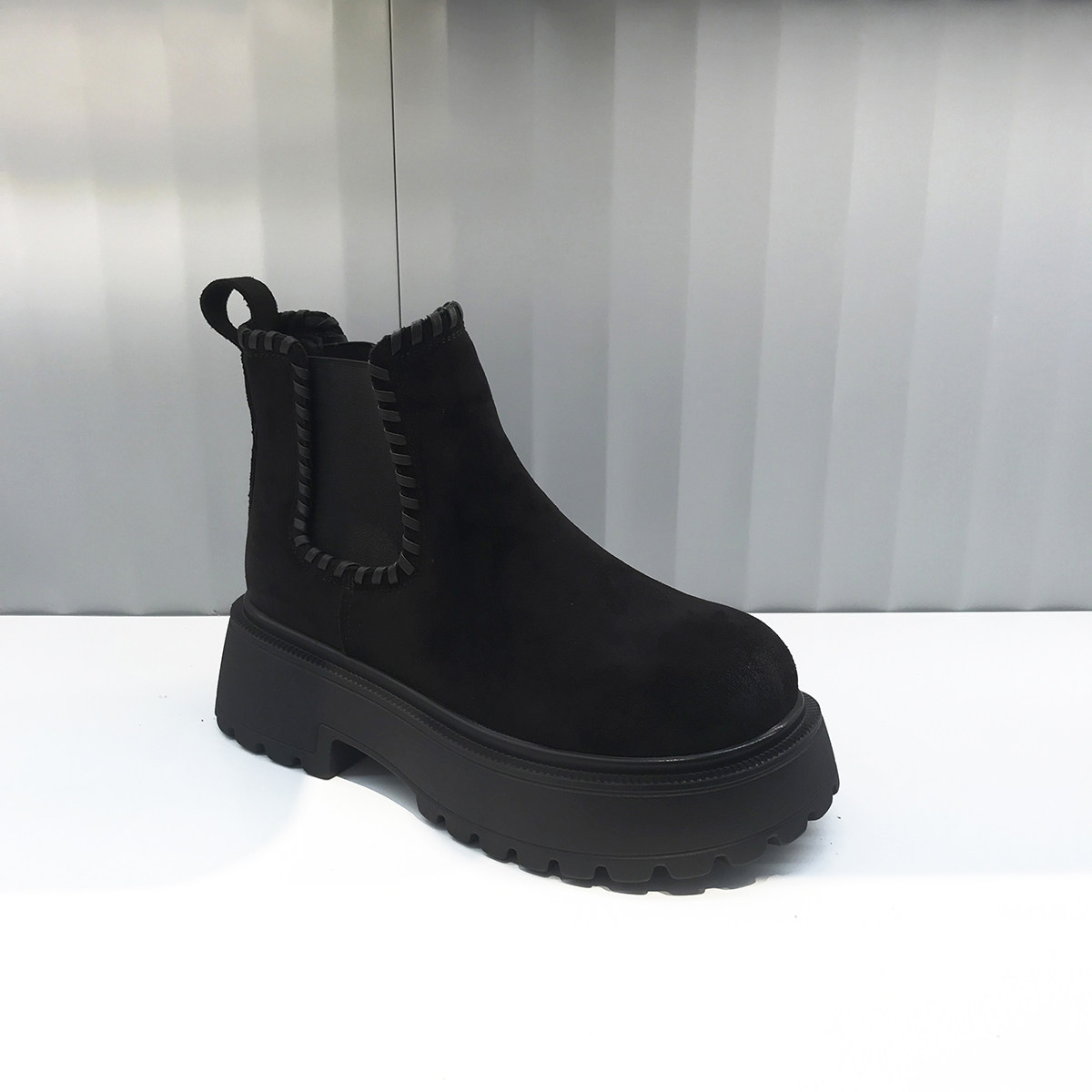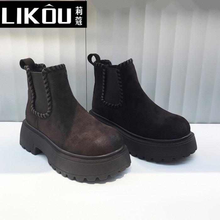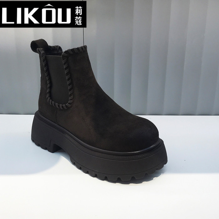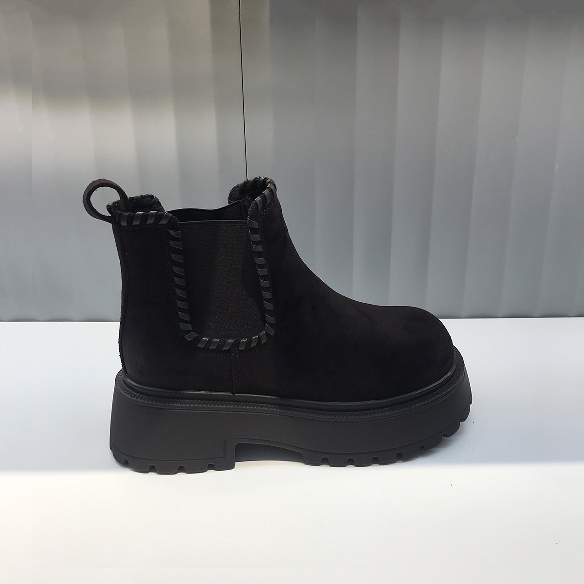 馬丁靴女2025冬季新款磨砂皮厚底菸筒靴女加絨棕色勃肯切爾西短靴