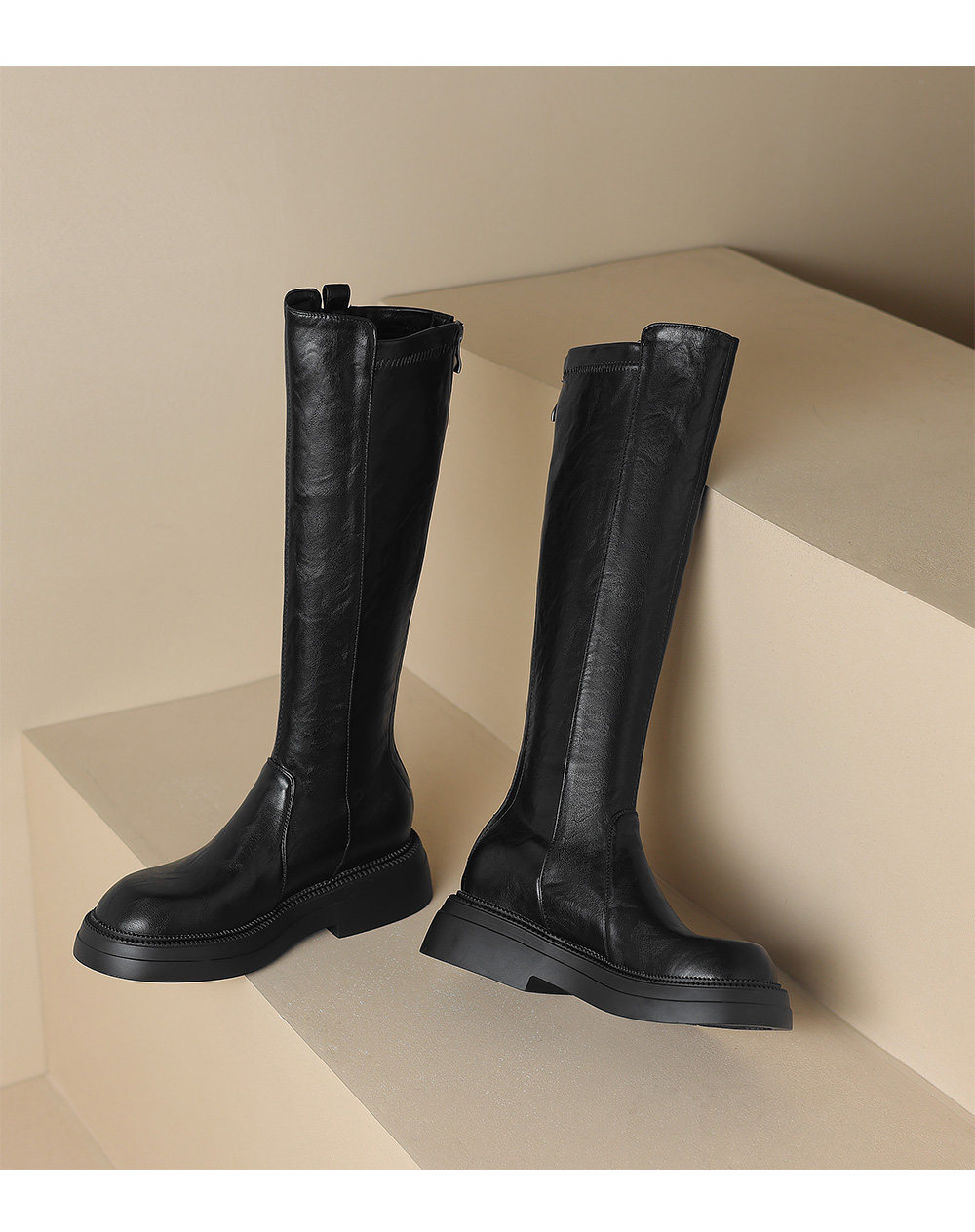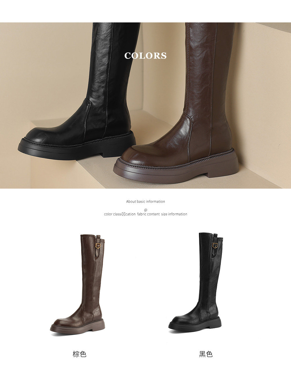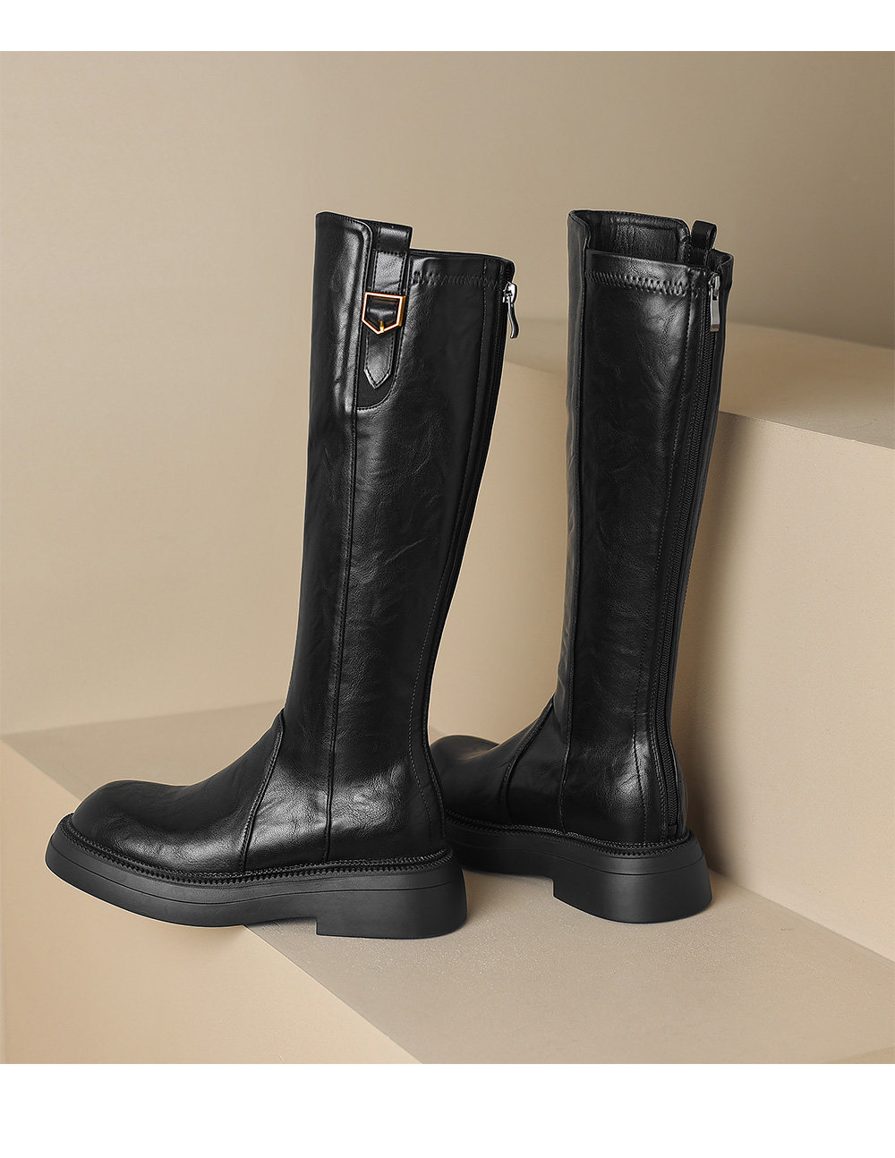 厚底長筒靴女2025秋冬新款加絨不過膝長靴修飾腿型彈力騎士靴大碼