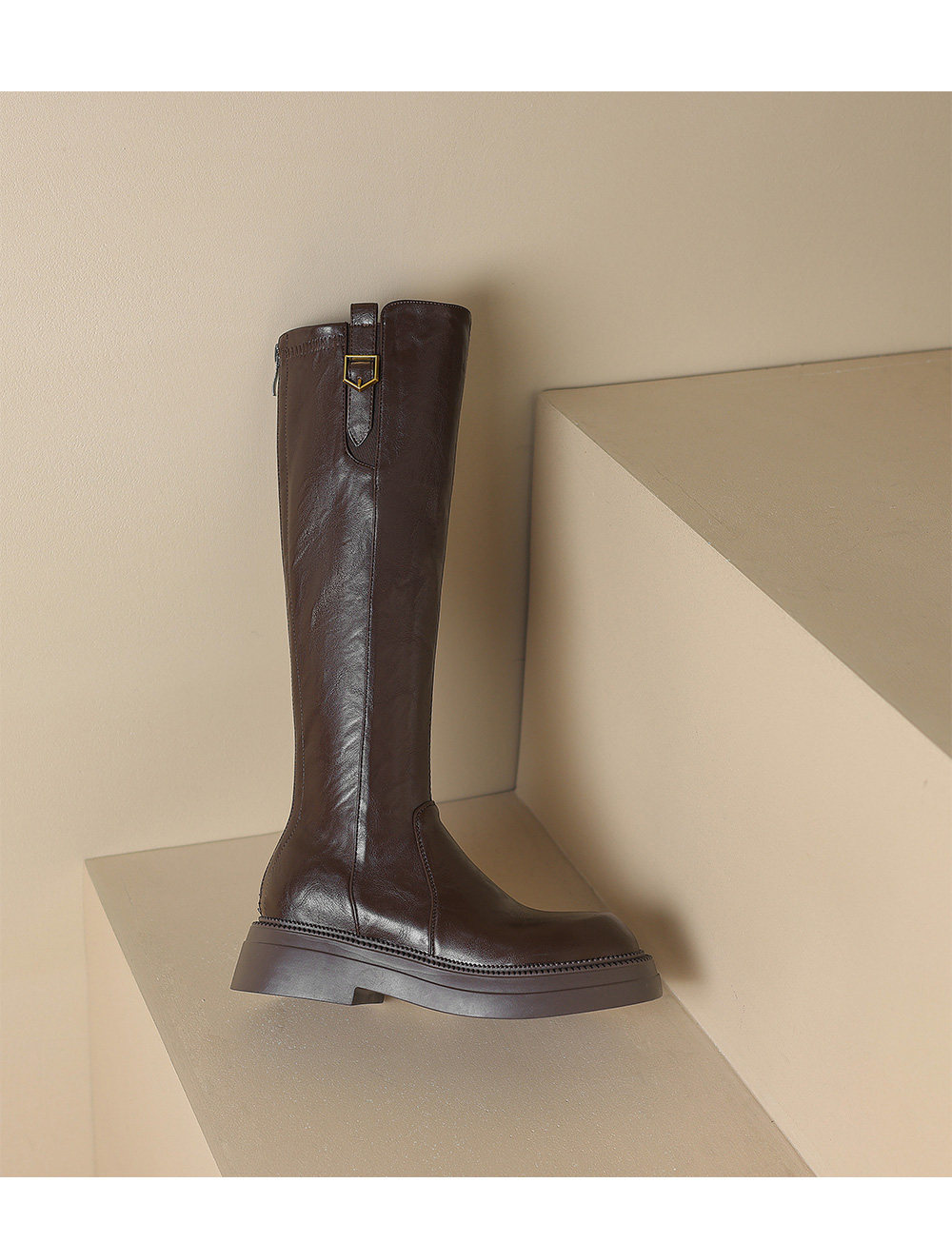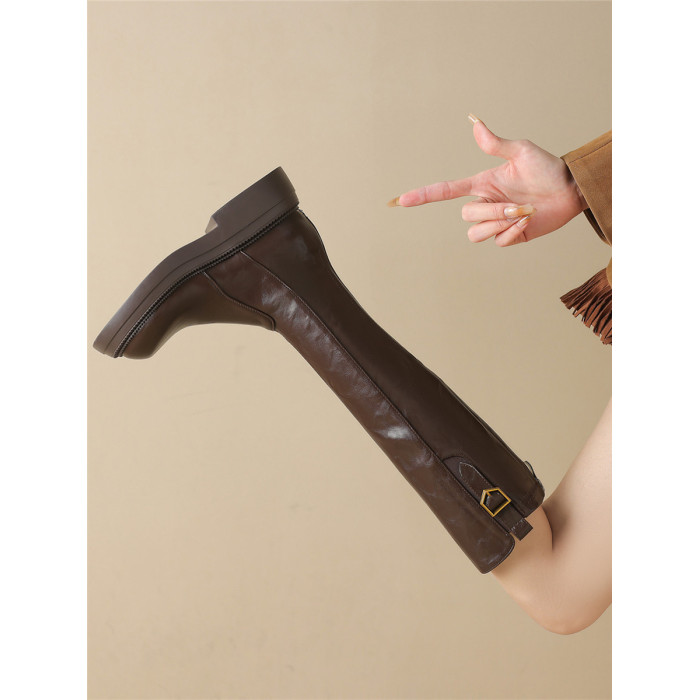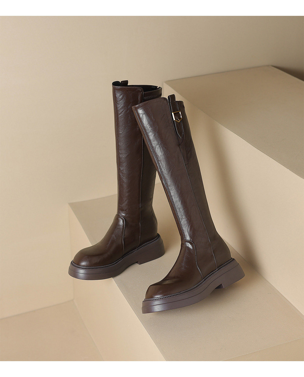 厚底長筒靴女2025秋冬新款加絨不過膝長靴修飾腿型彈力騎士靴大碼